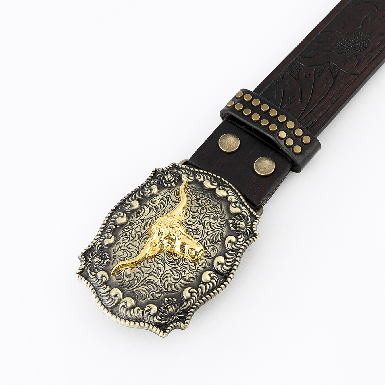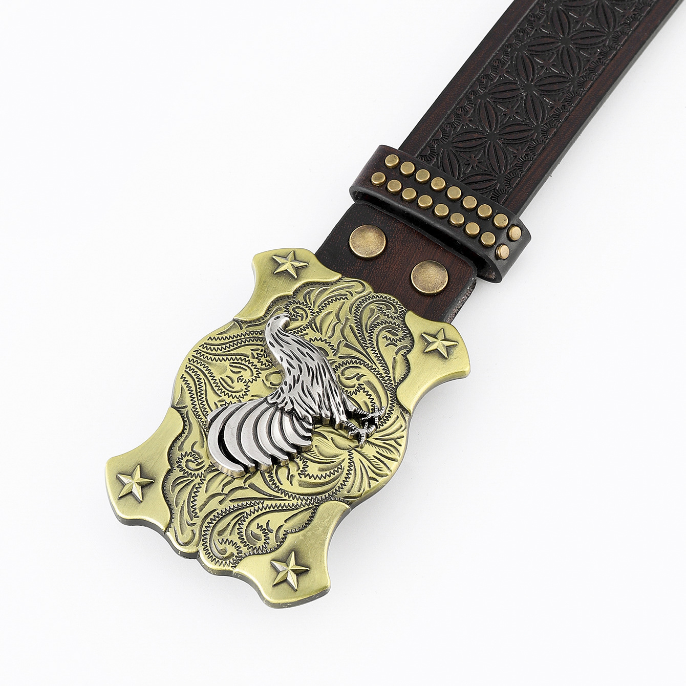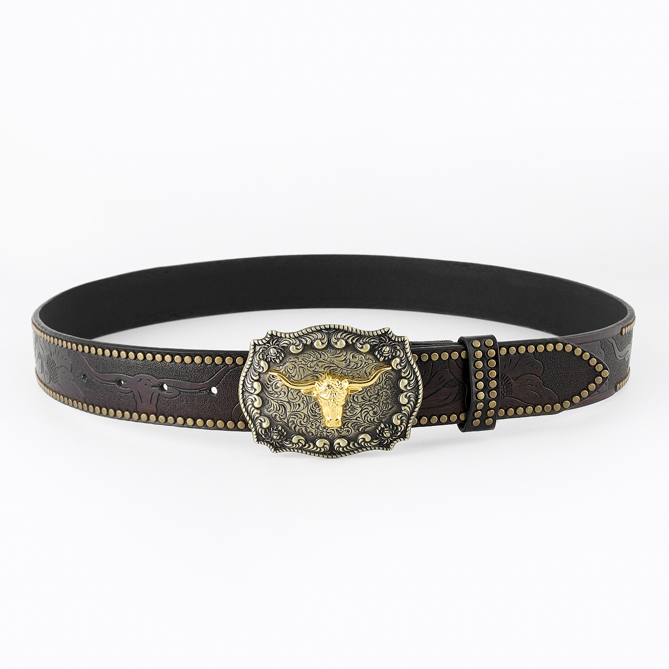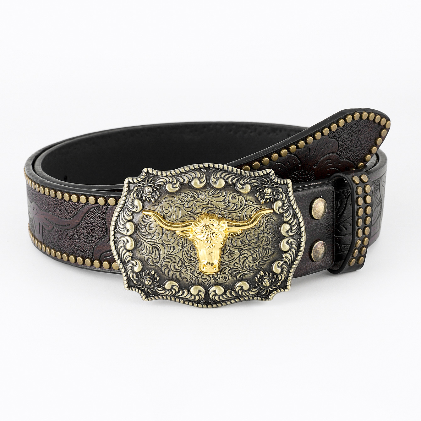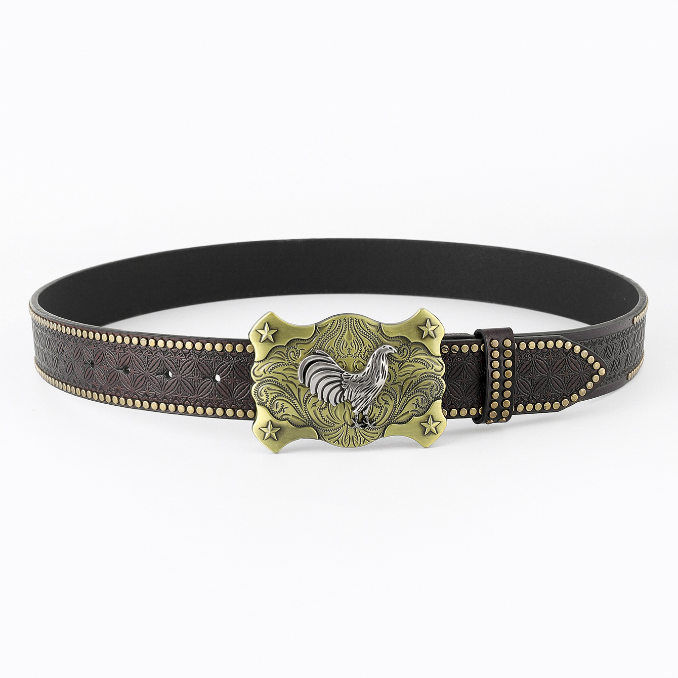 hot sale in europe and america western cowboy belt carved big plate buckle trendy retro men's punk leather belt
