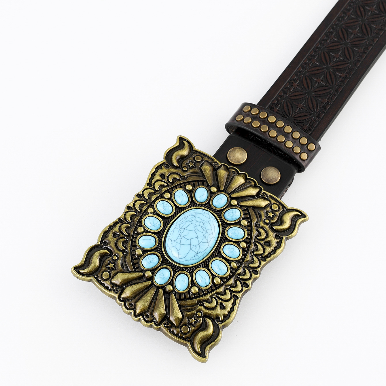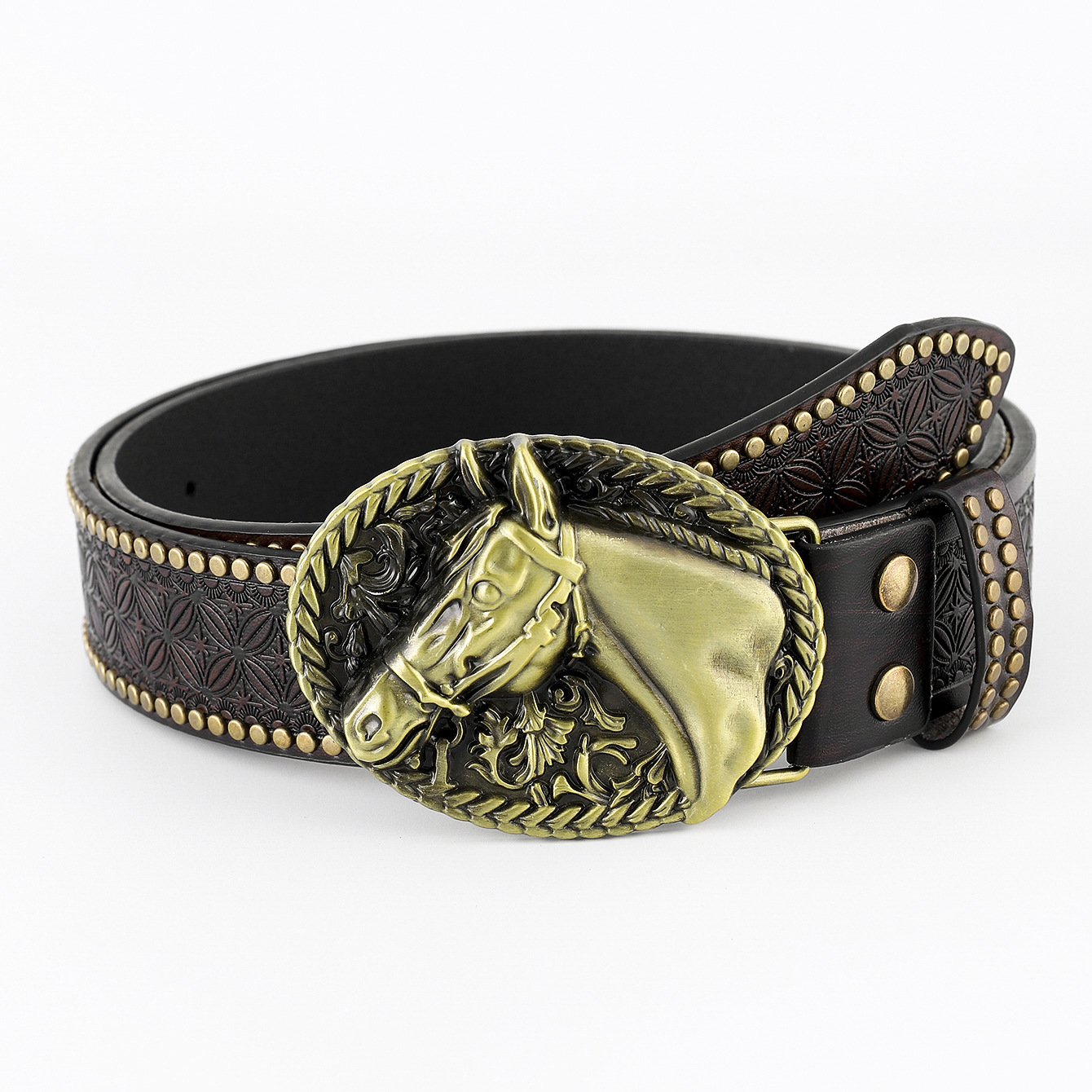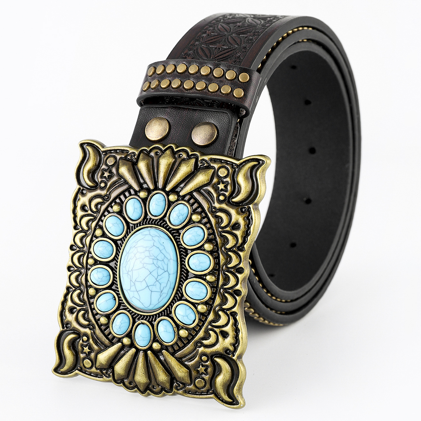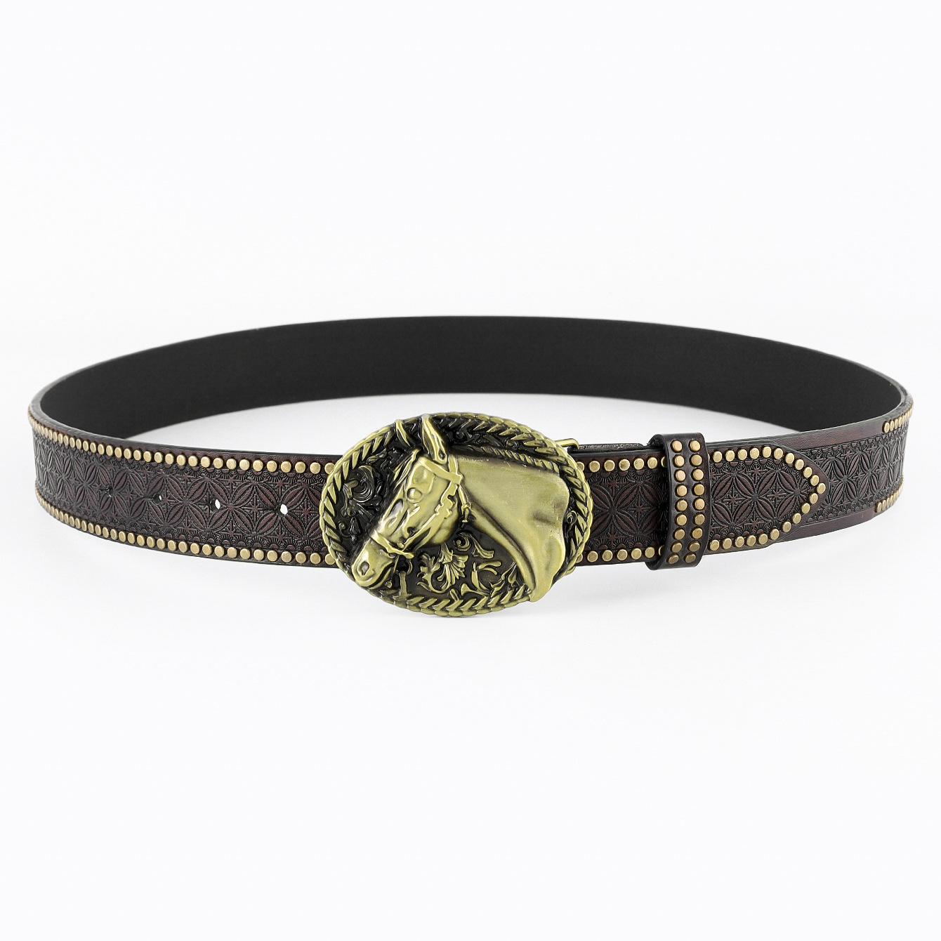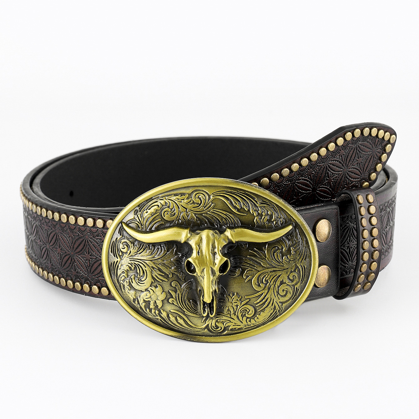 cross-border new arrival western cowboy belt carved large plate mouth trend retro retro men's punk leather belt