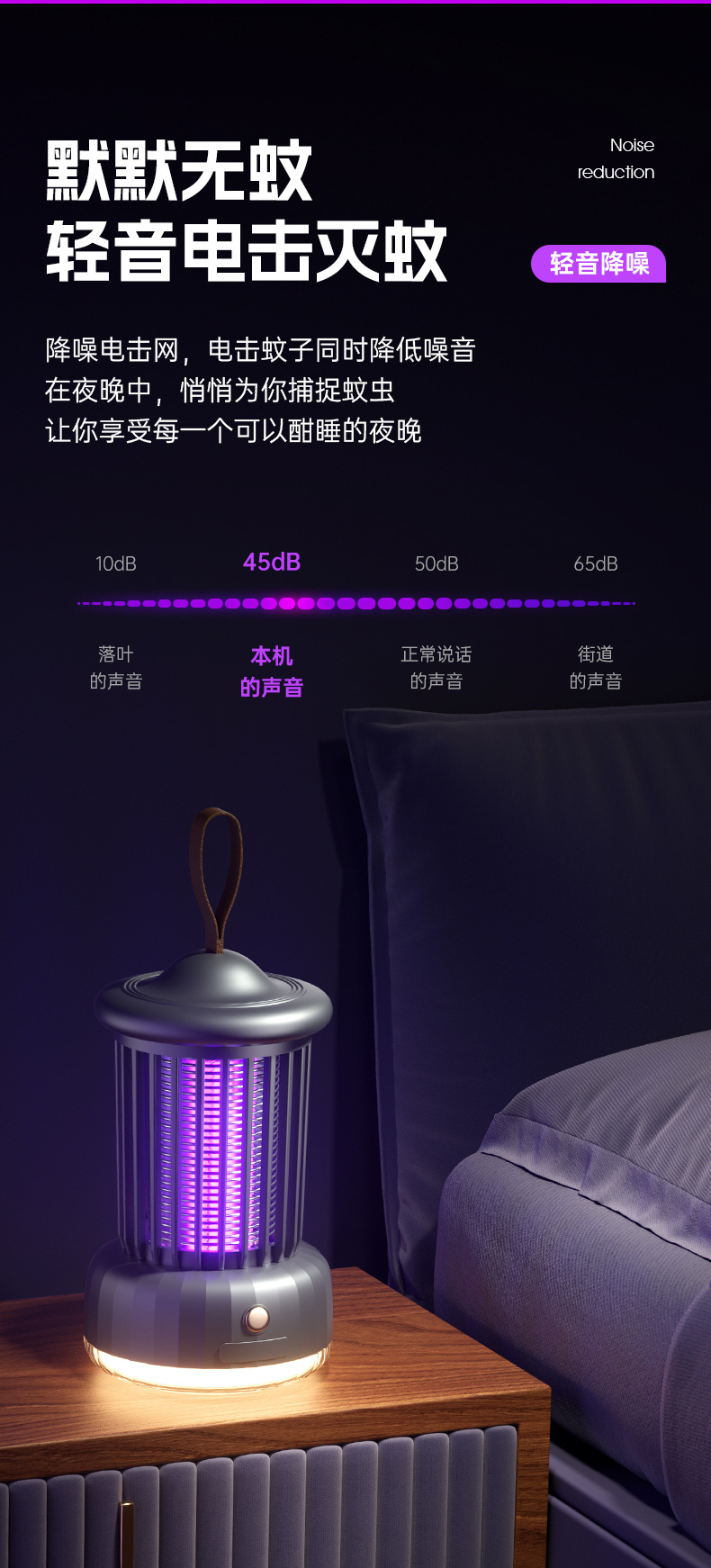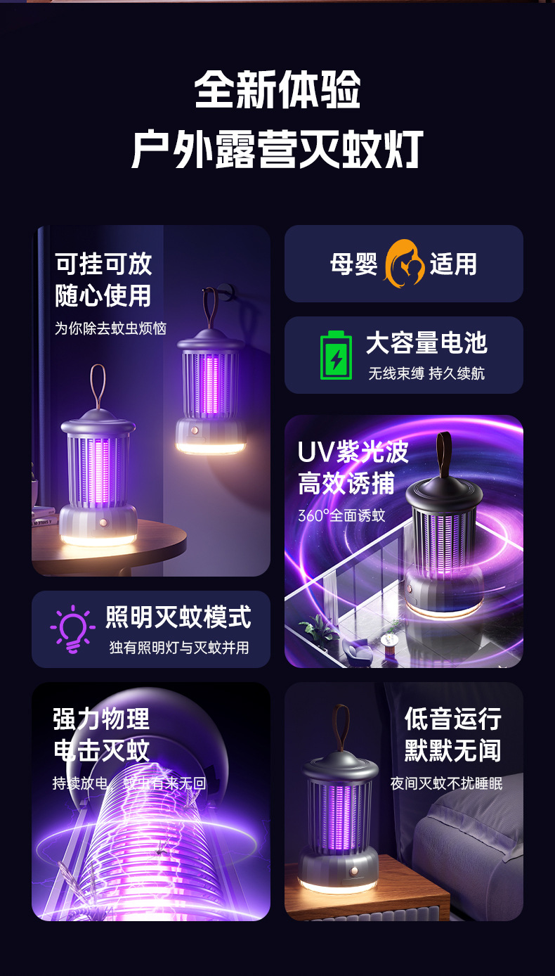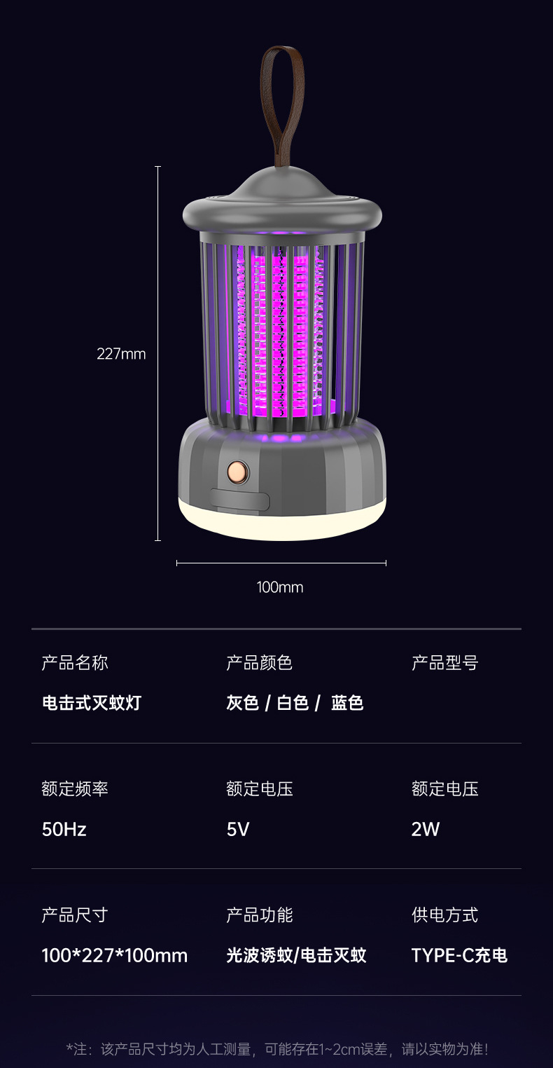 wd-02 electric shock mosquito killing lamp with small night lamp fashionable gray