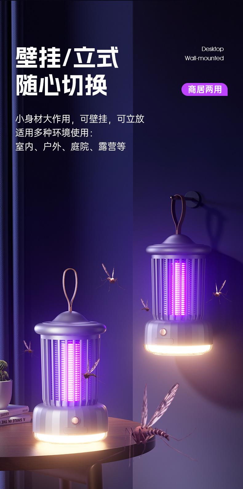 wd-02 electric mosquito killing lamp with small night lamp fashion blue