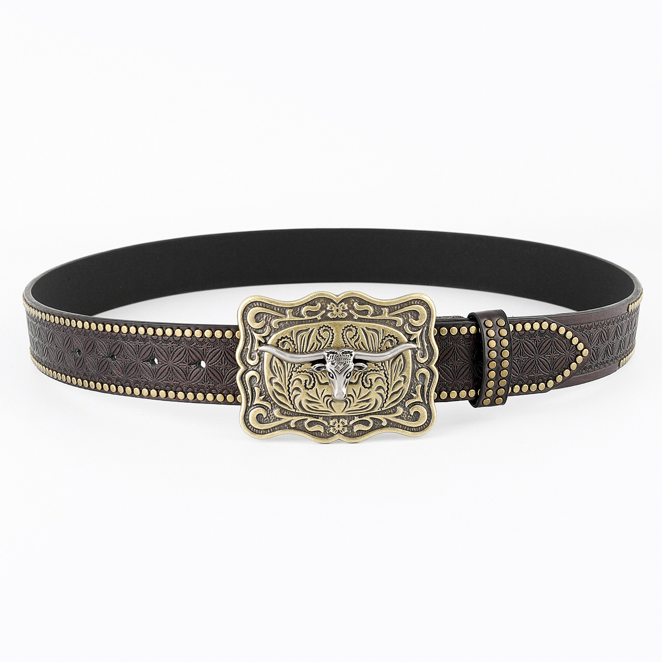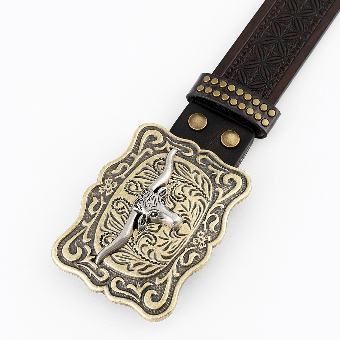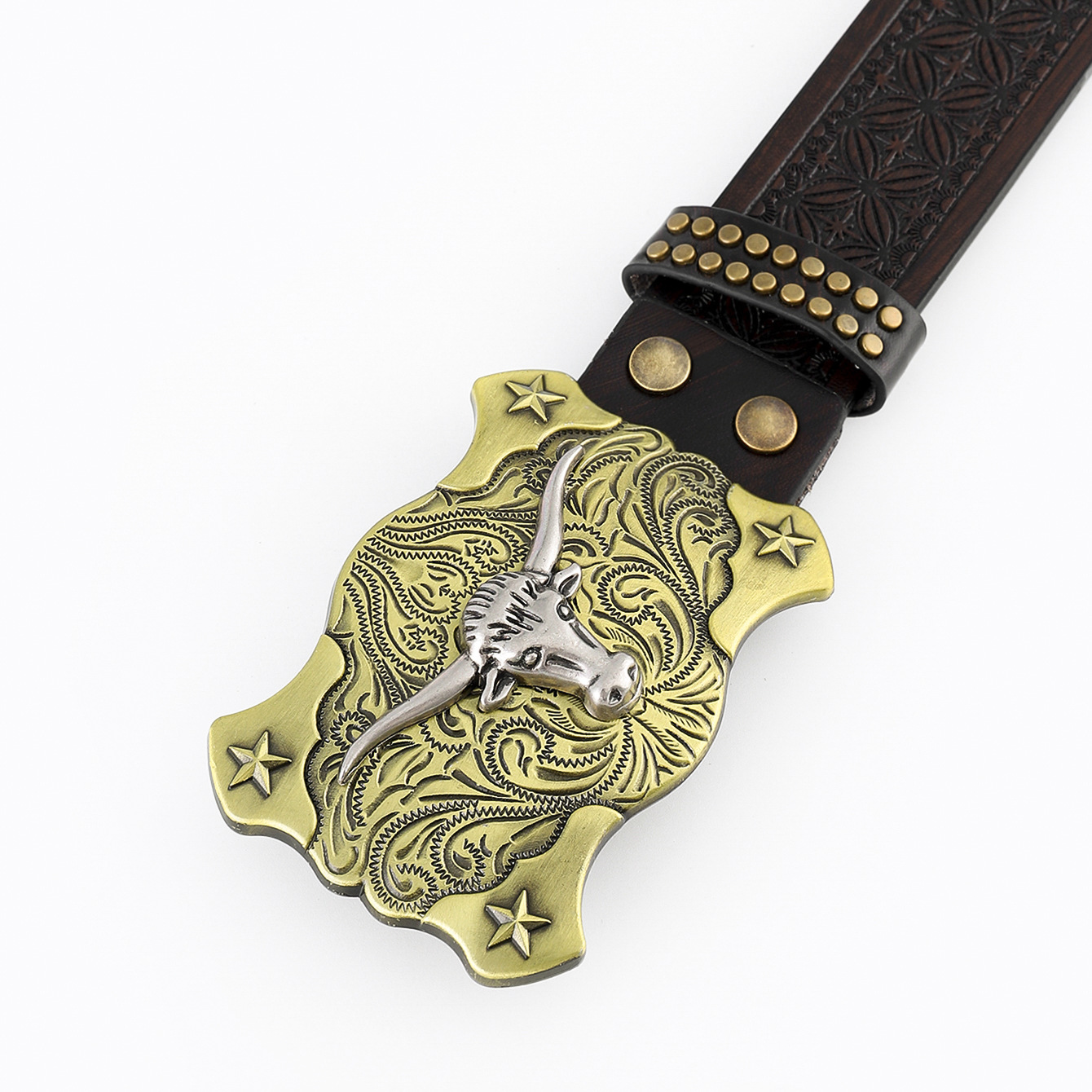 amazon western denim belt cow head large plate mouth fashion retro retro men's punk embossed leather waist