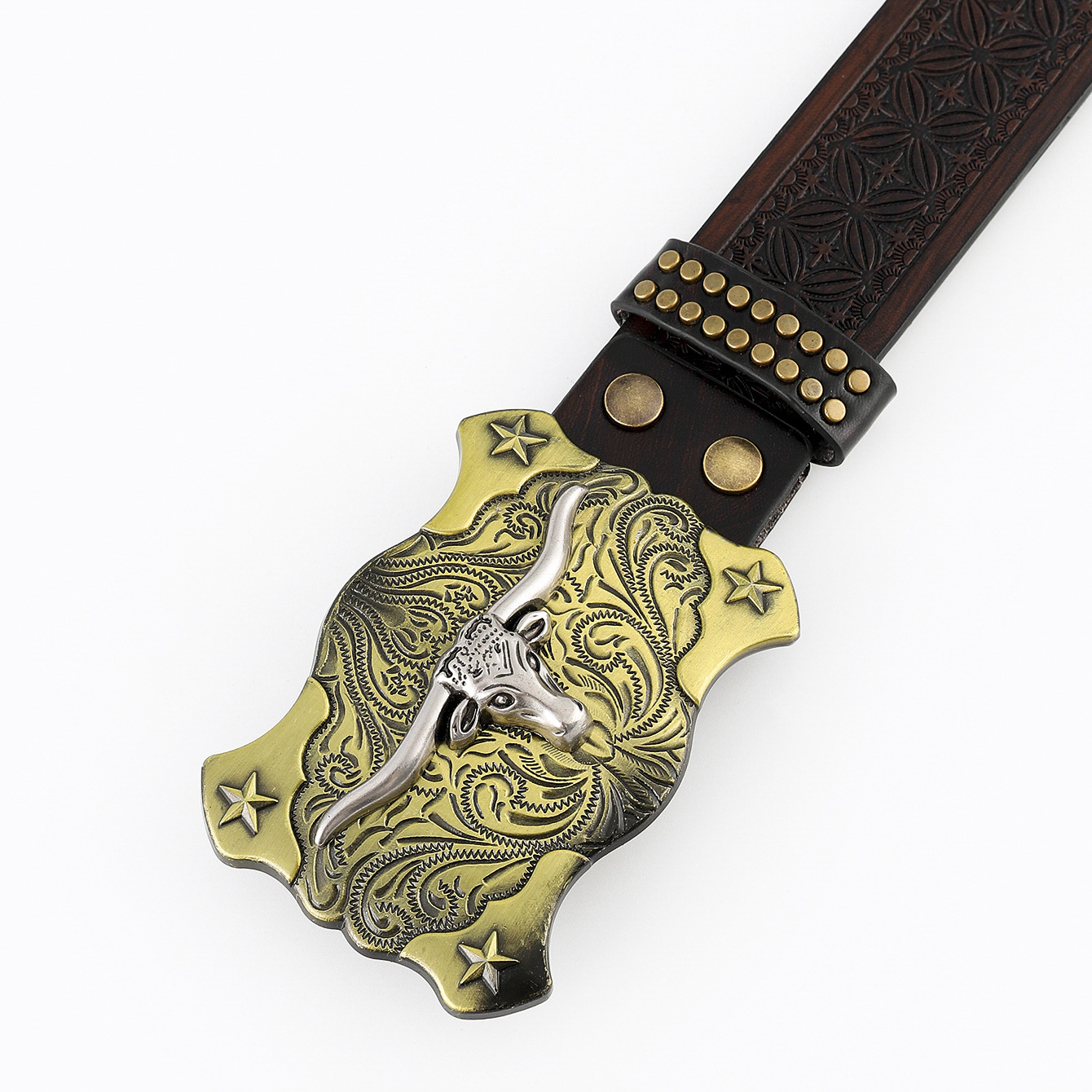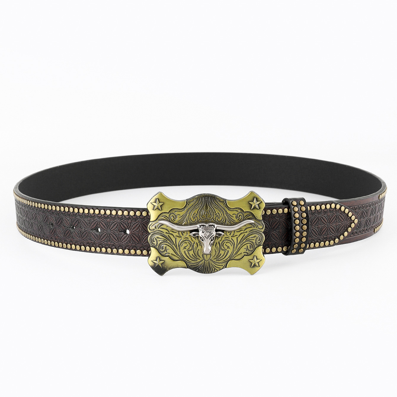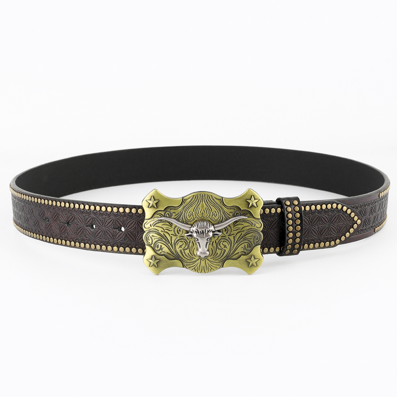amazon western denim belt cow head large plate mouth fashion retro retro men's punk embossed leather waist
