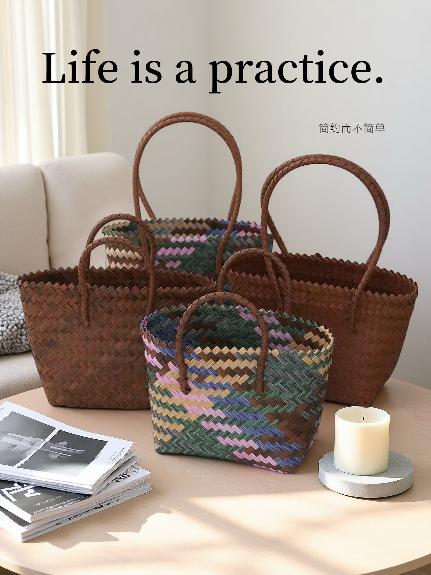 retro pp hand-woven vegetable basket large capacity versatile casual portable