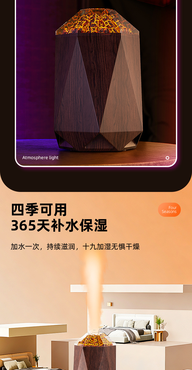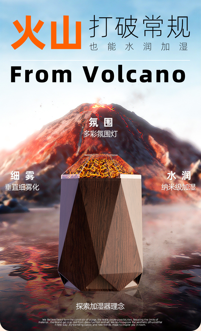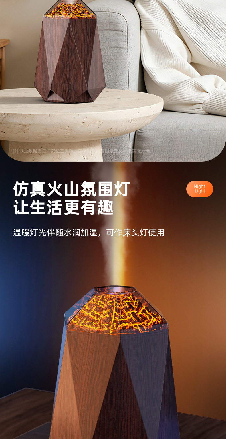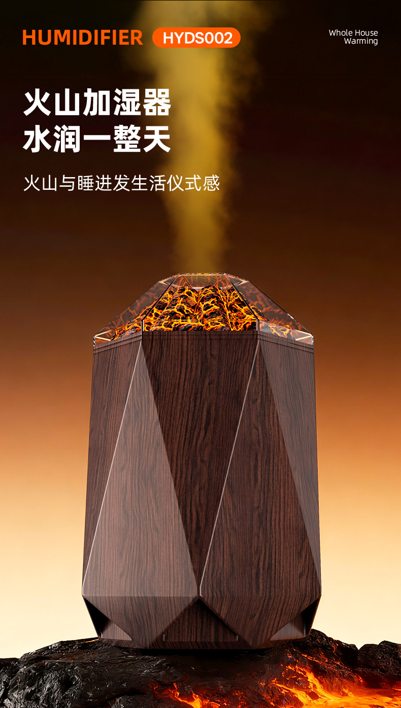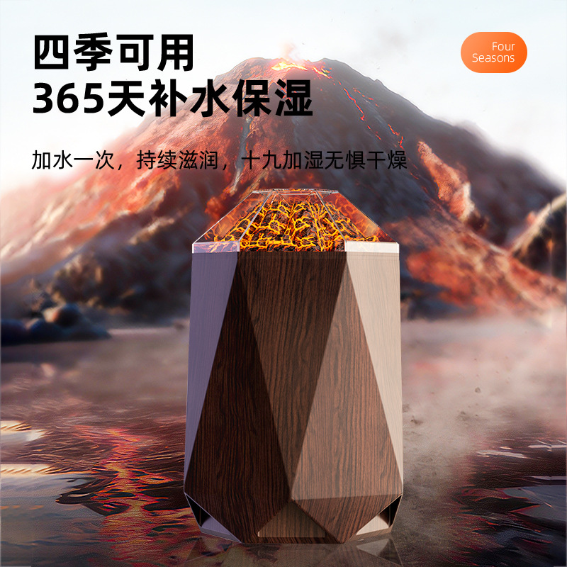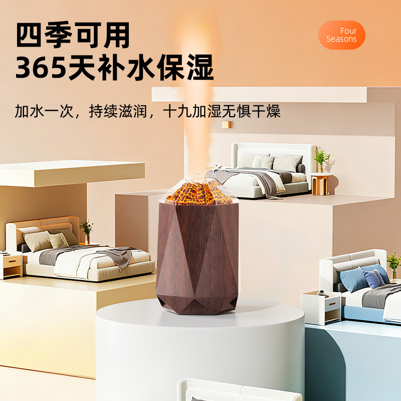 new volcano humidifier household bedroom seven-color ambience light small desktop 1l mute humidification simulation flame