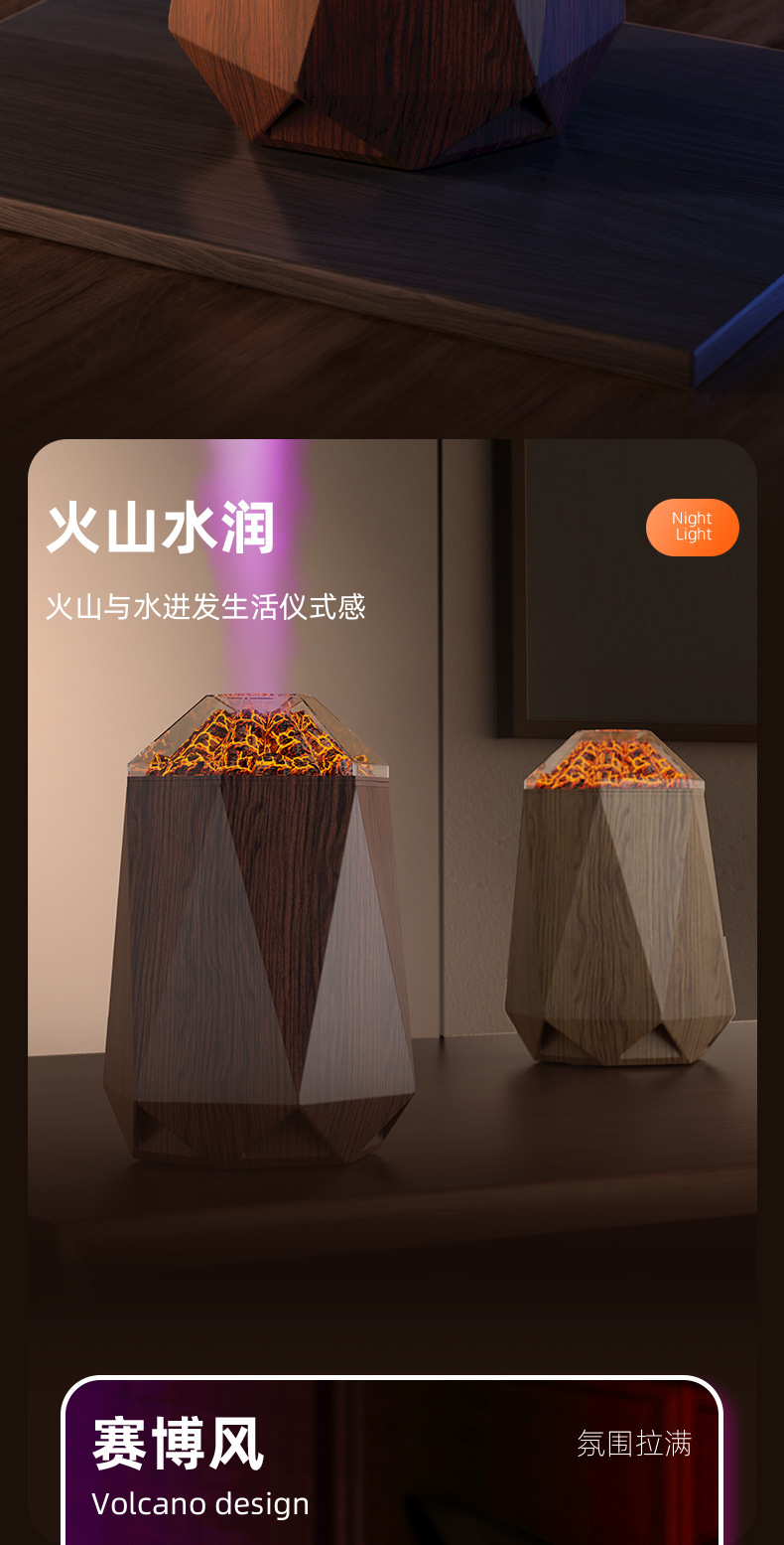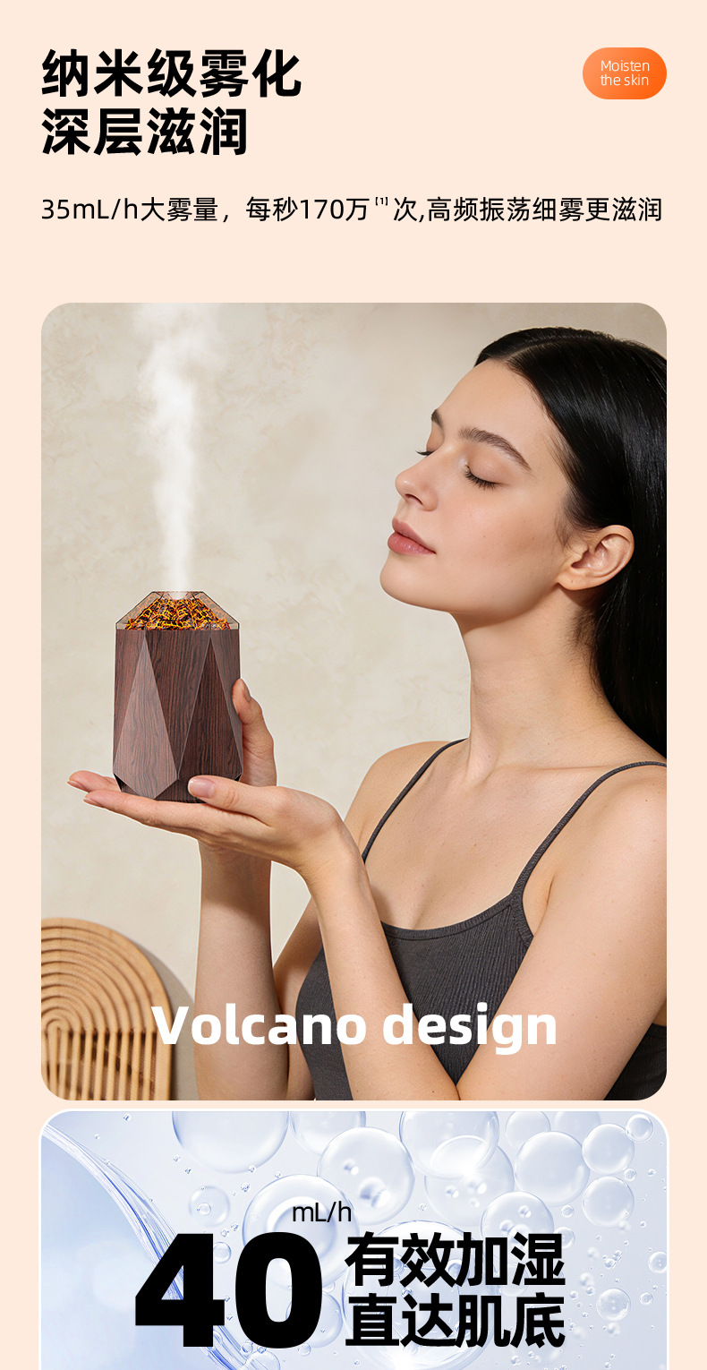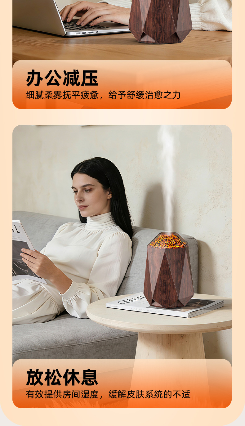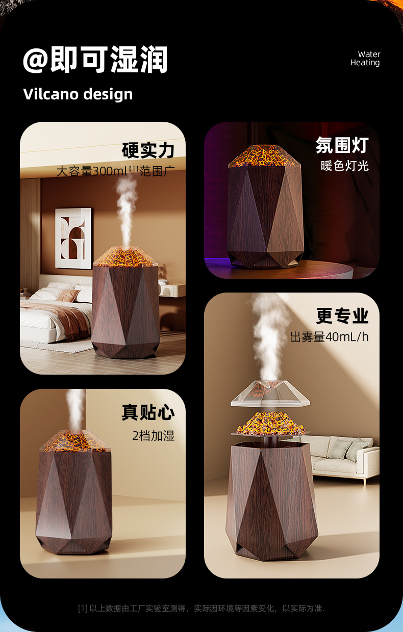 new volcano humidifier household bedroom seven-color ambience light small desktop 1l mute humidification simulation flame