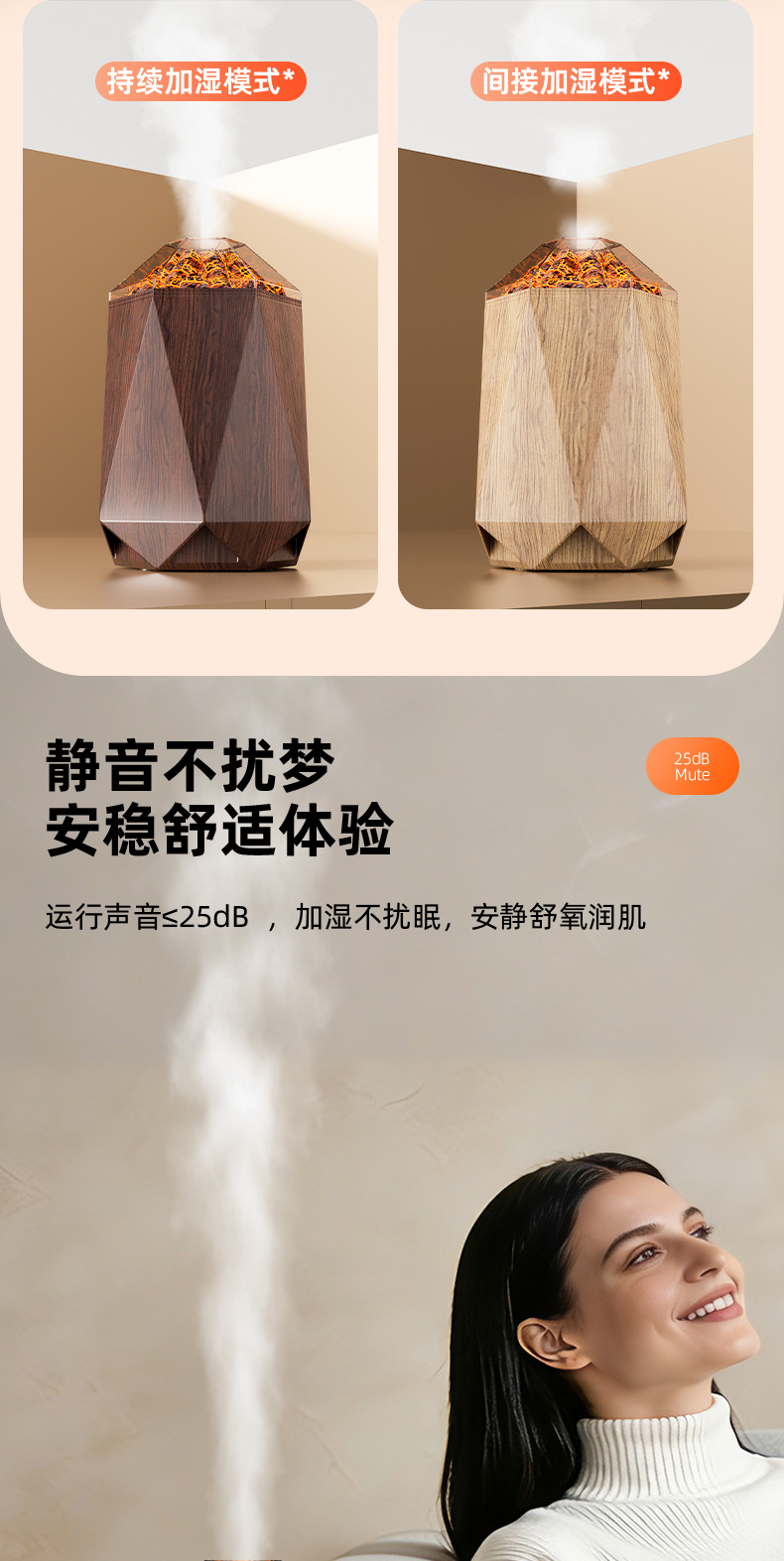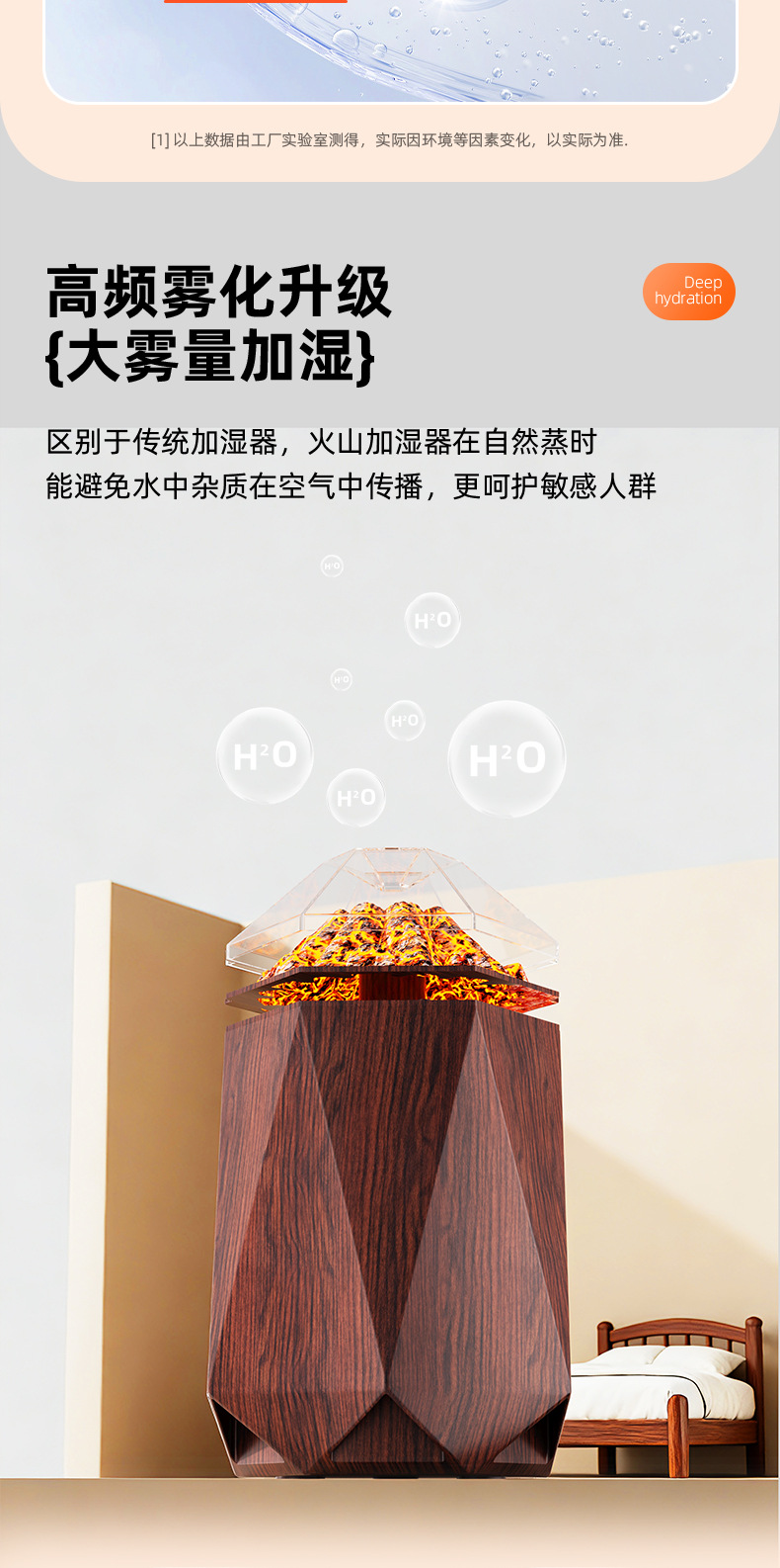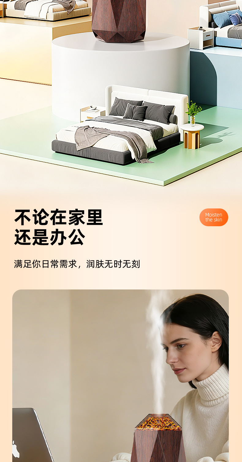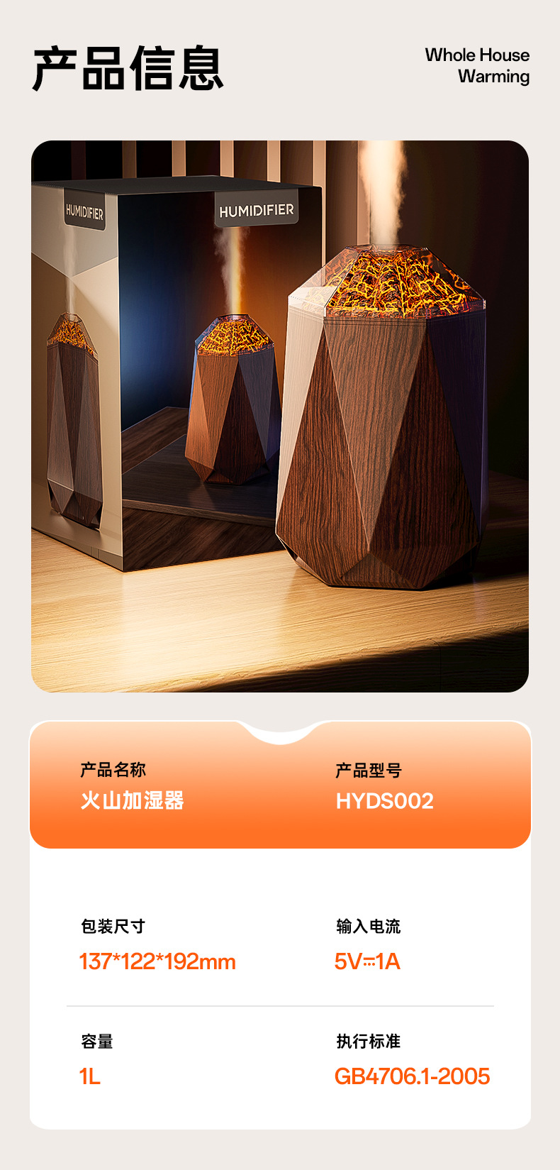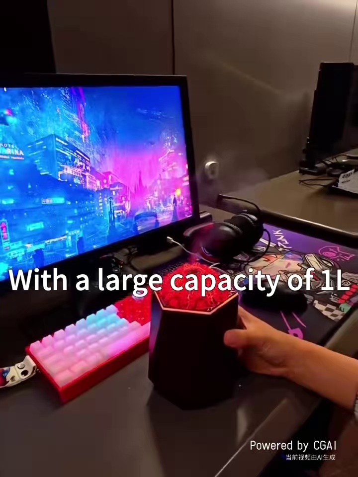new volcano humidifier household bedroom seven-color ambience light small desktop 1l mute humidification simulation flame