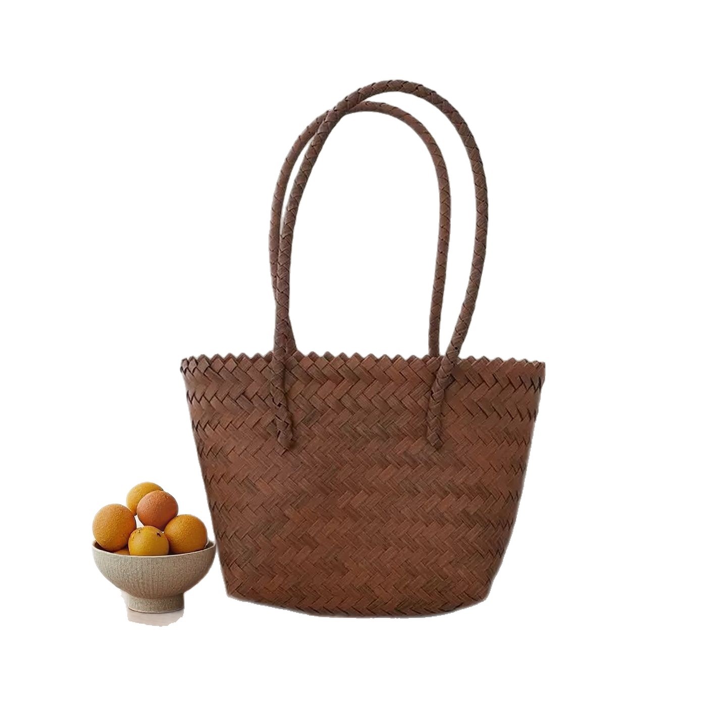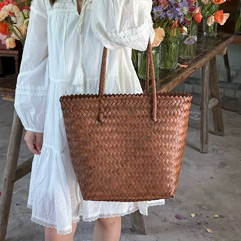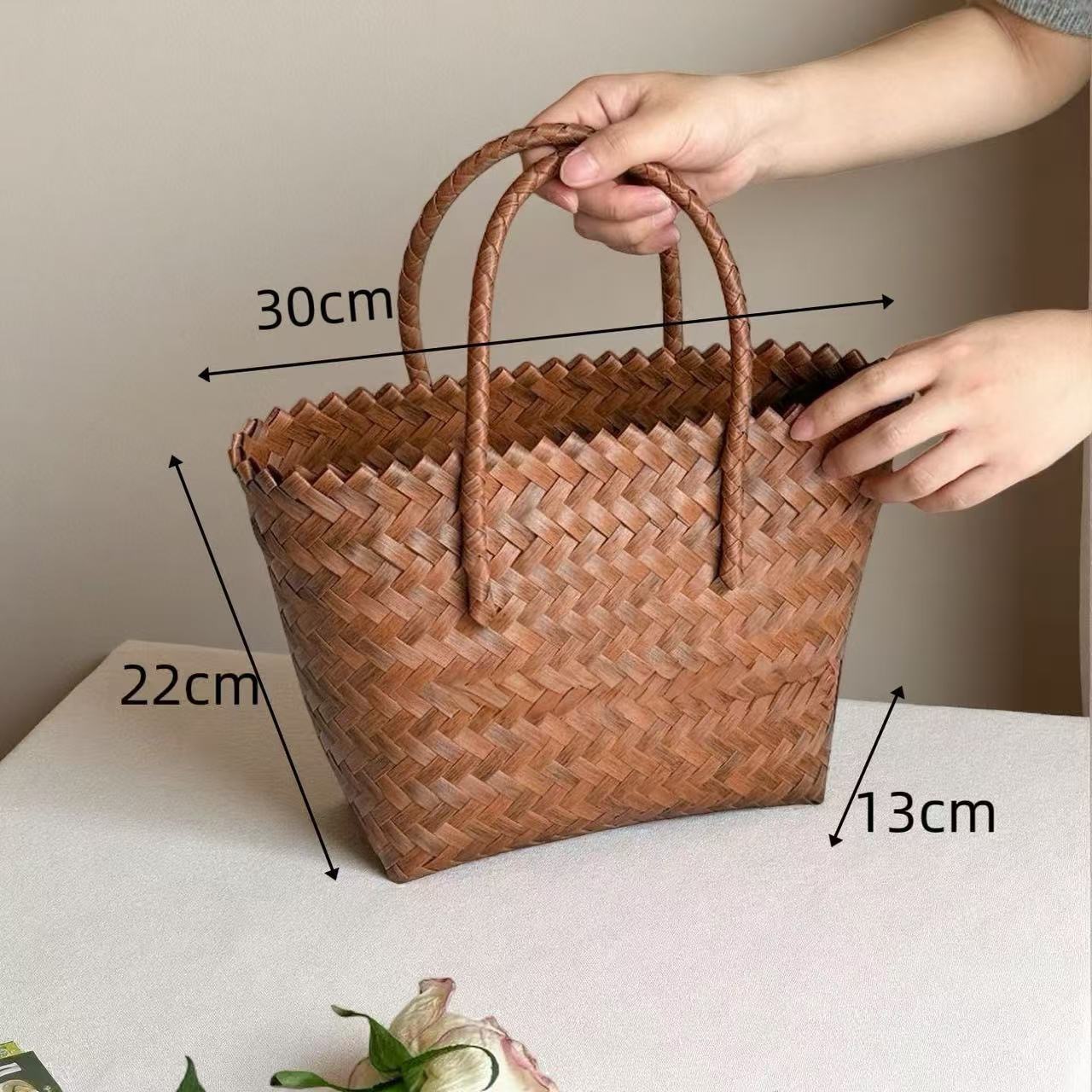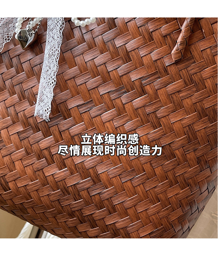 rattan-like woven bag handbag women's vintage brown tote bag spring and summer