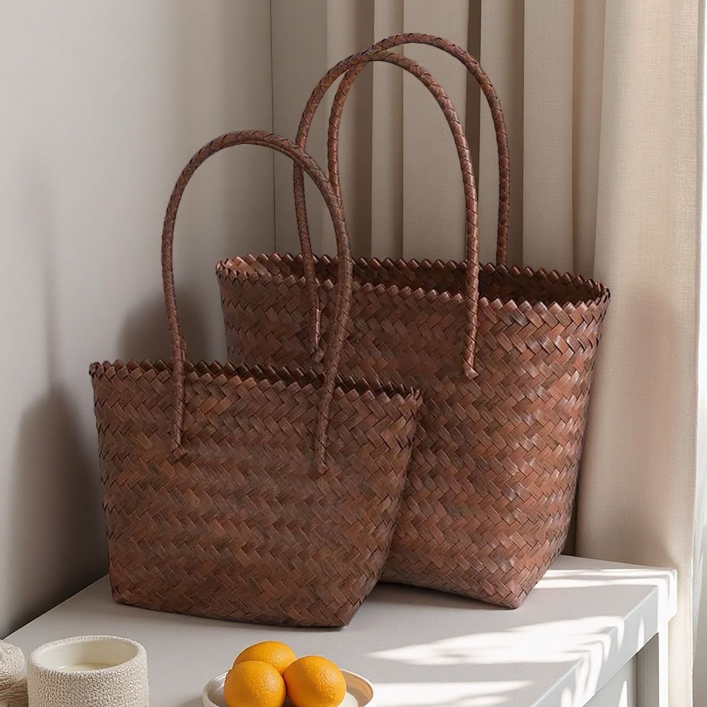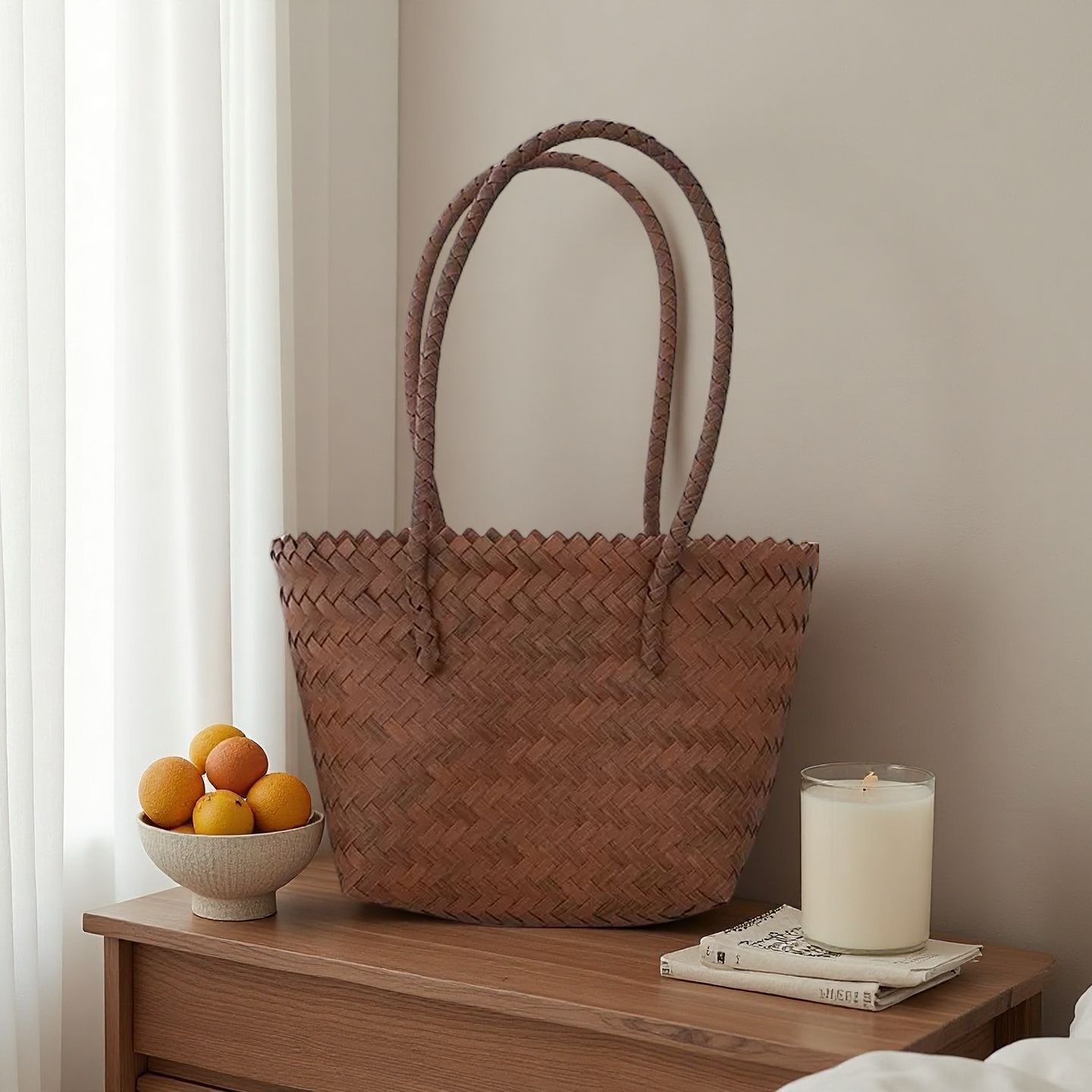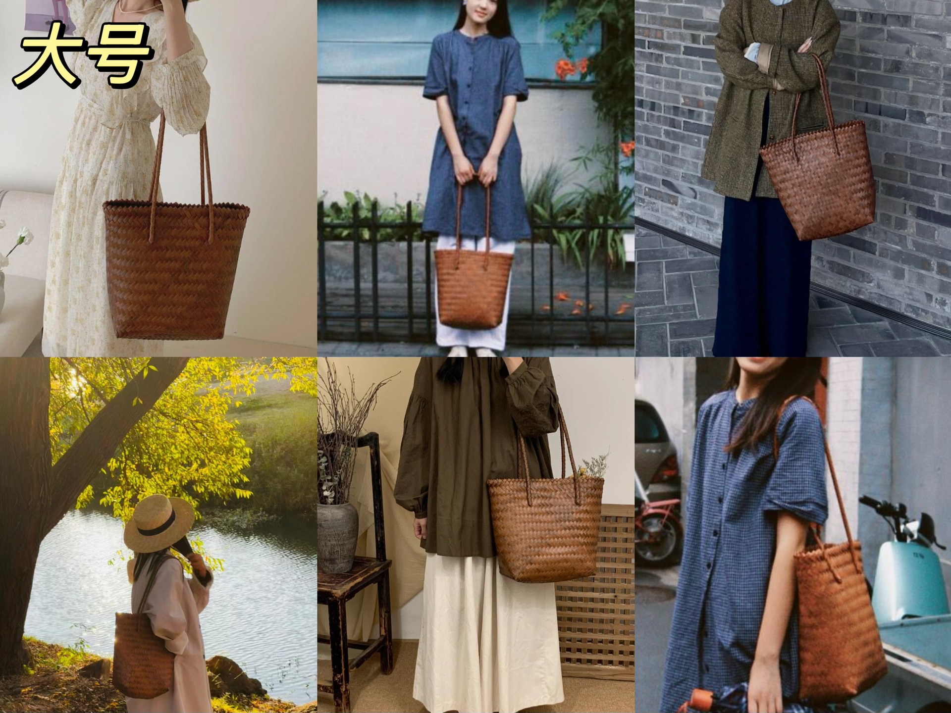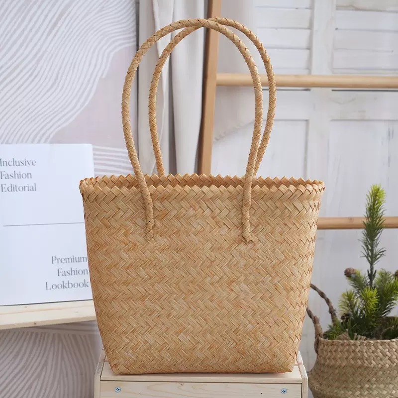 rattan-like woven bag handbag women's vintage brown tote bag spring and summer