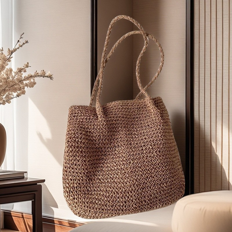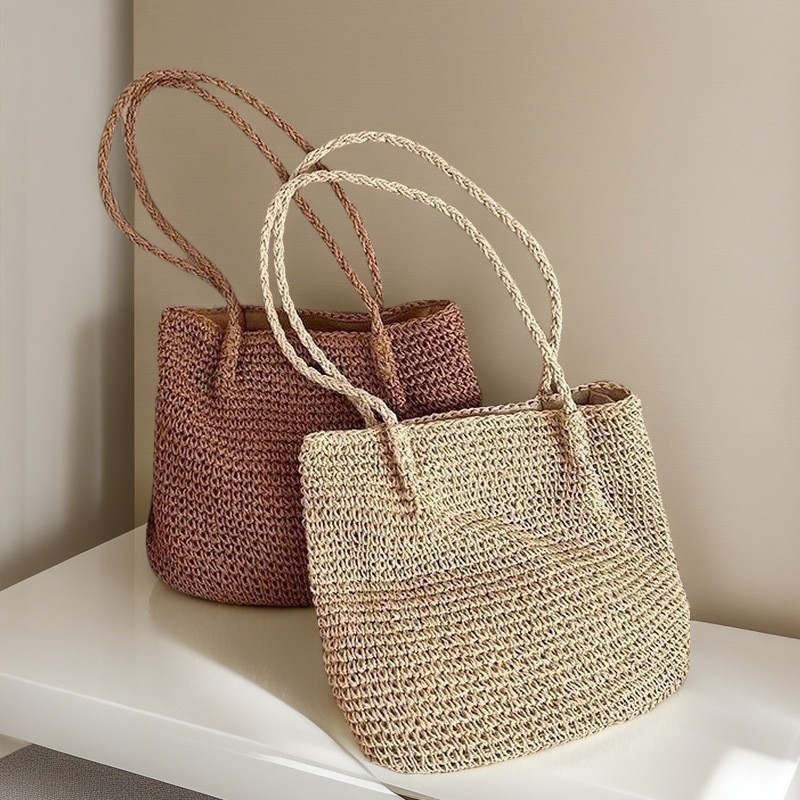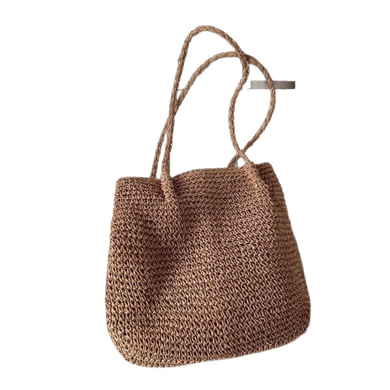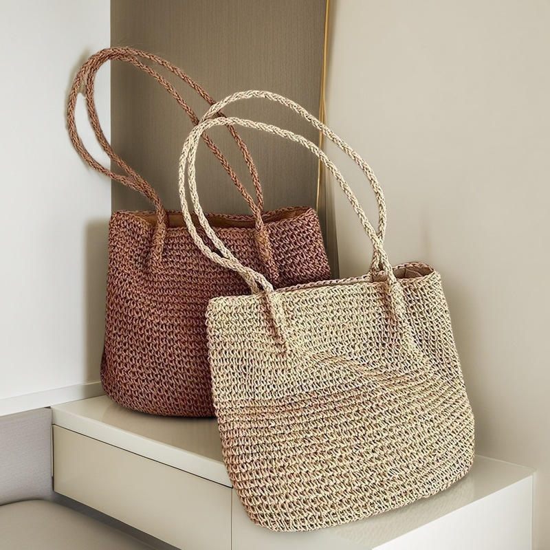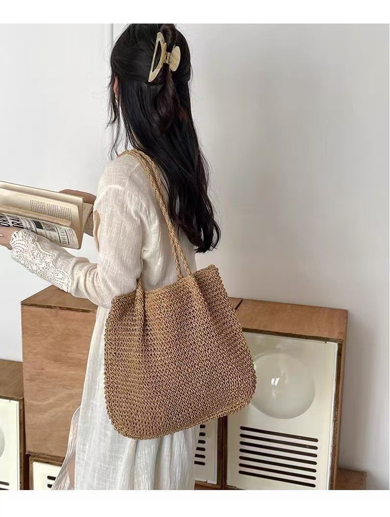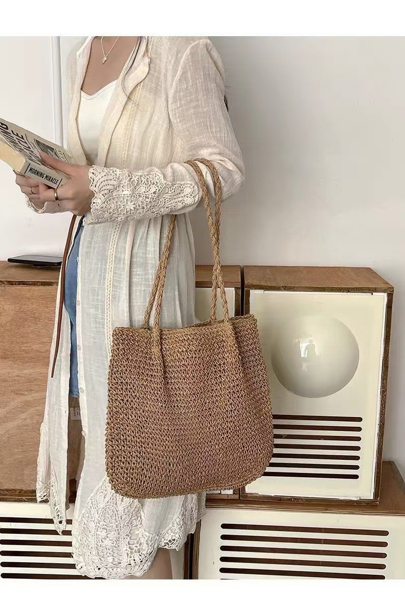 spaghetti strap woven bag/coffee color, spaghetti strap woven bag/beige