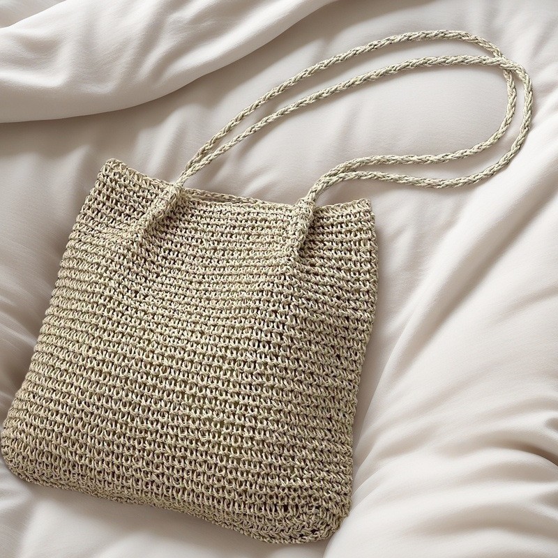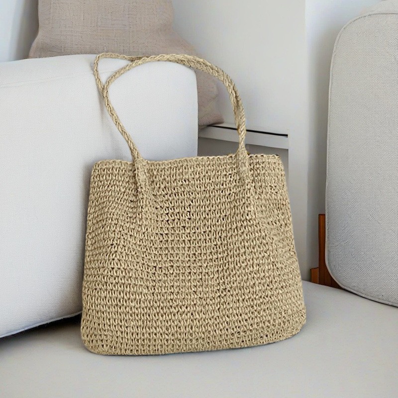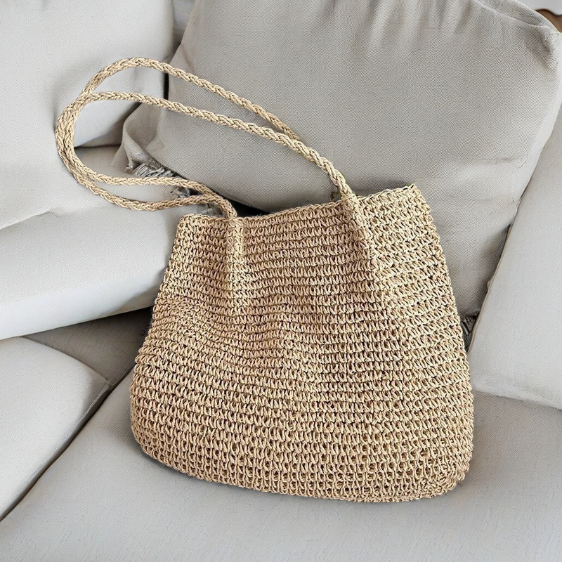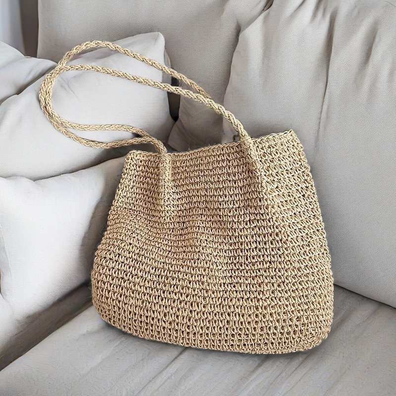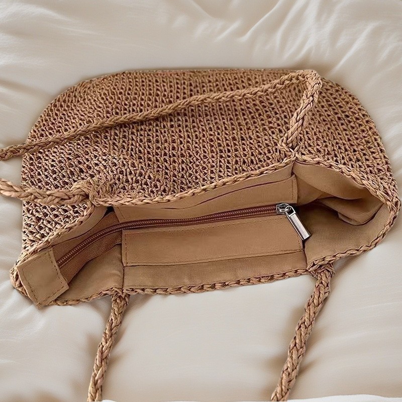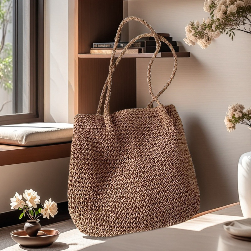 spaghetti strap woven bag/coffee color, spaghetti strap woven bag/beige