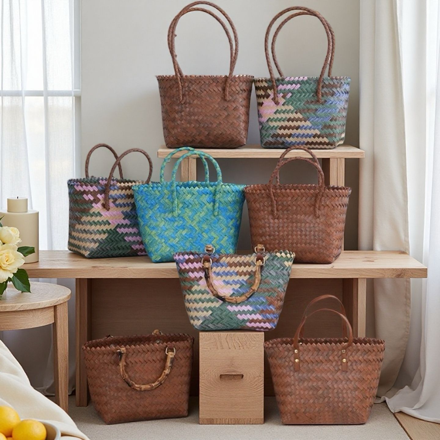 brown large size/bamboo joint handle, brown large size/short handle, brown large