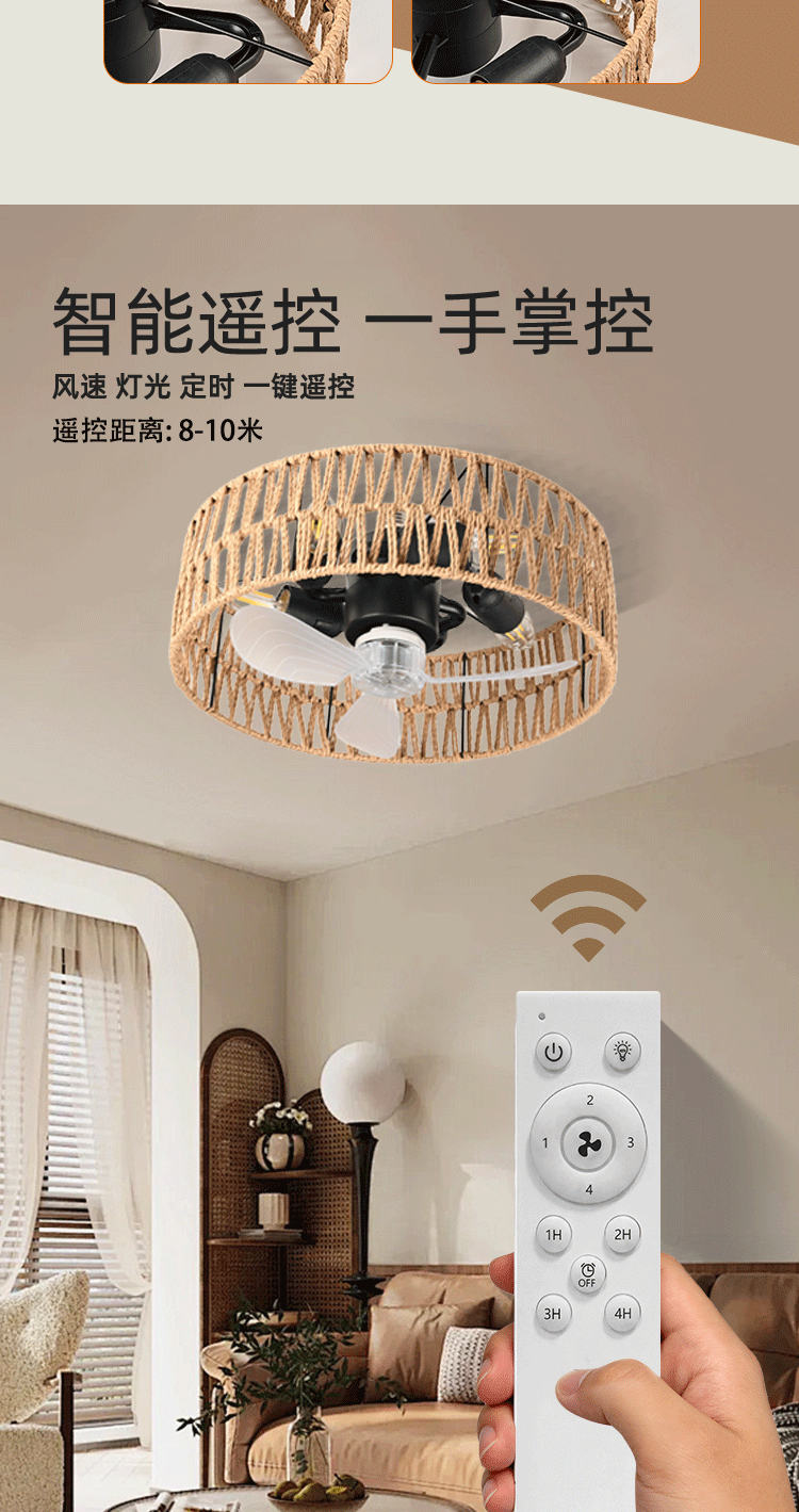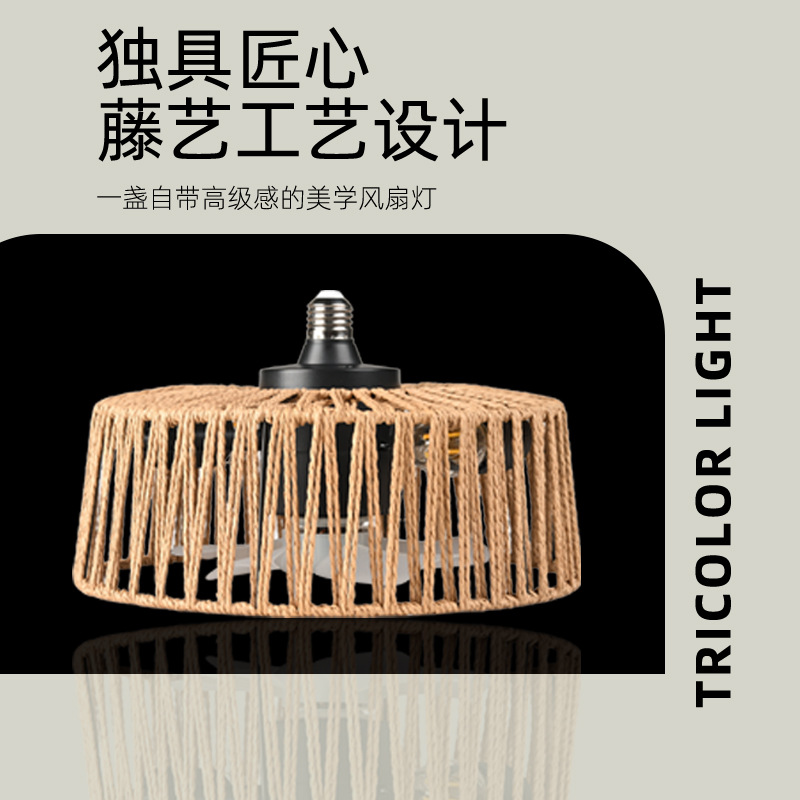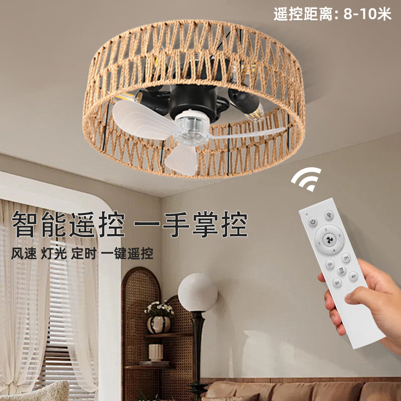 foreign trade exclusively for hemp rope fan-style ceiling lamp living room pastoral e27 screw ceiling fan lights retro american rattan fan lamp