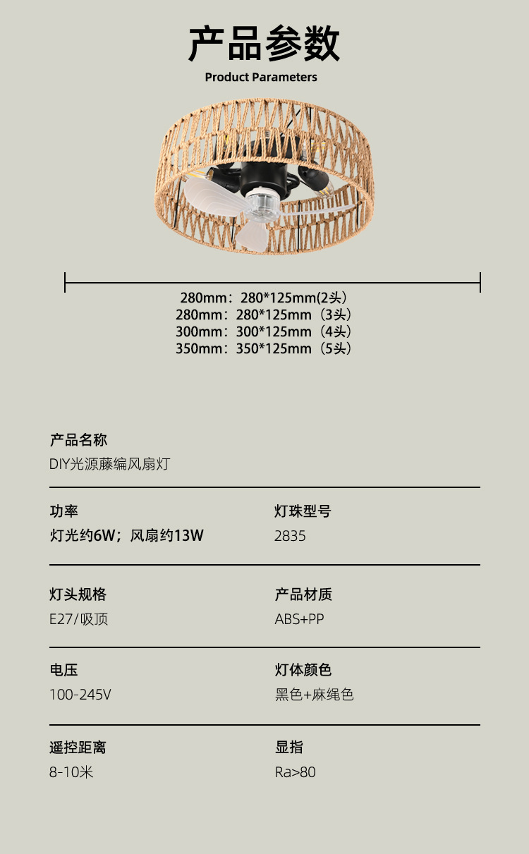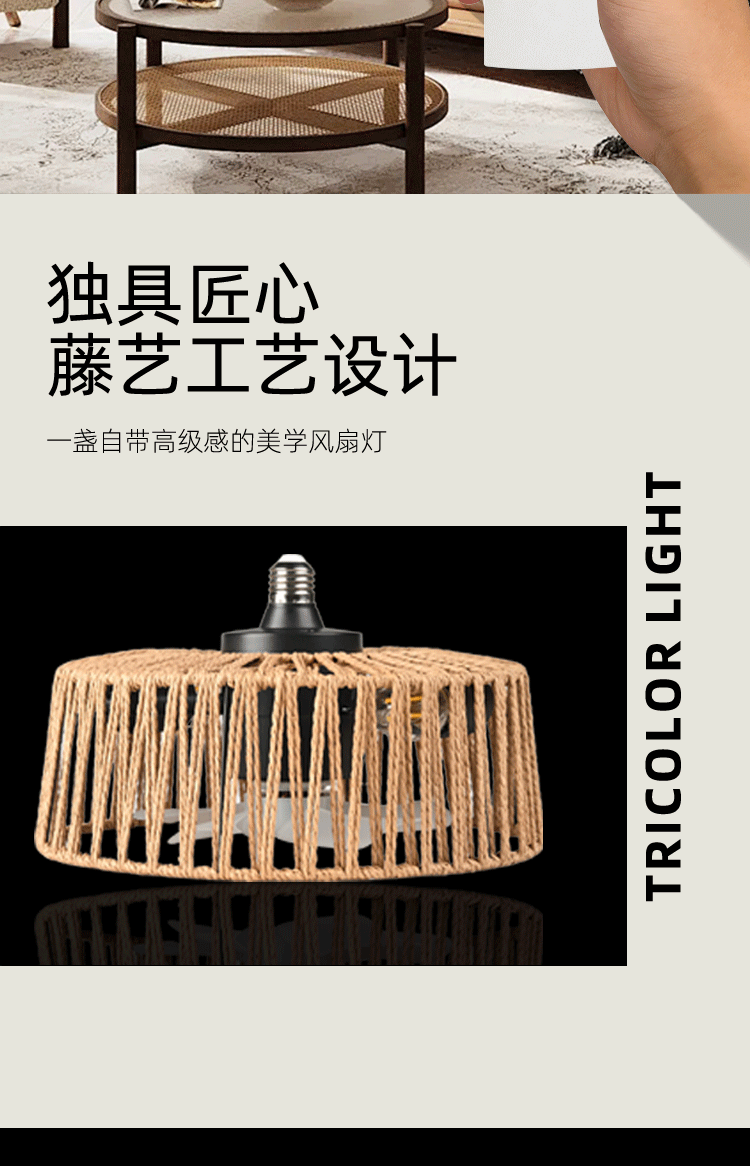 size: rattan art fan lamp-3 heads (without bulb), rattan art fan lamp