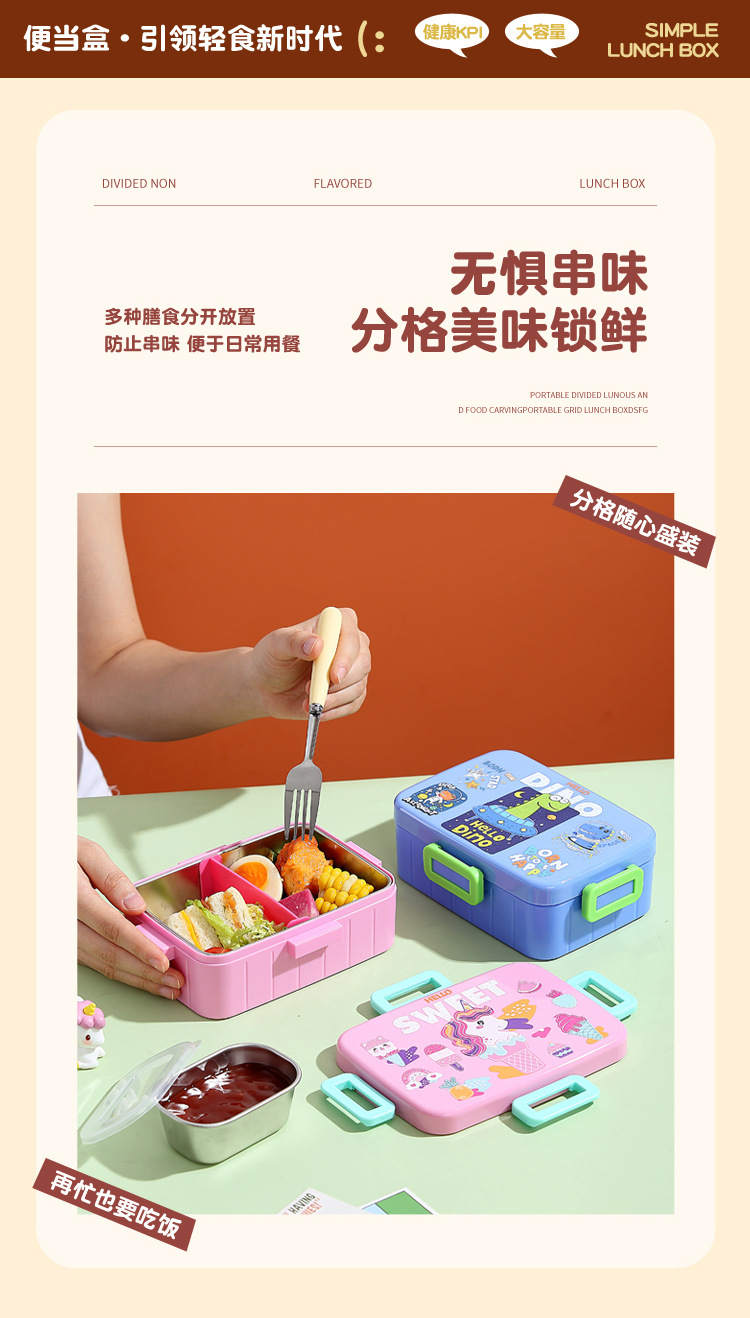 2734 single-compartment tray with bowl, dinosaur