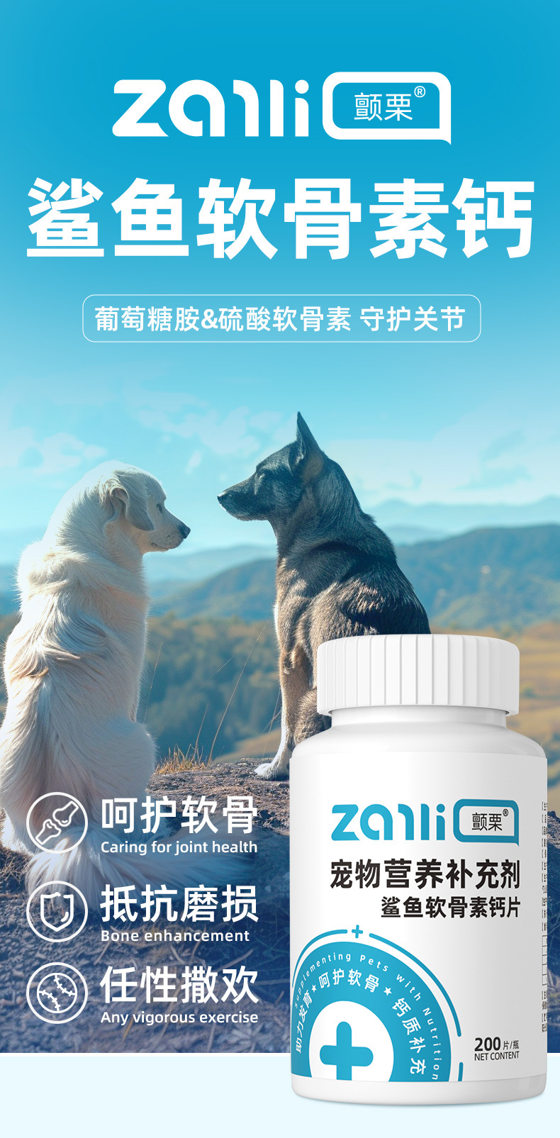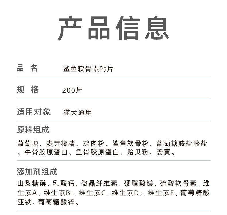 thriller shark chondroitin calcium tablets oem dogs and cats special joint care promoting development calcium supplement pet nutrition health care products