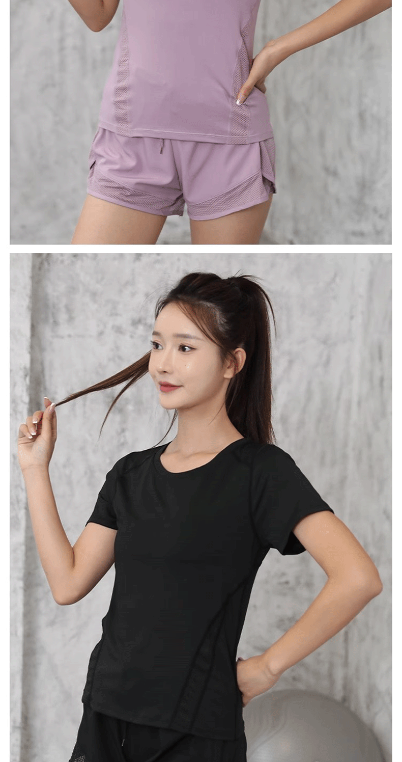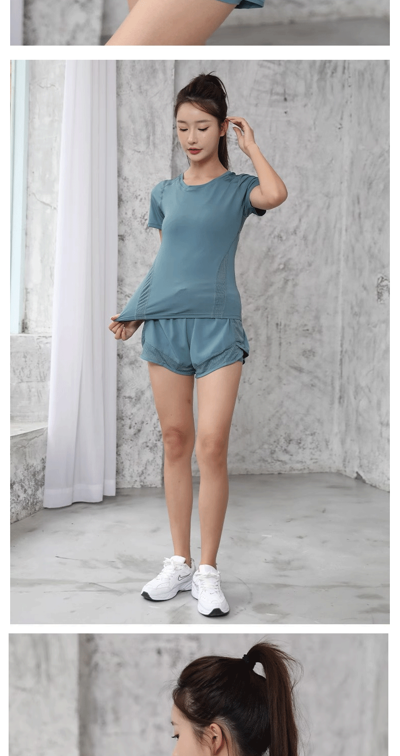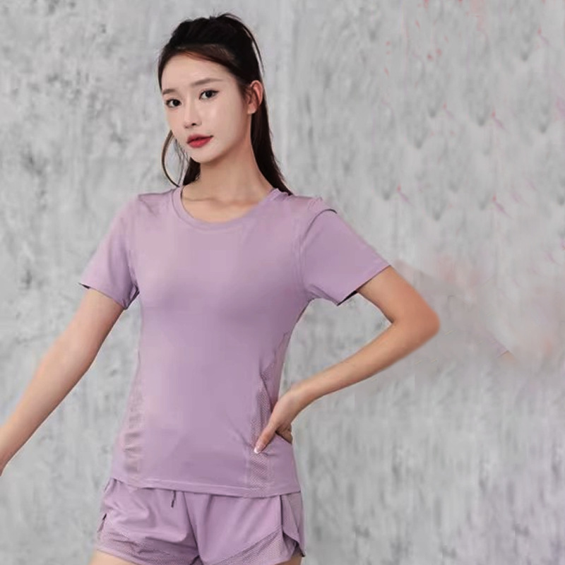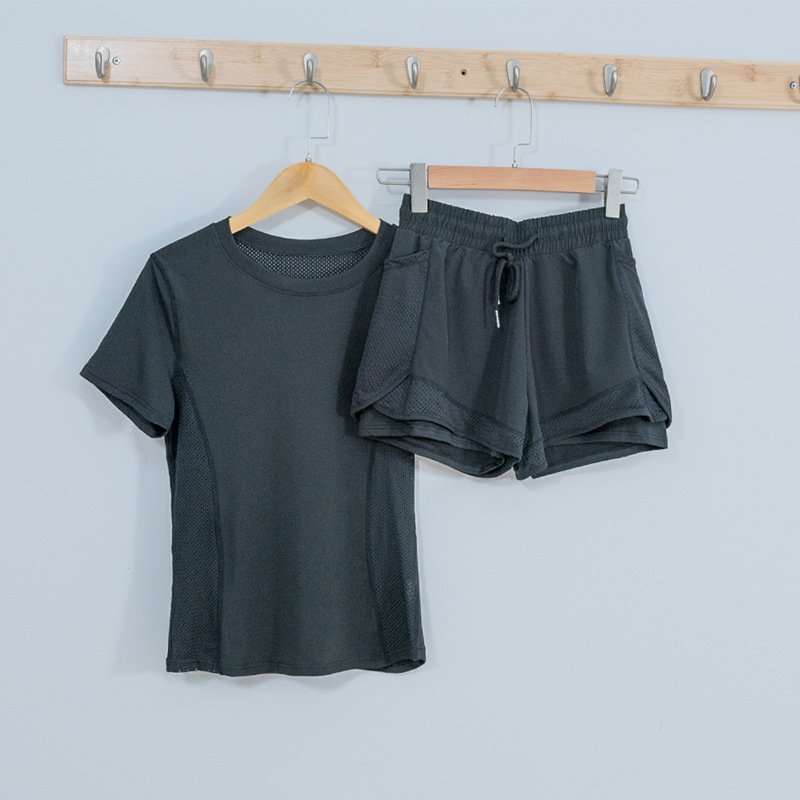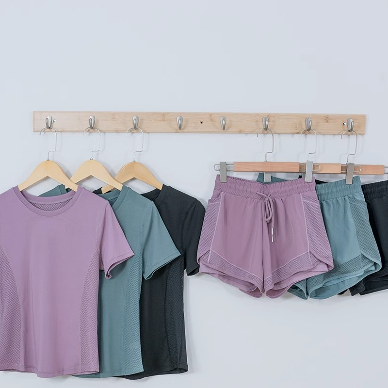 cross-border european and american tight waist sports short sleeve women's casual loose running yoga clothes breathable fitness yoga wear suit