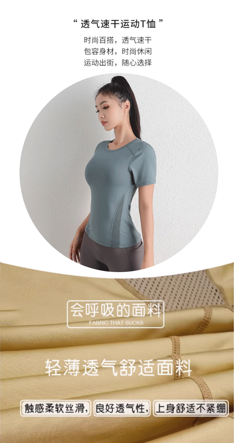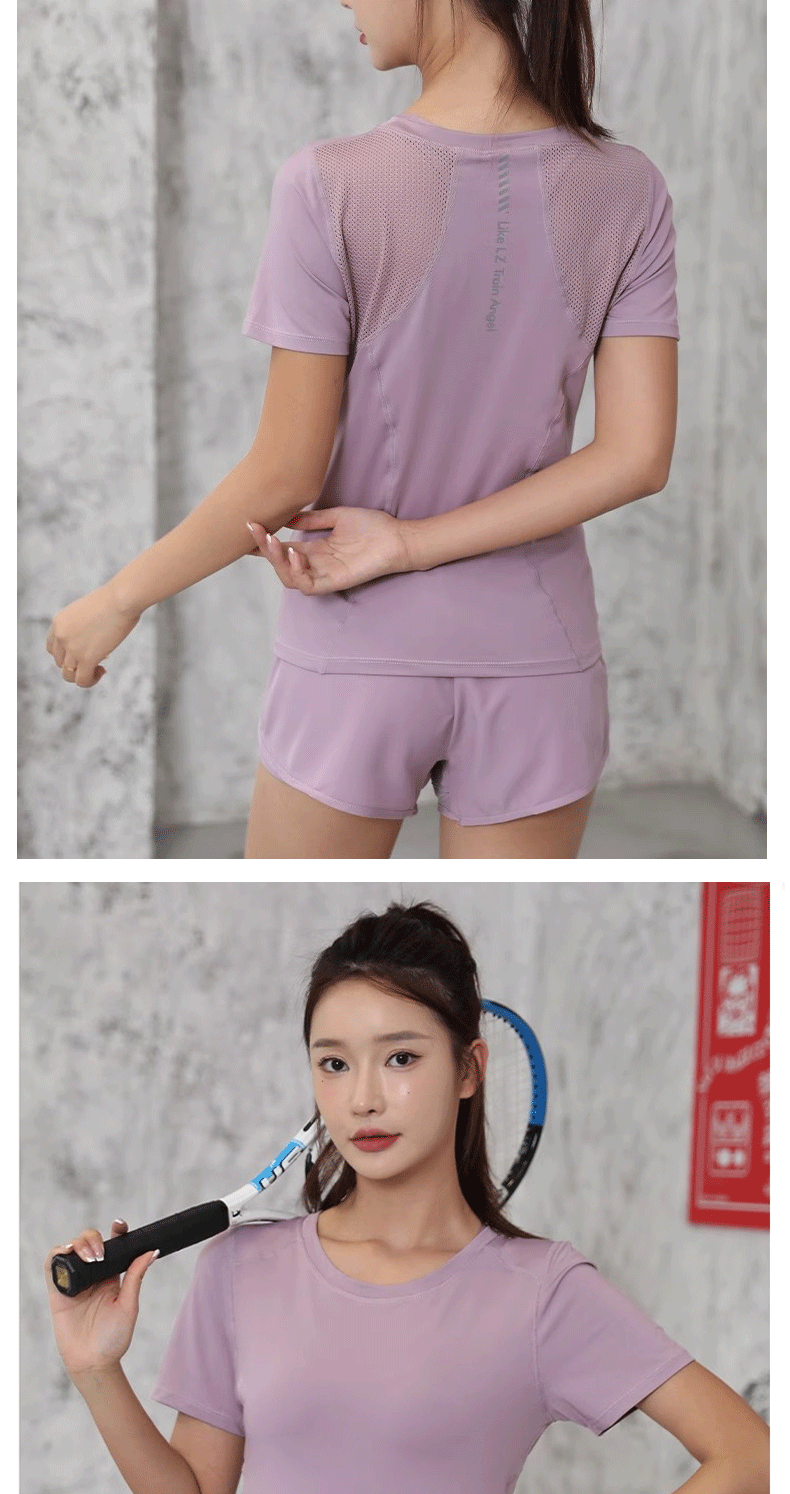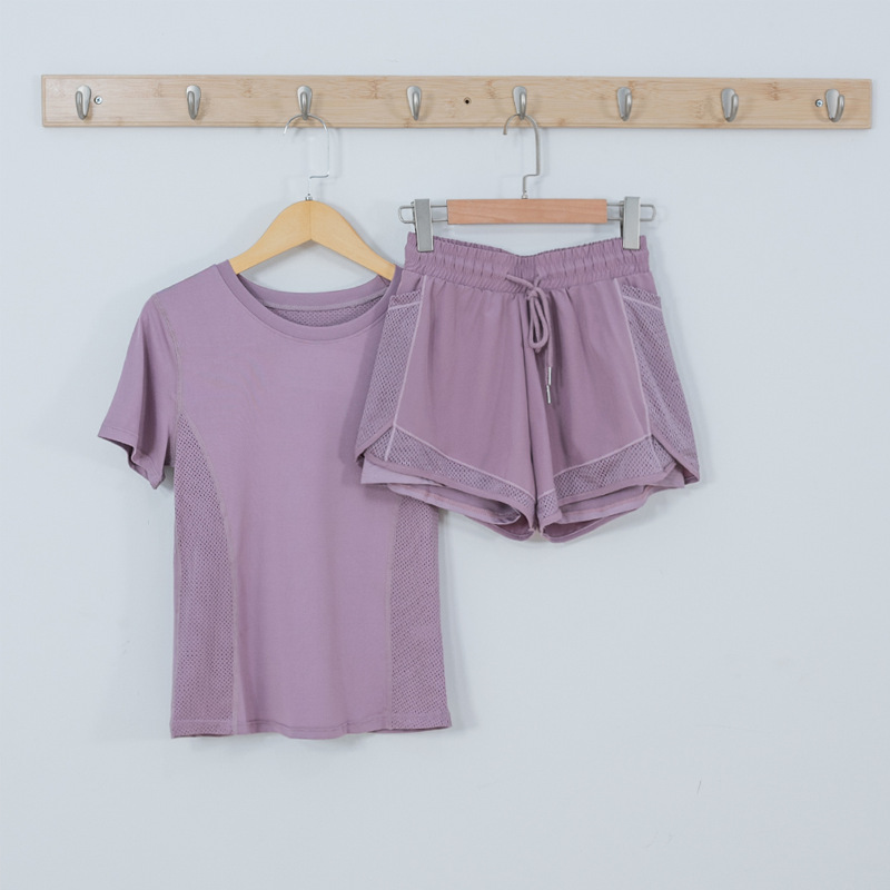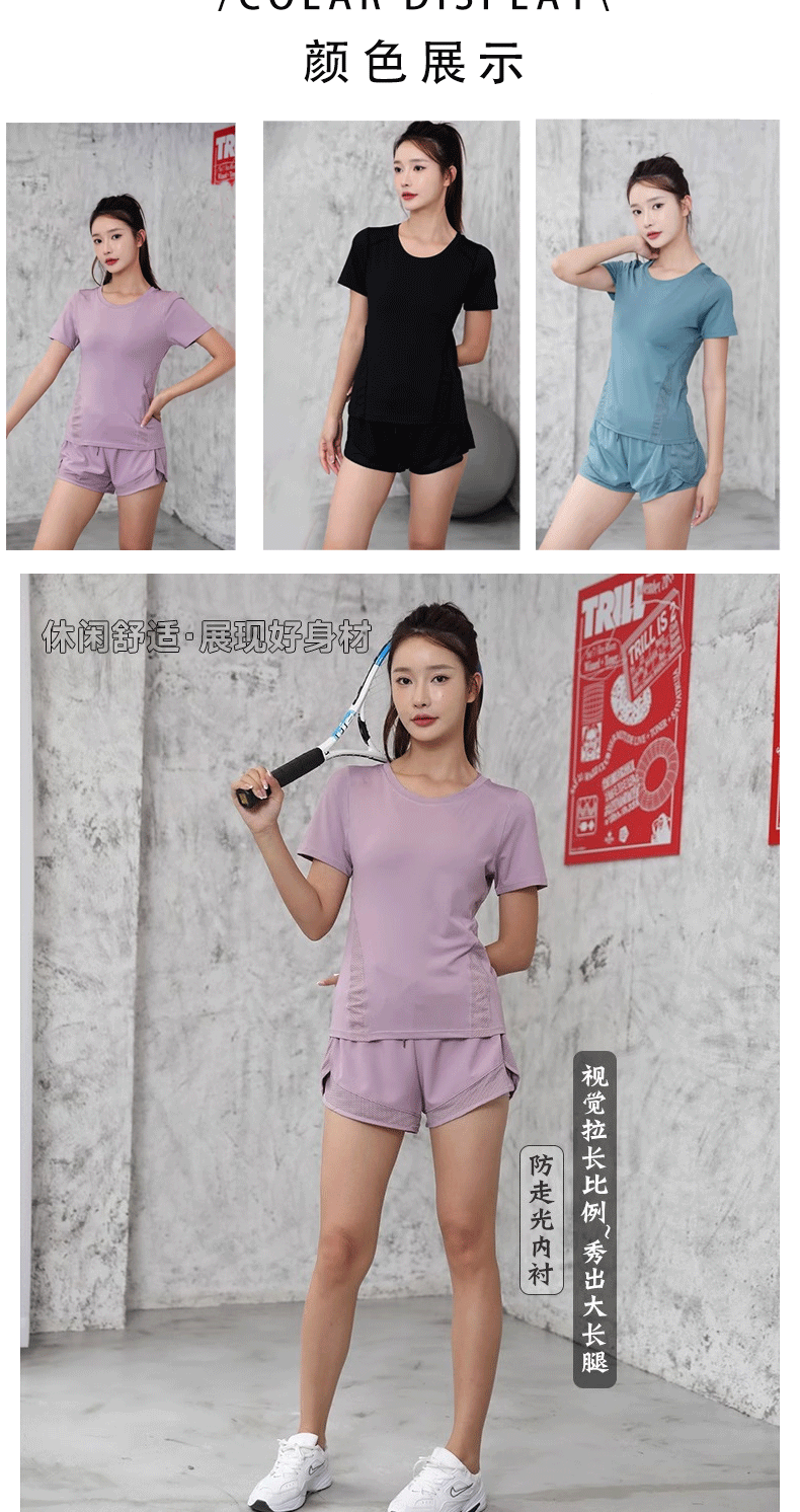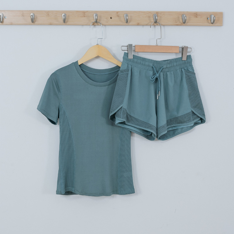 cross-border european and american tight waist sports short sleeve women's casual loose running yoga clothes breathable fitness yoga wear suit