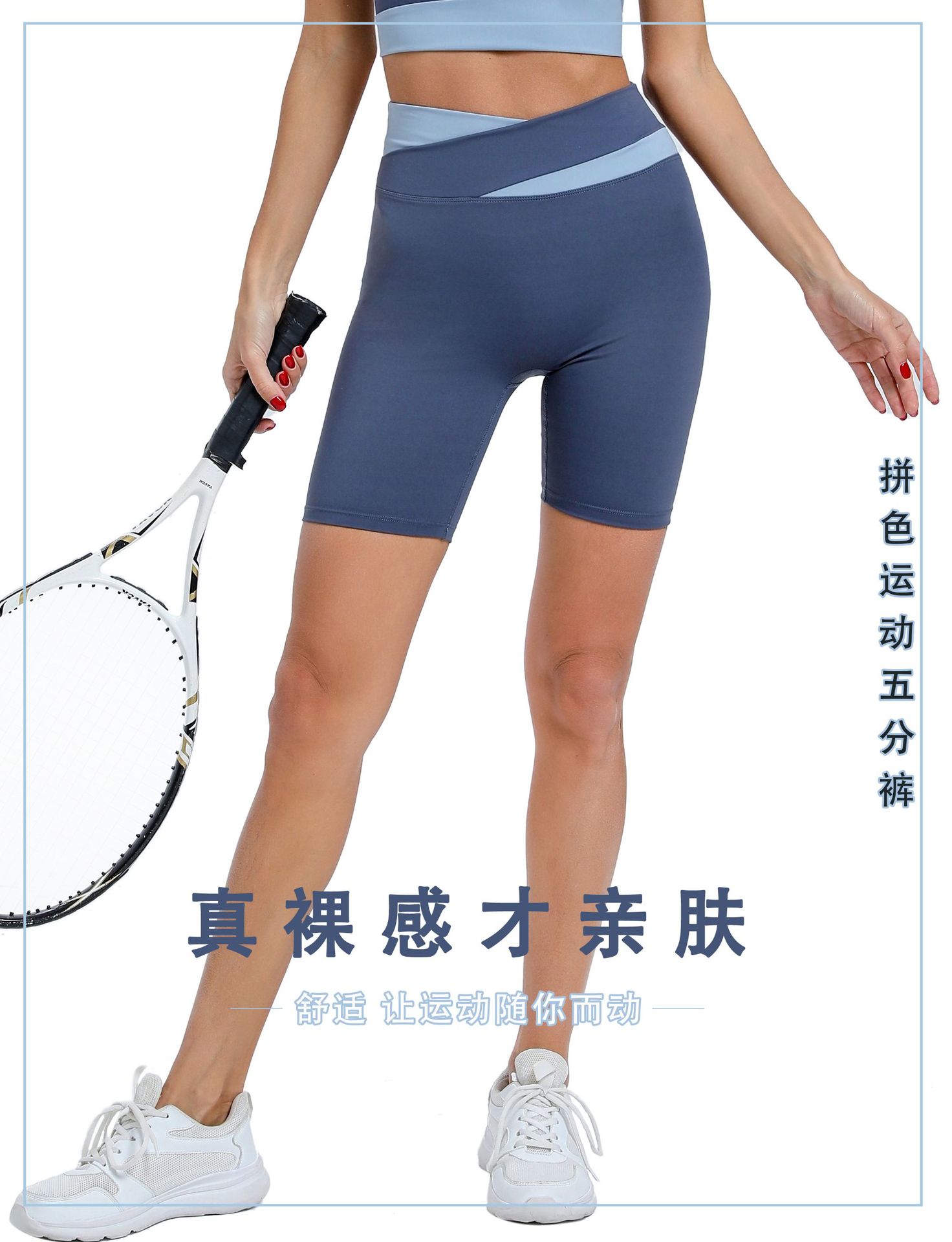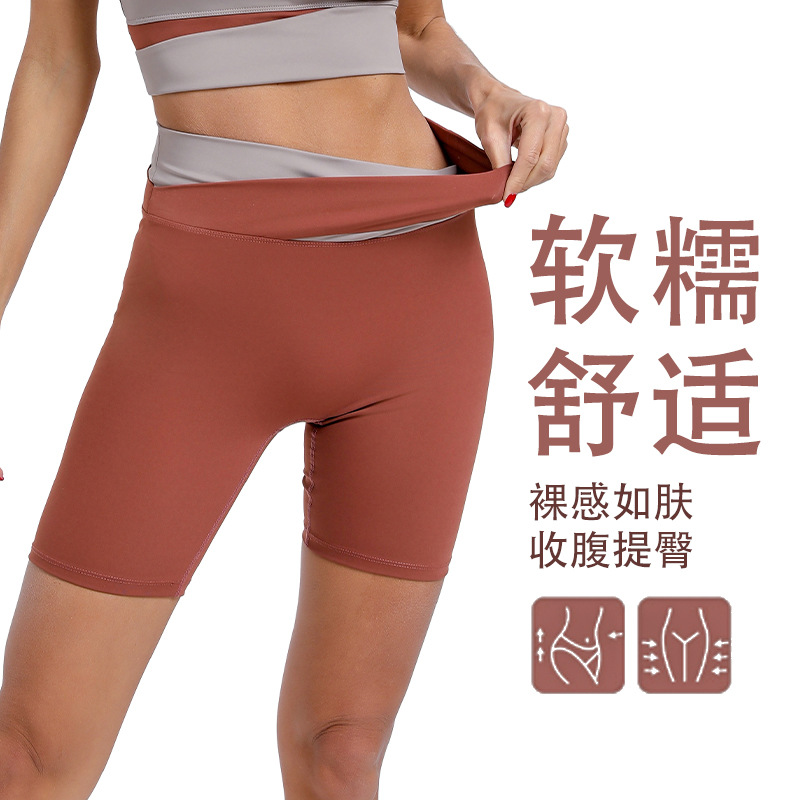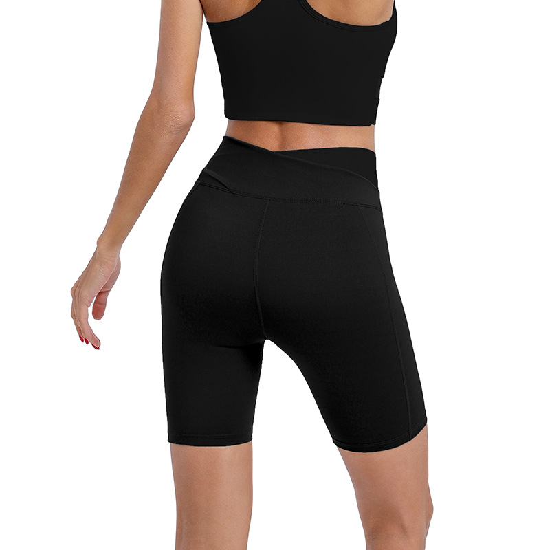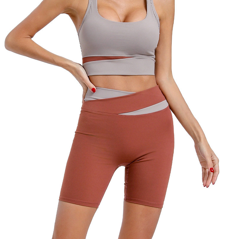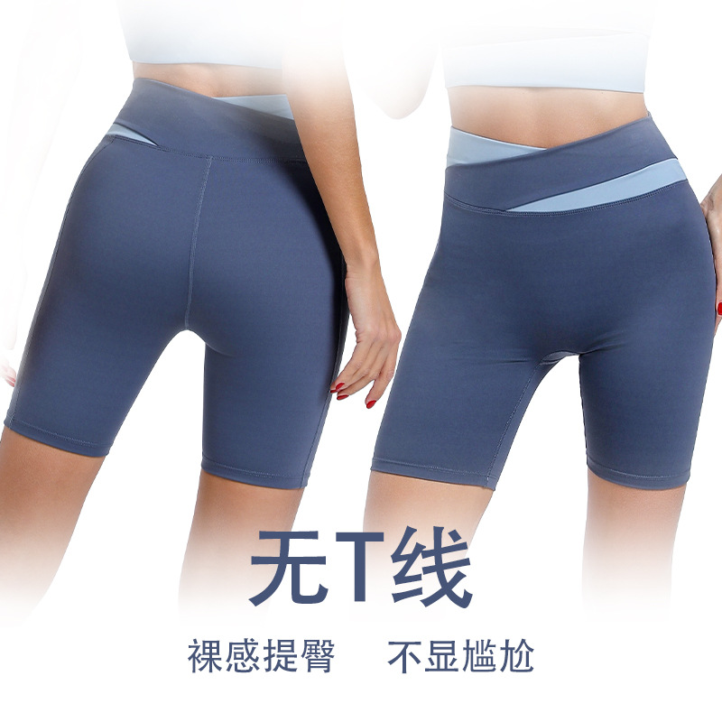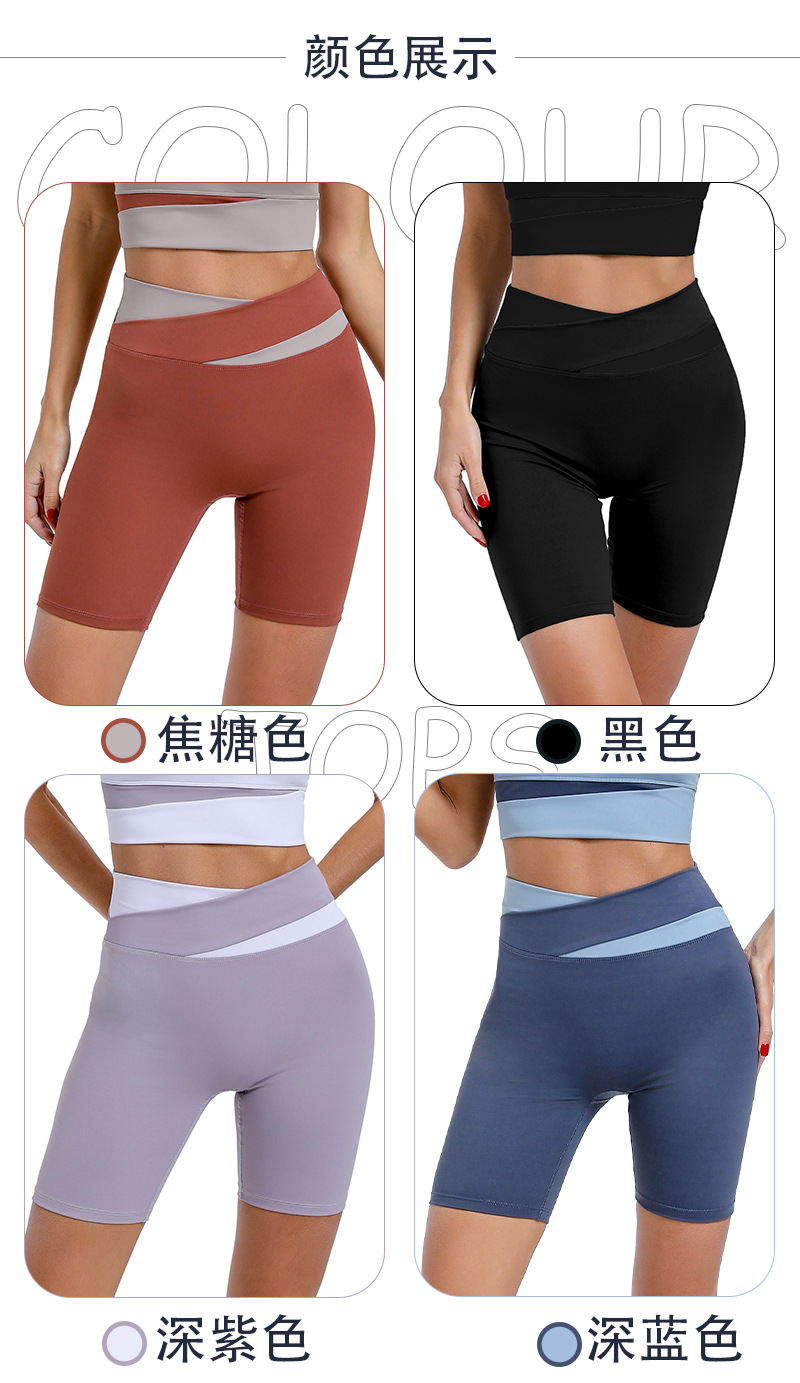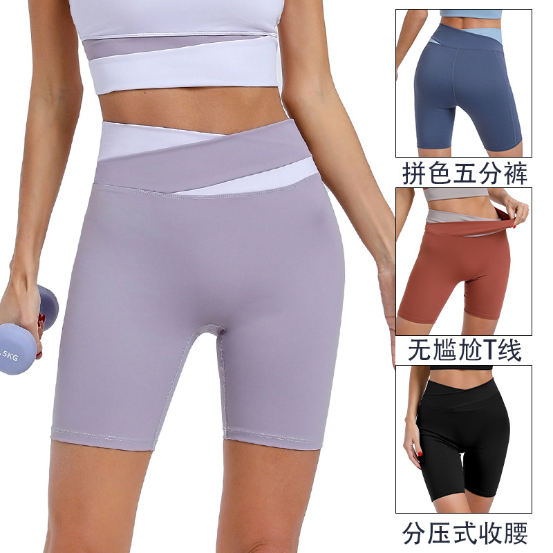 yoga pants shorts women's contrast color outer wear cross high waist hip lift no embarrassment line tight-fitting cinched five points fitness leisure