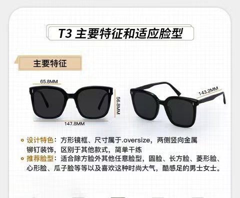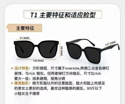 t37-black frame black and grey lens [metal rice nail]