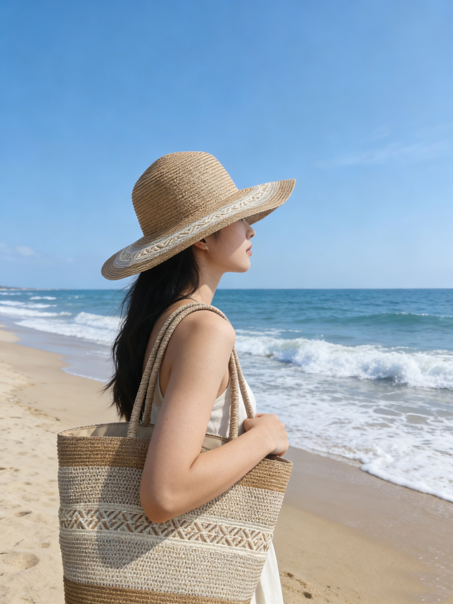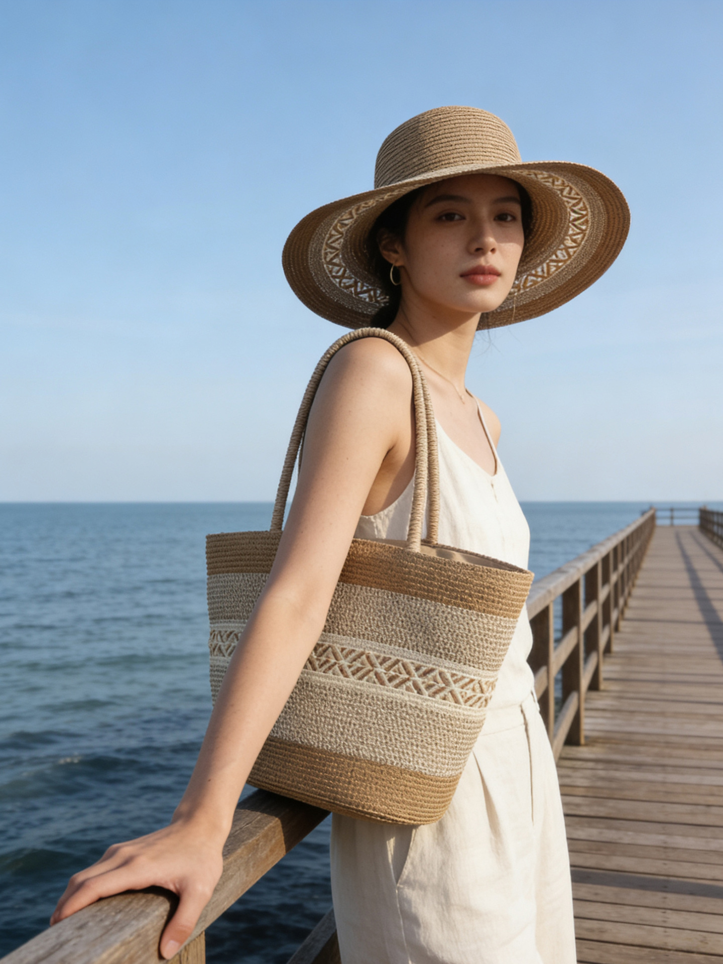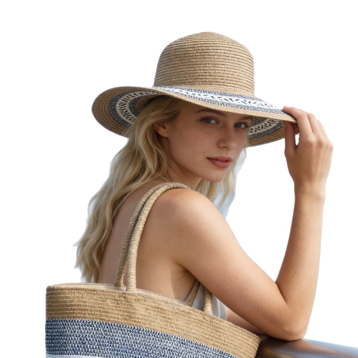 all-match woven bag set straw bag hat summer sun hat holiday vacation shoulder tote bag simple fashion