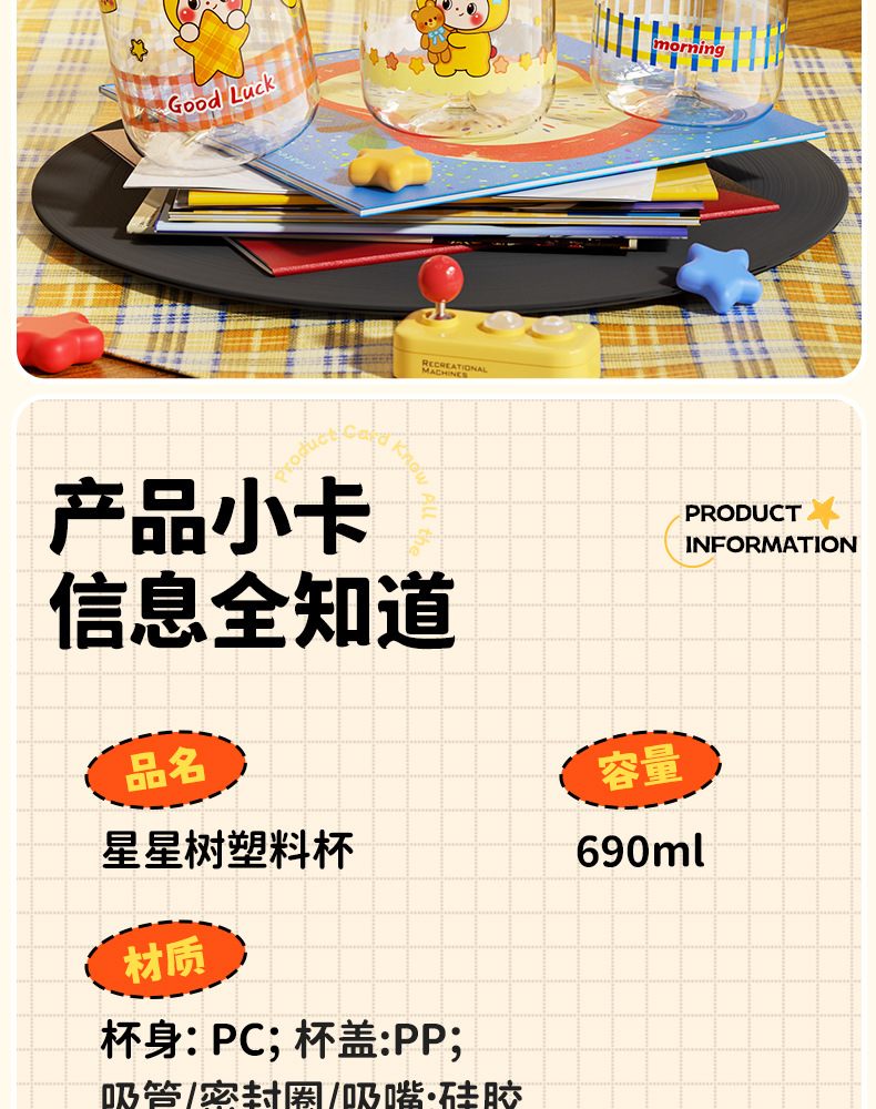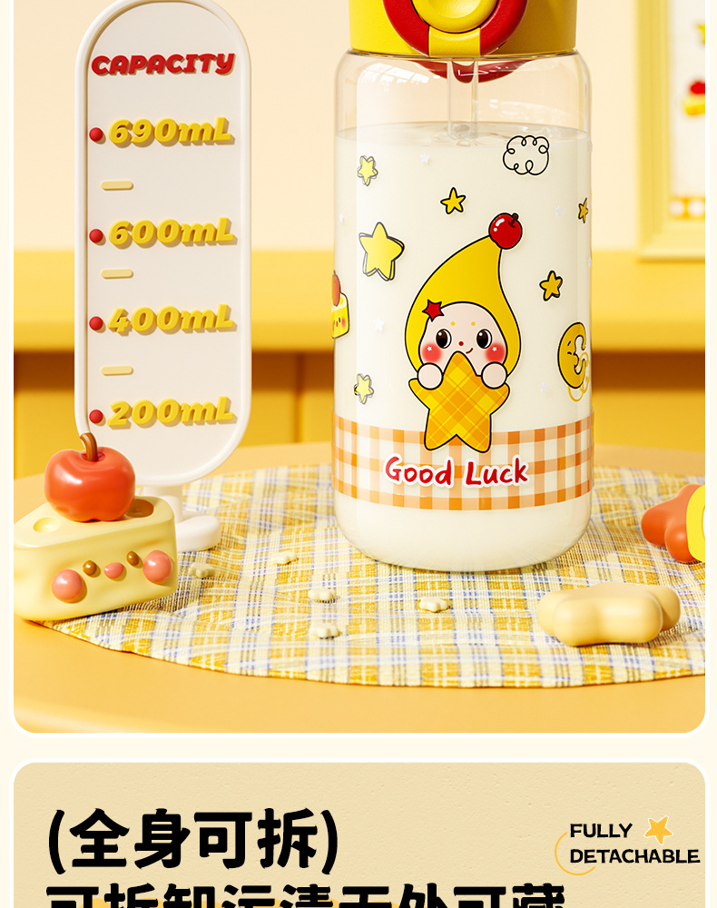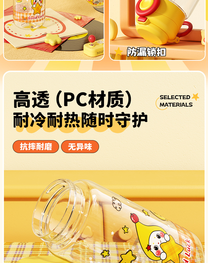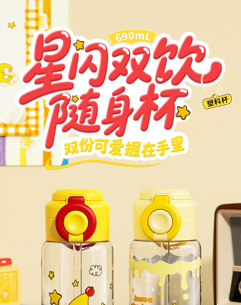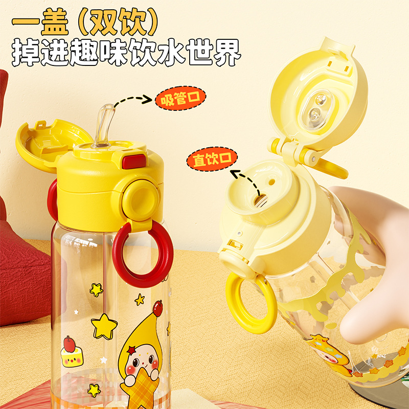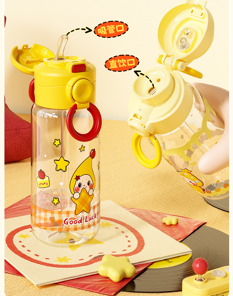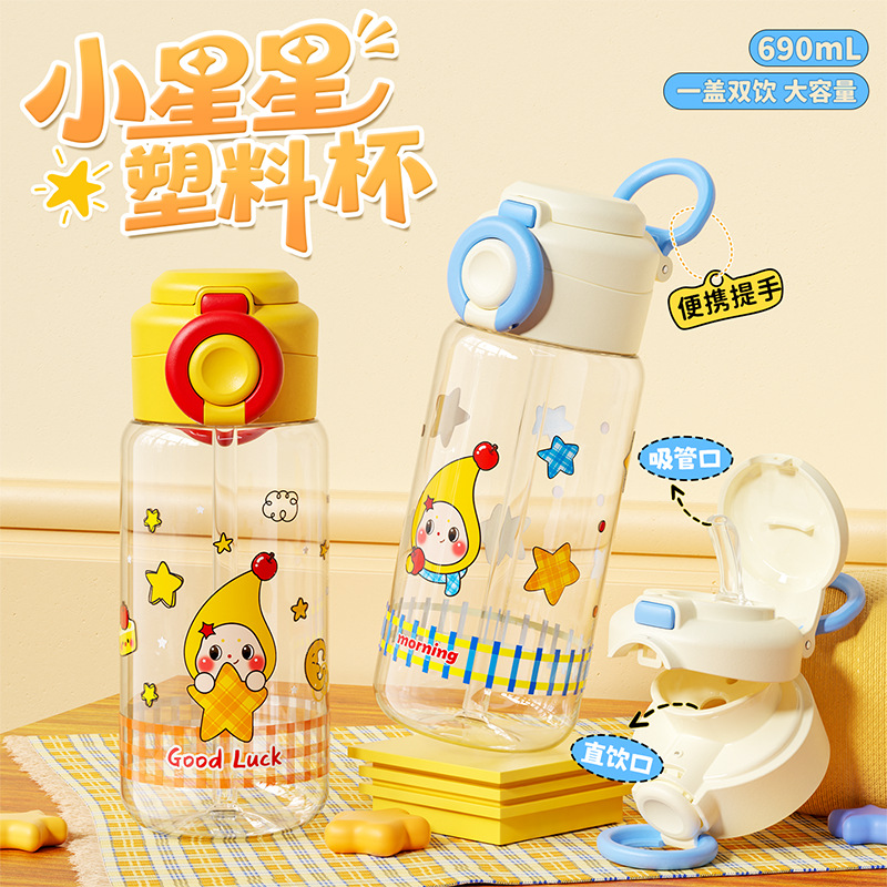 Title: New Star People Plastic Cup with Handles and Straw for Students with Large Capacity, Perfect for Female Athletes and Gift Cups