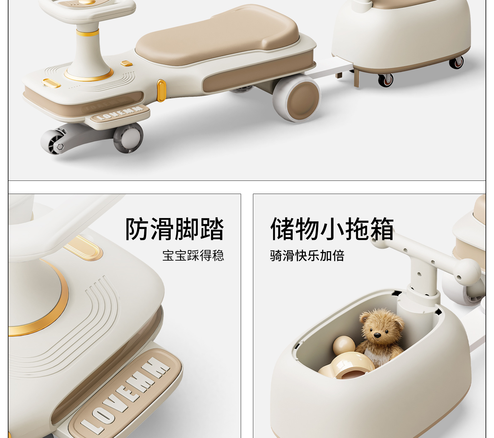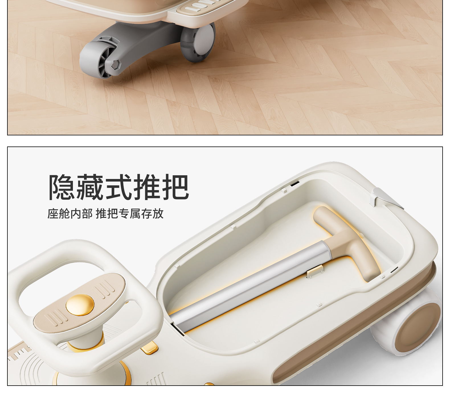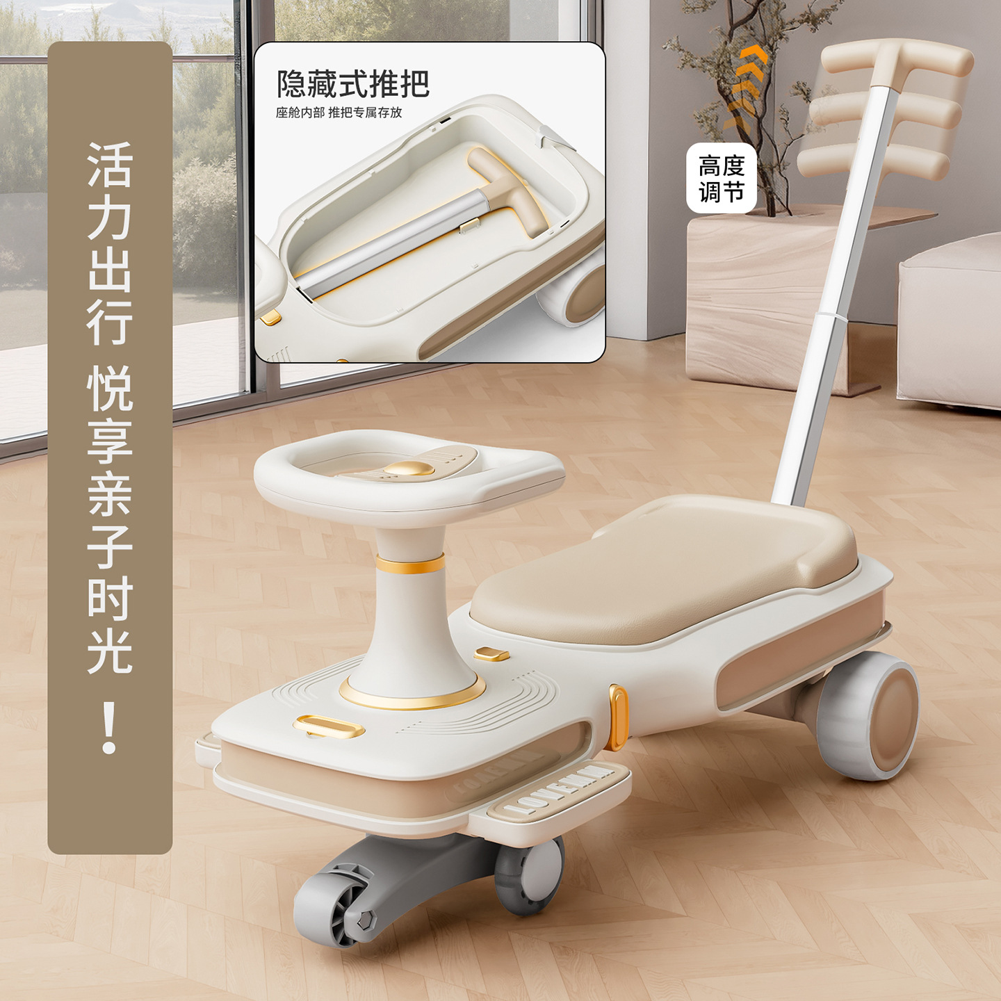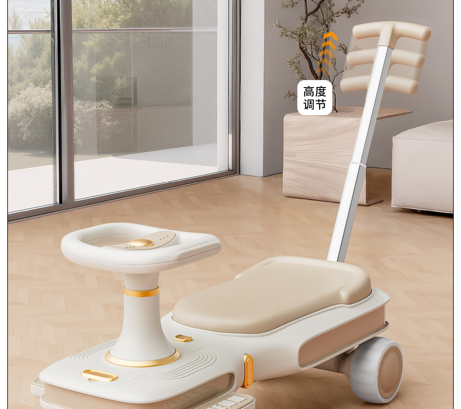 yq-soft khaki light music trailer scooter push handle adults can sit flagship