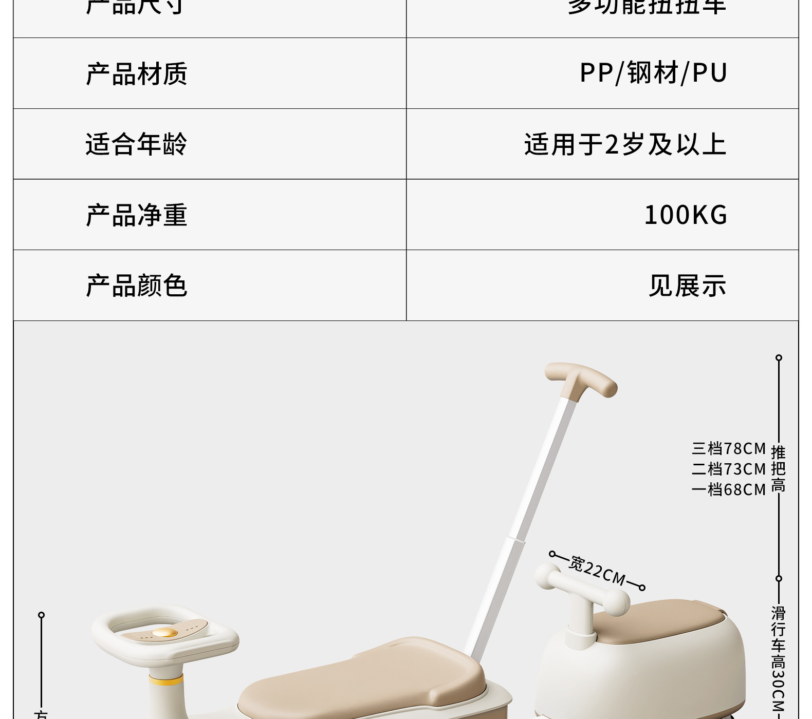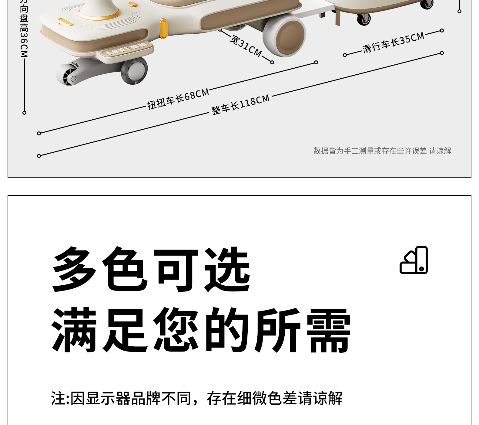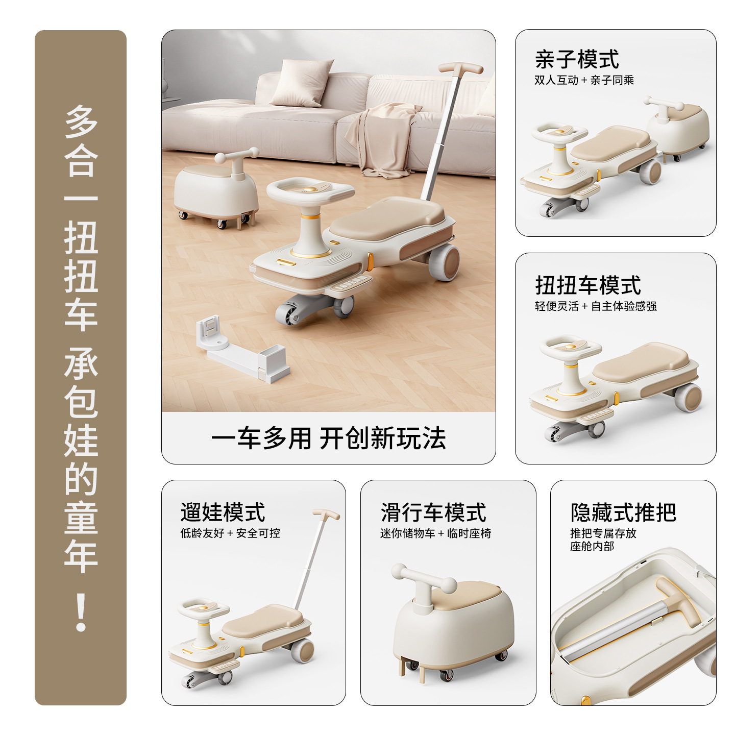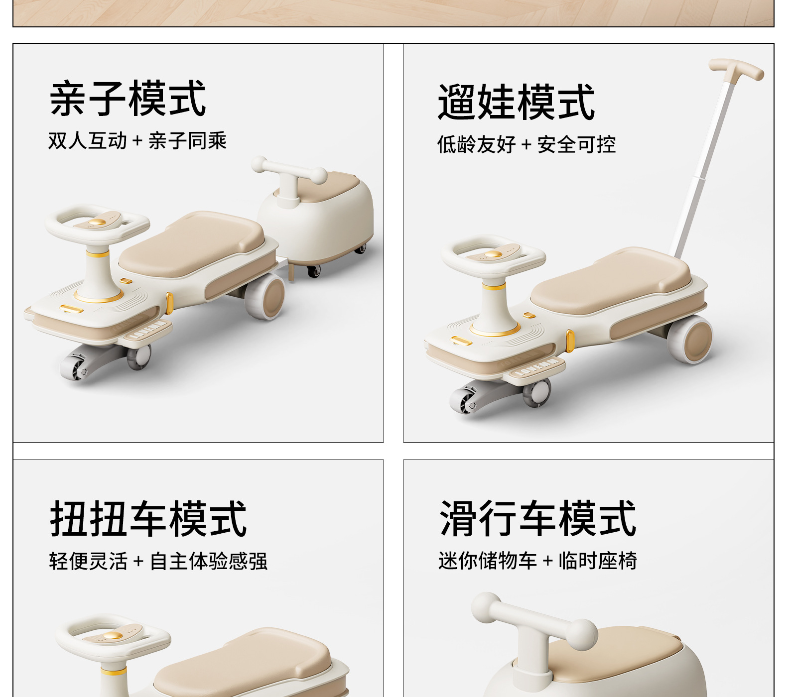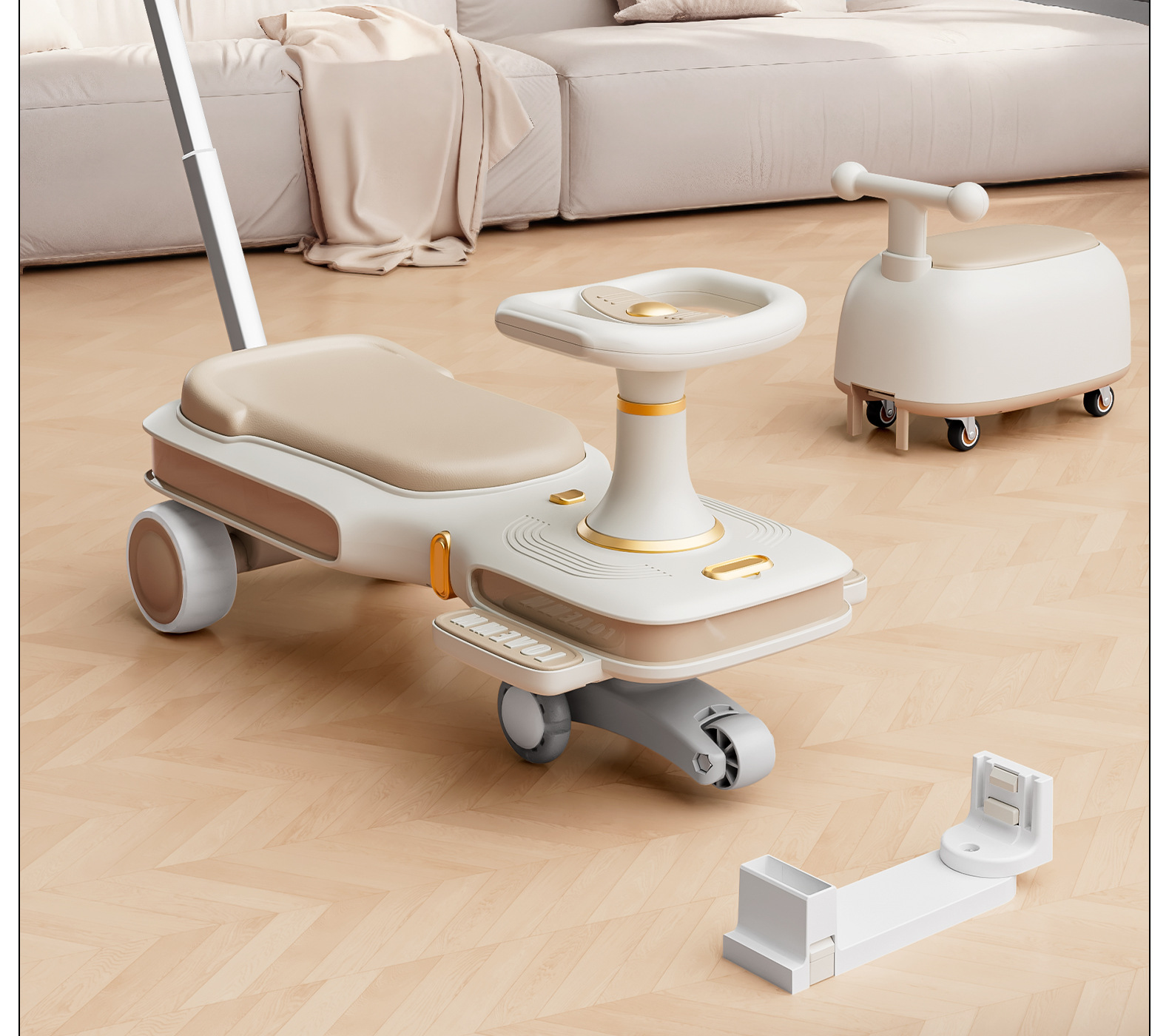 yq-soft khaki light music trailer scooter push handle adults can sit flagship