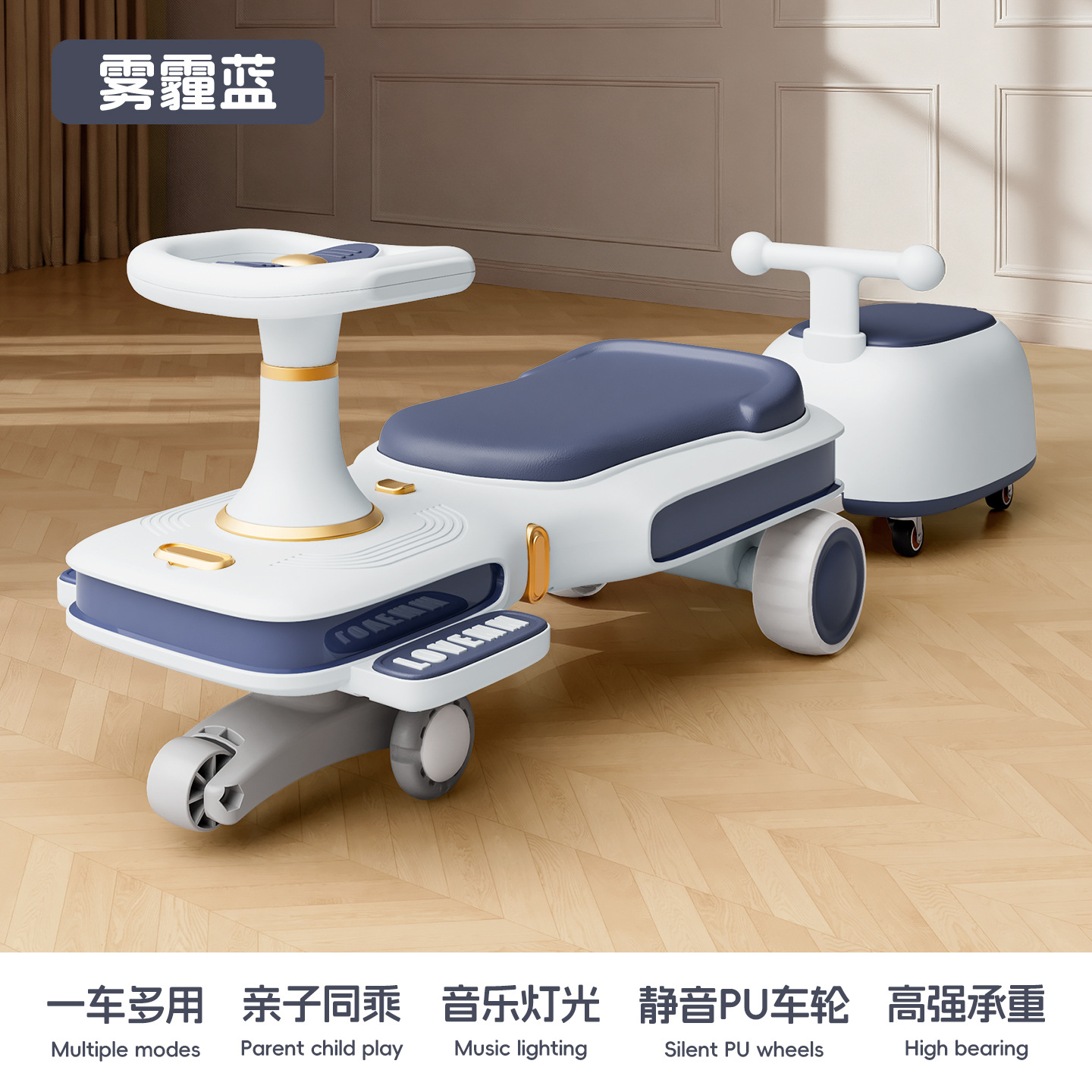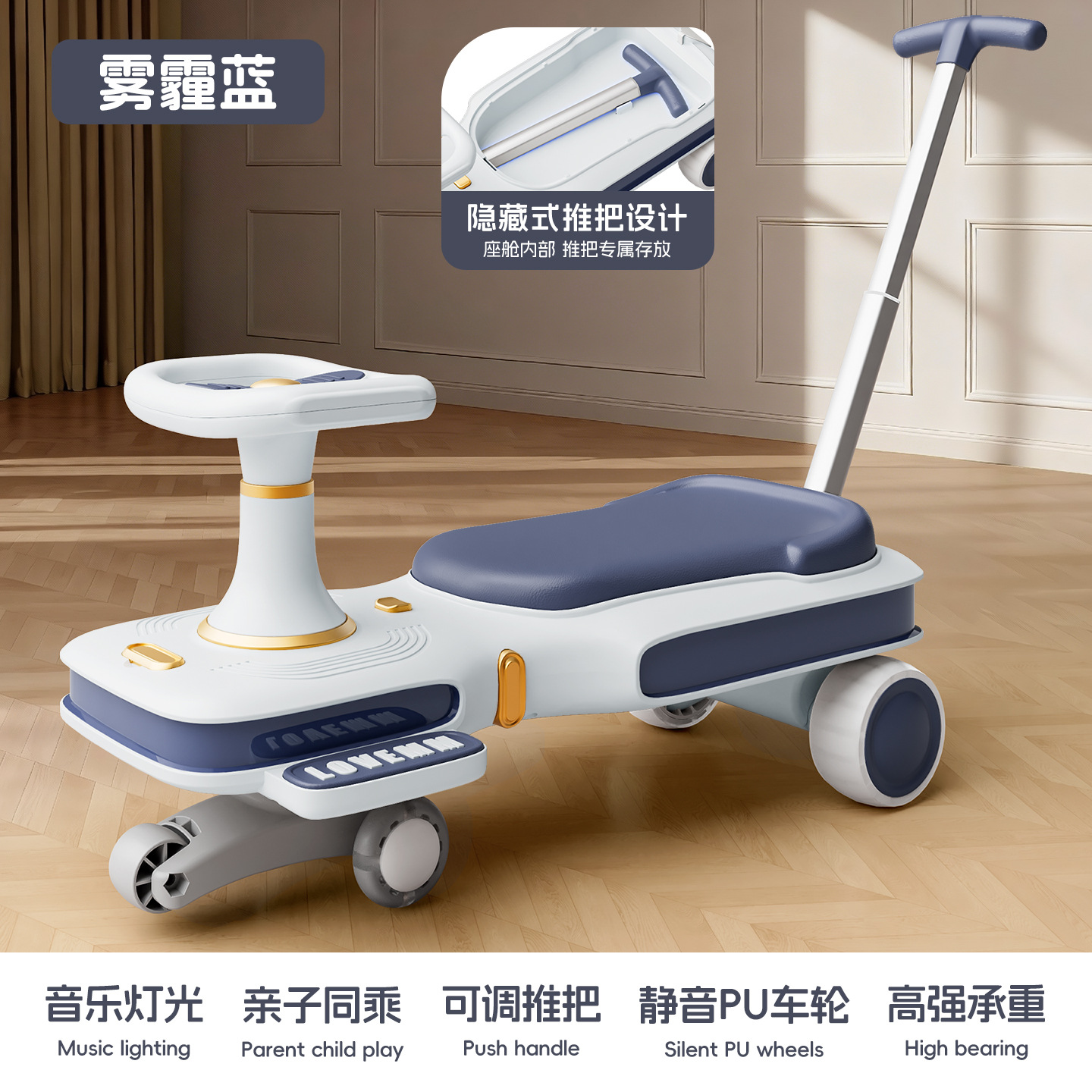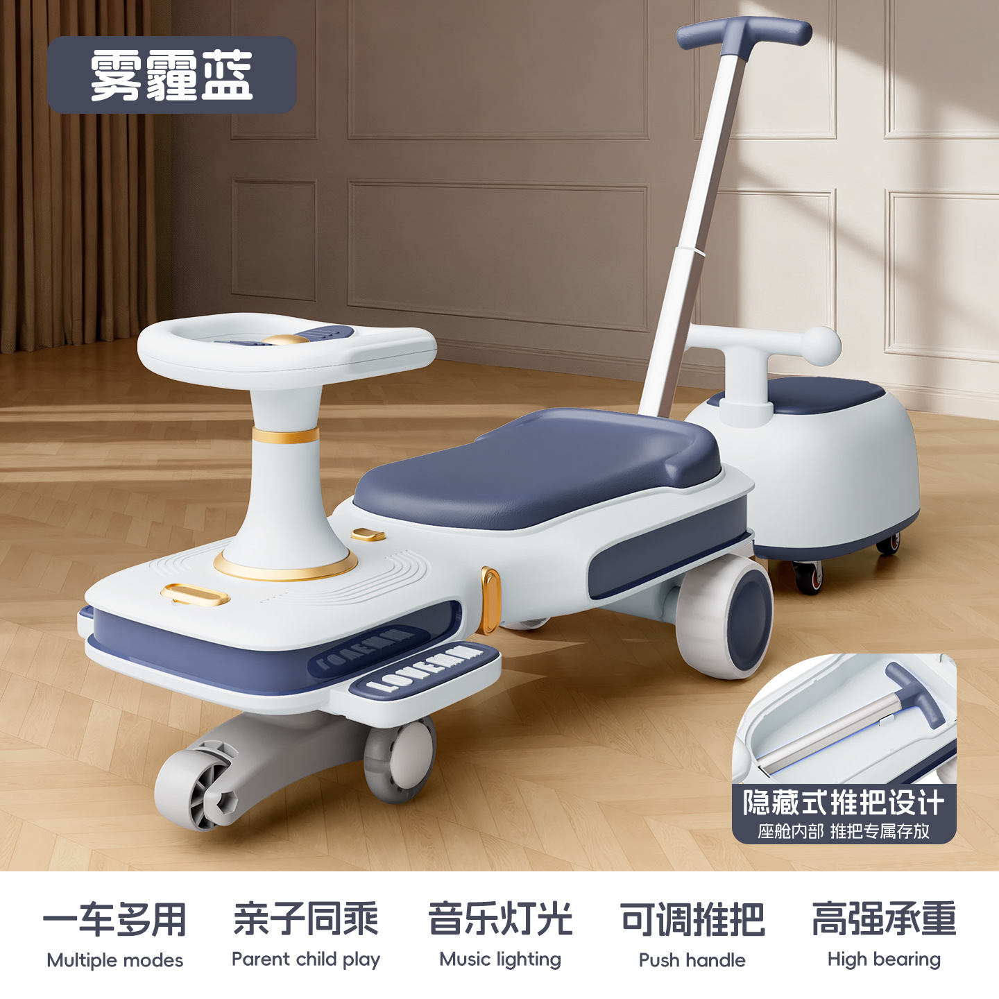 yq-haze blue lighting music mop scooter push handle adults can sit flagship