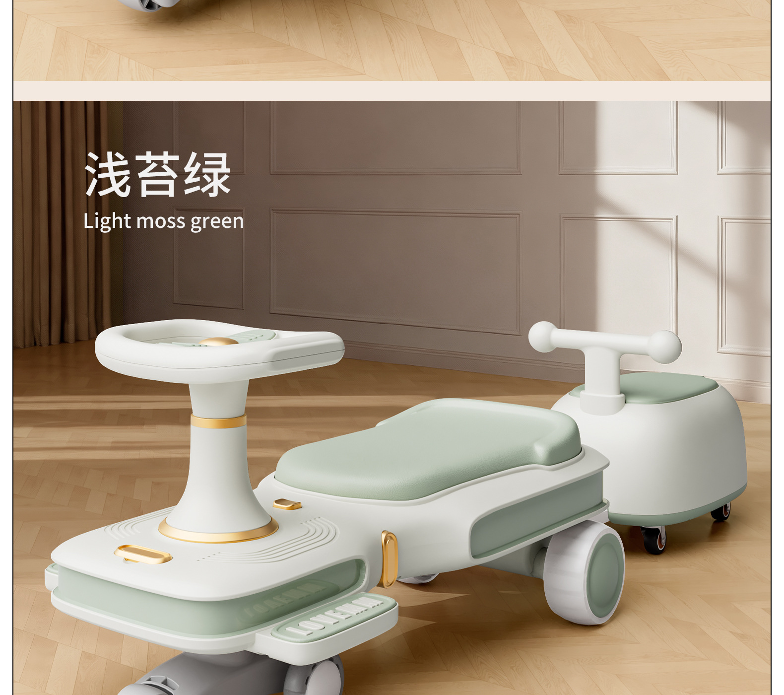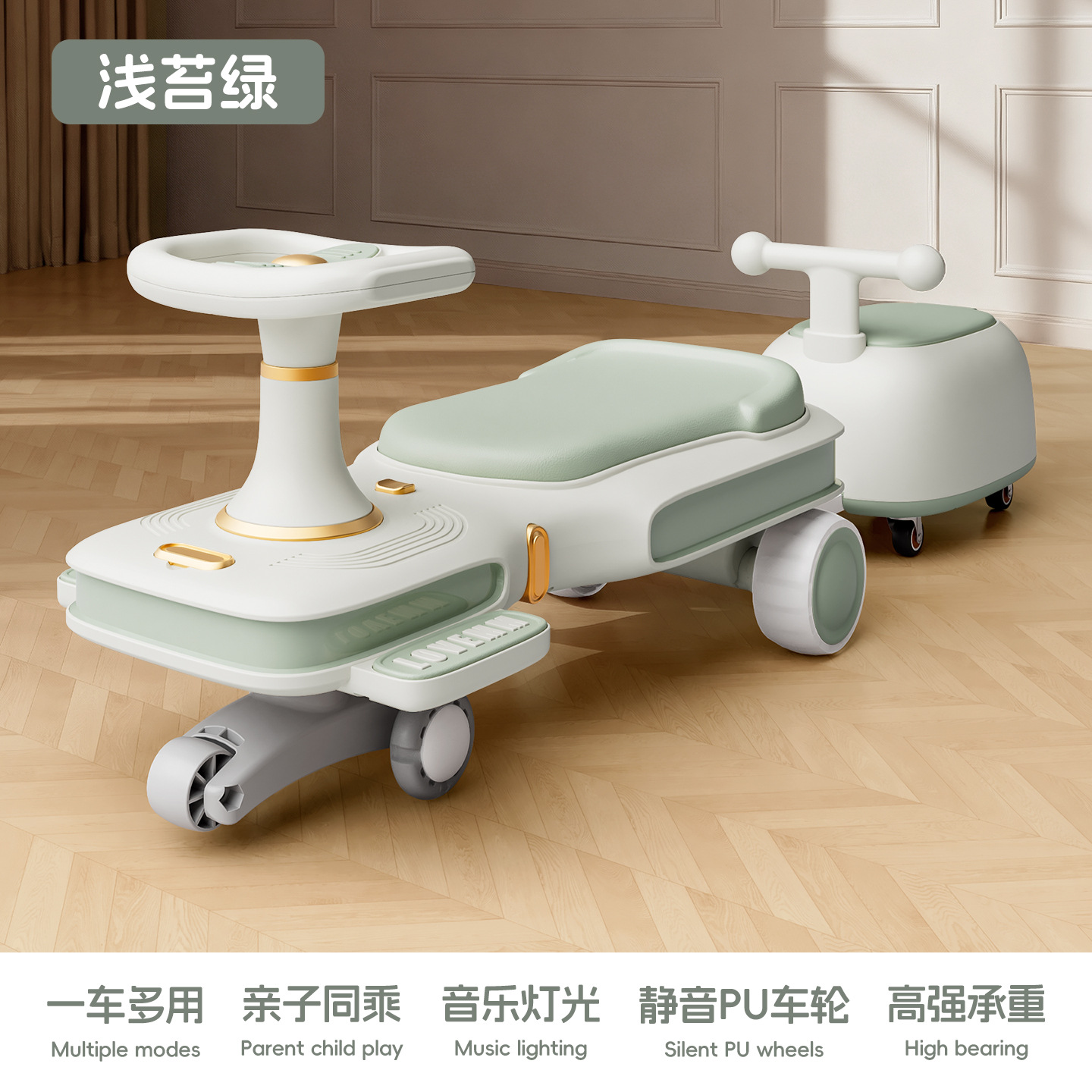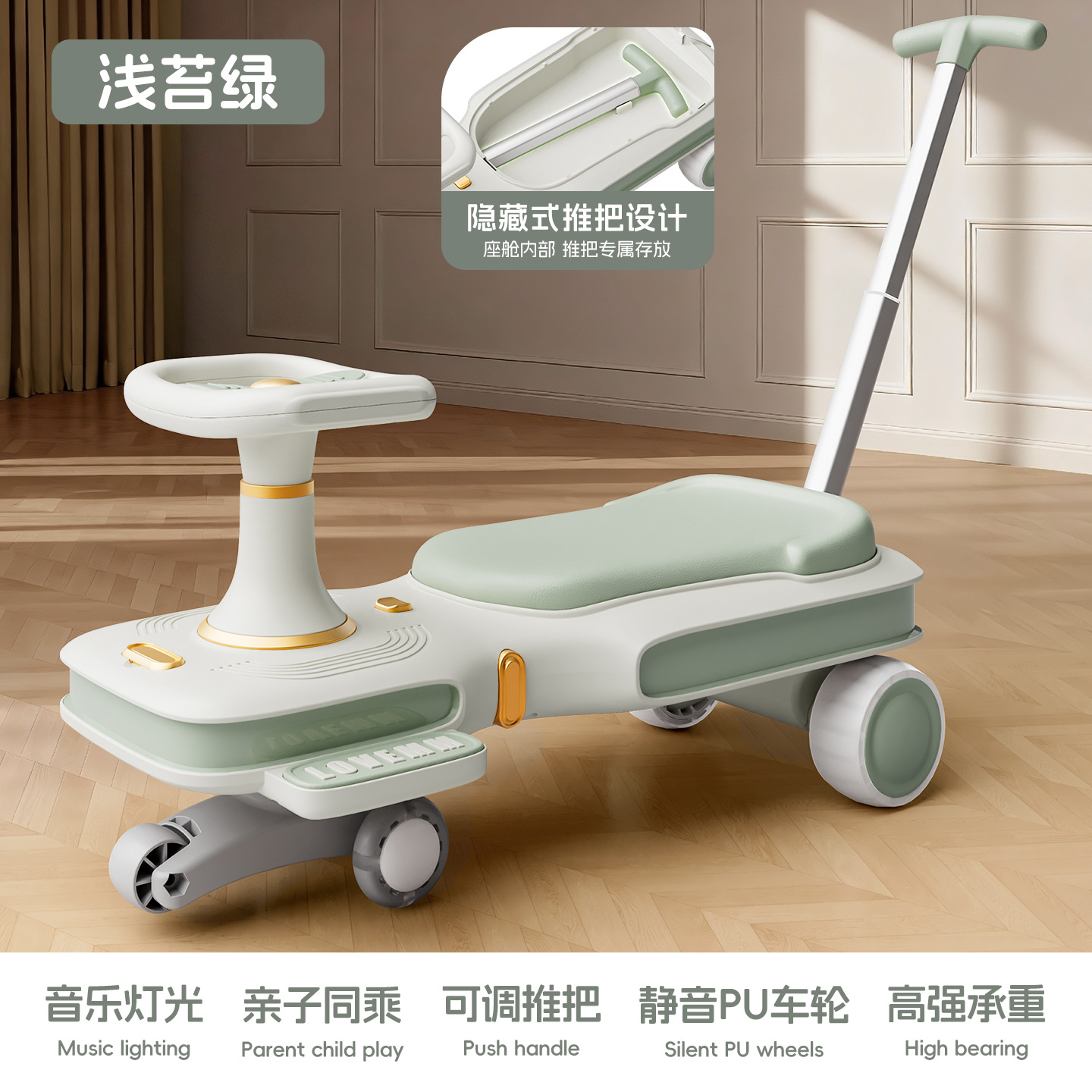 yq-light moss green light music mop scooter push for adults can sit flagship
