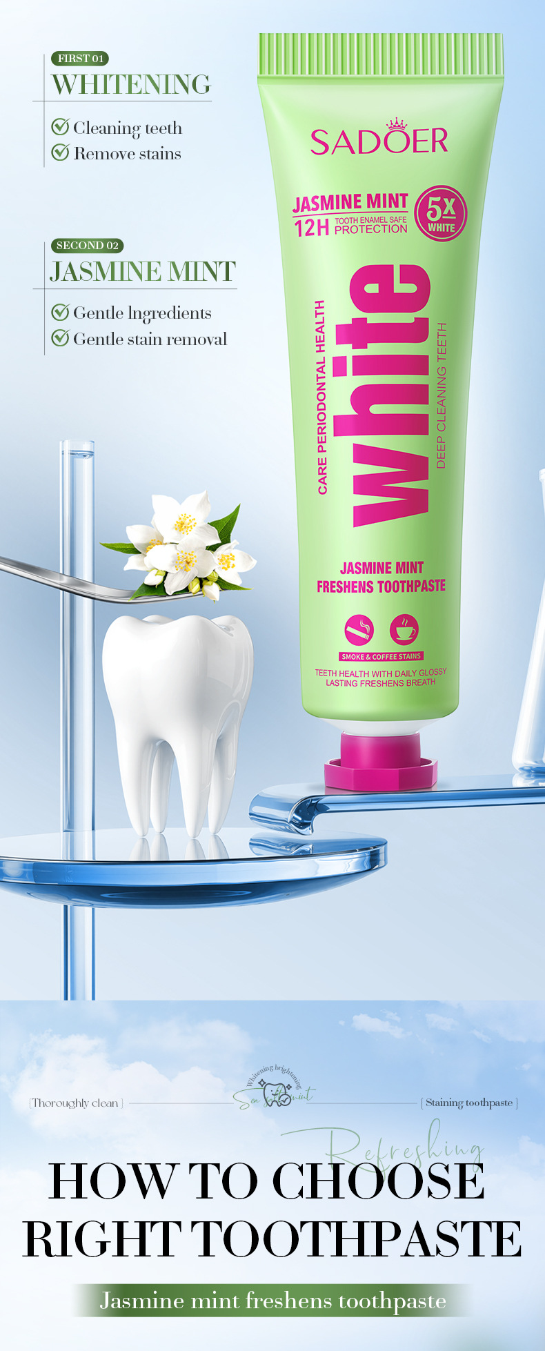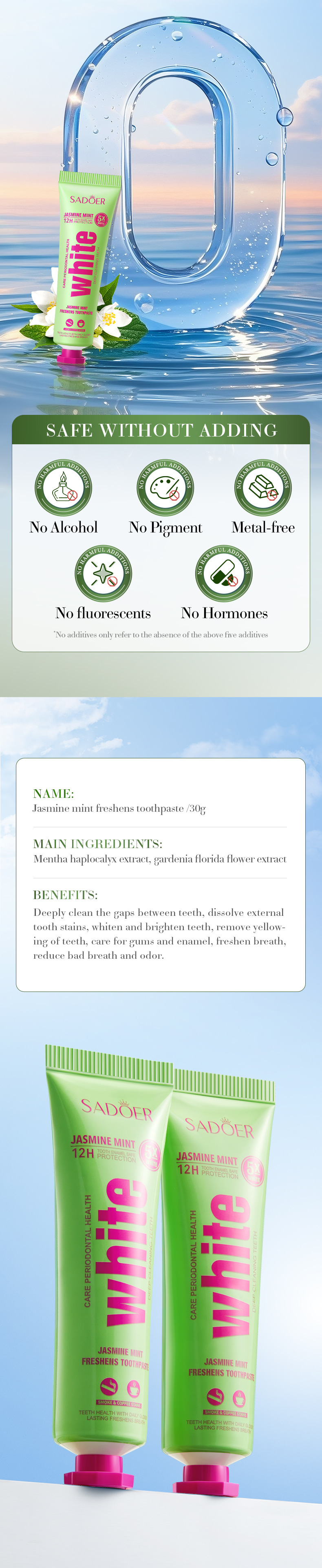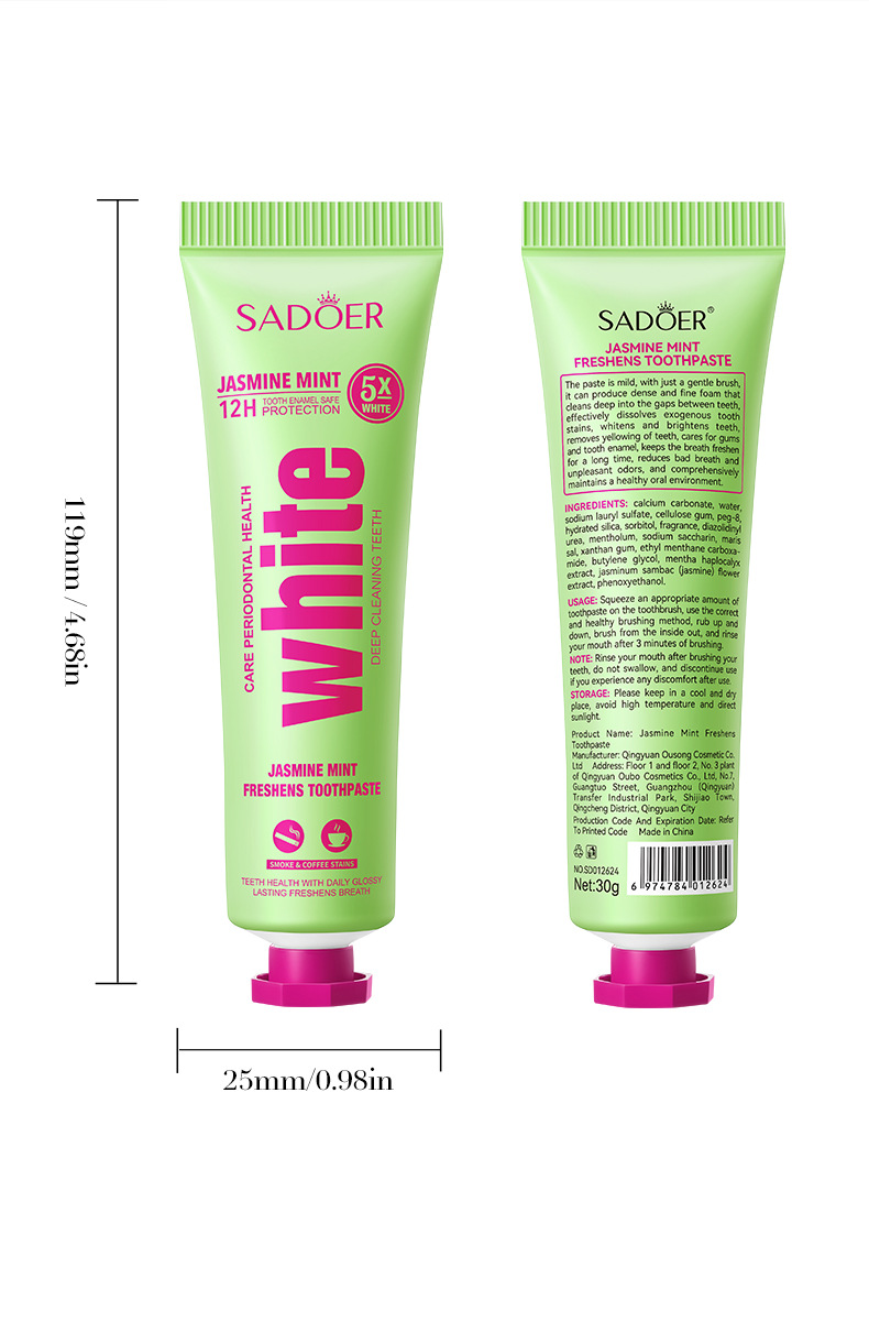 jasmine toothpaste 30g (for foreign trade only), sea salt toothpaste