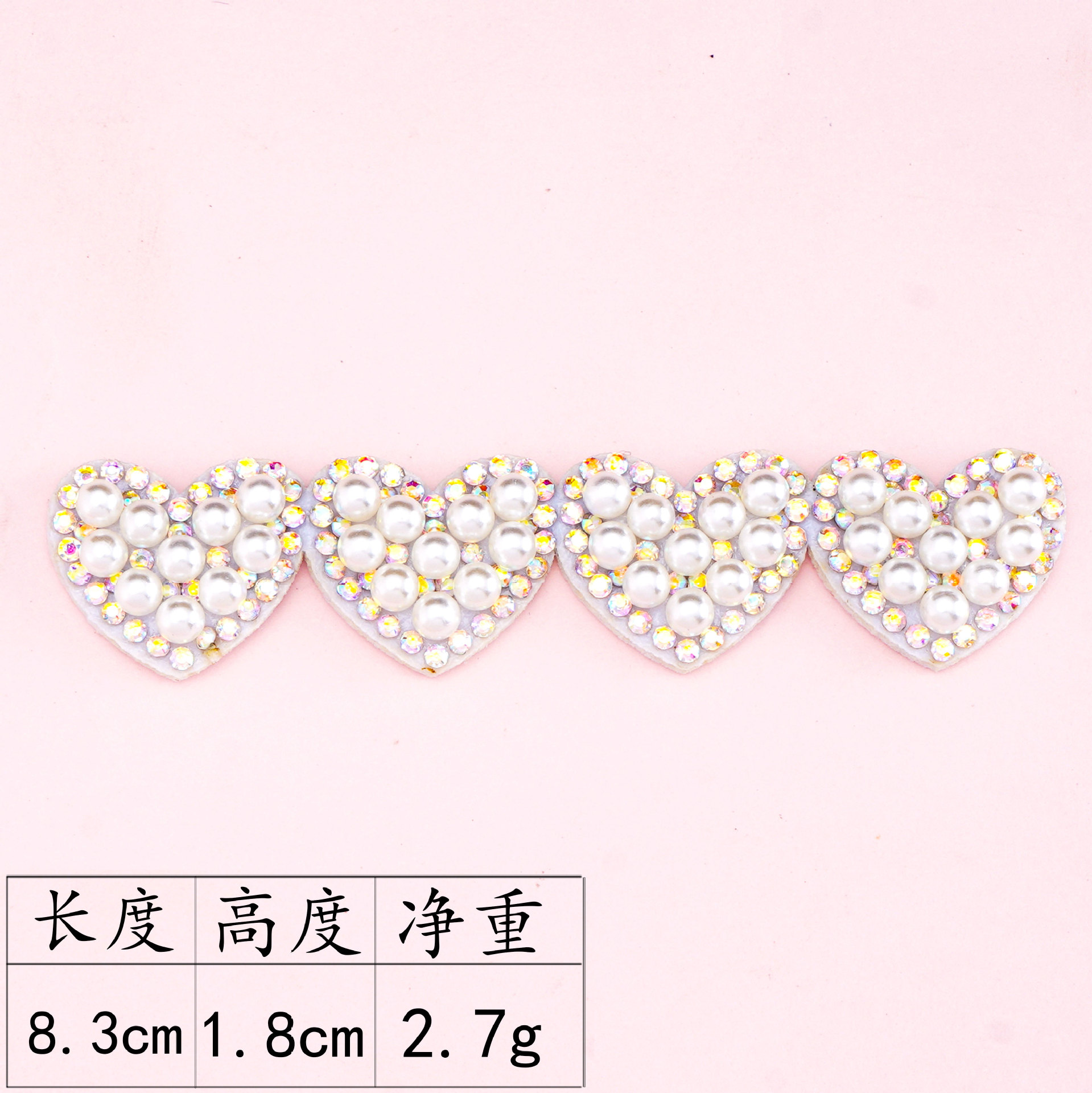 8.3 x 1.8cm row of hearts