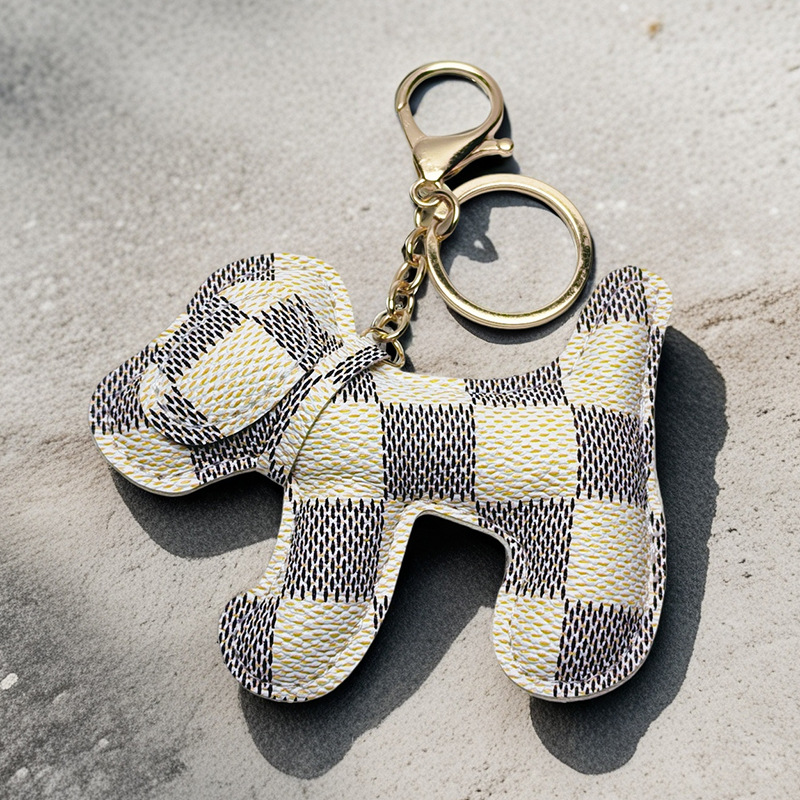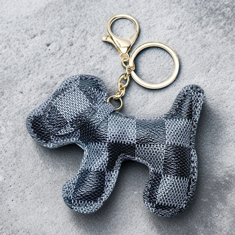 black and white plaid dog pu leather [gold keychain]]