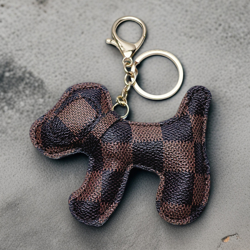 brown plaid dog pu leather [gold keychain]]