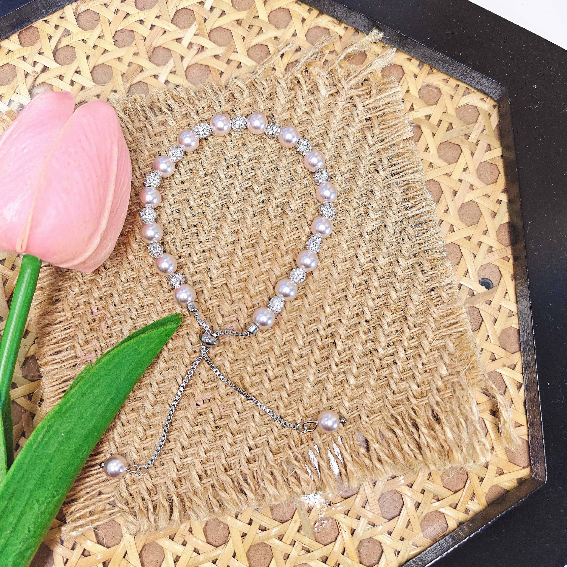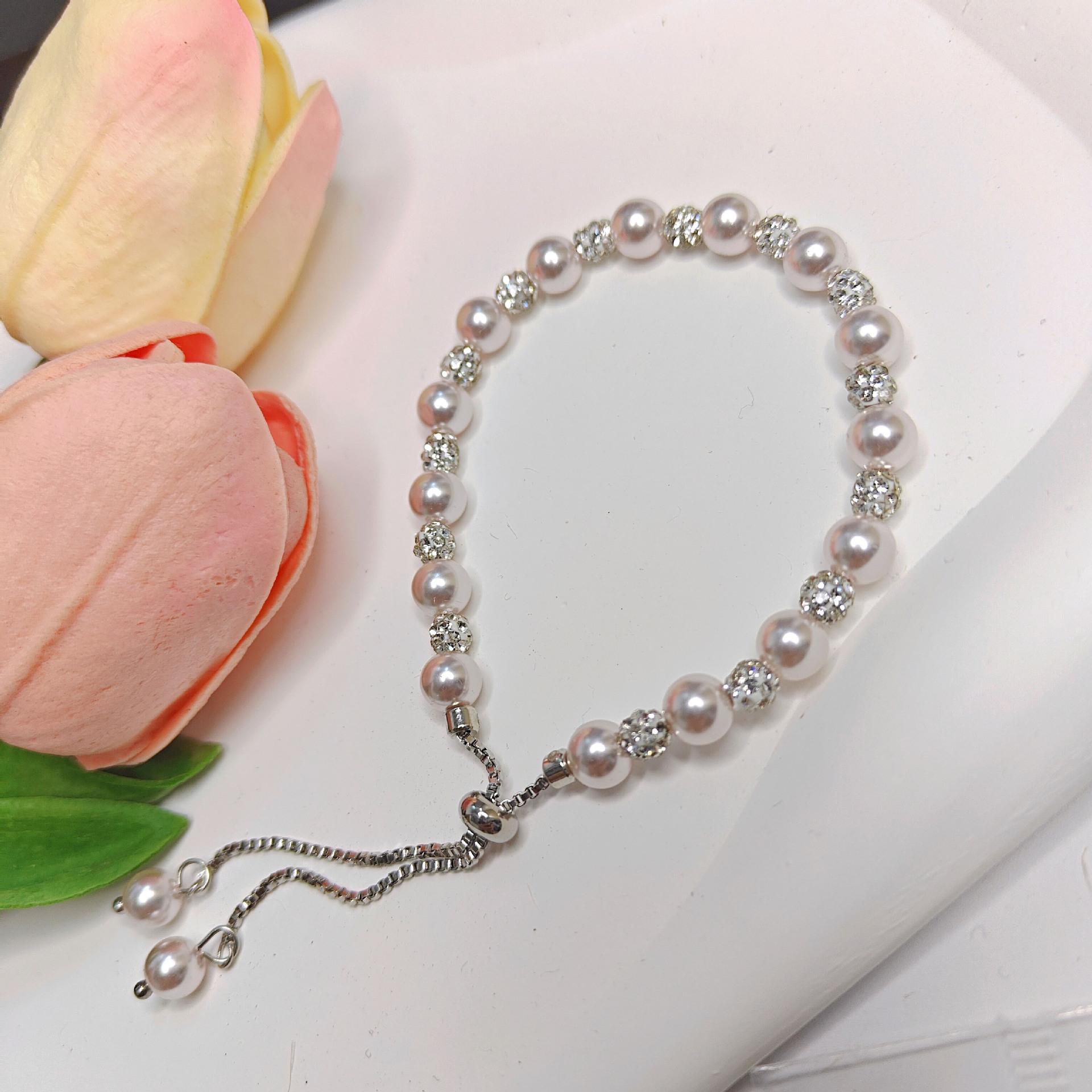 813 pull bracelet [5mm shijia beads + 4mm high quality clay rhinestone ball]]