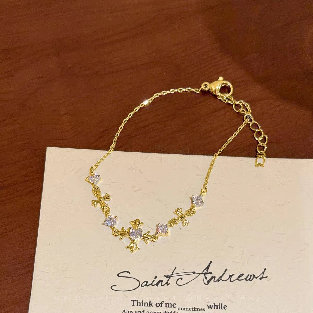 gold zircon cross bracelet