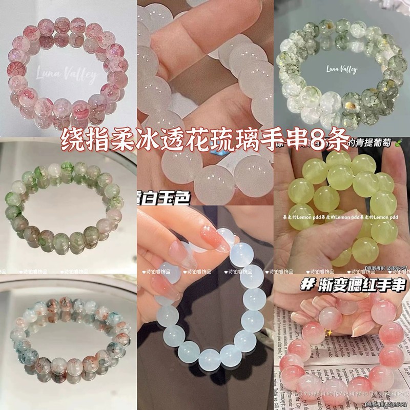#176 [8 pliable temperament ice-translucent flower-patterned glazed bracelet]