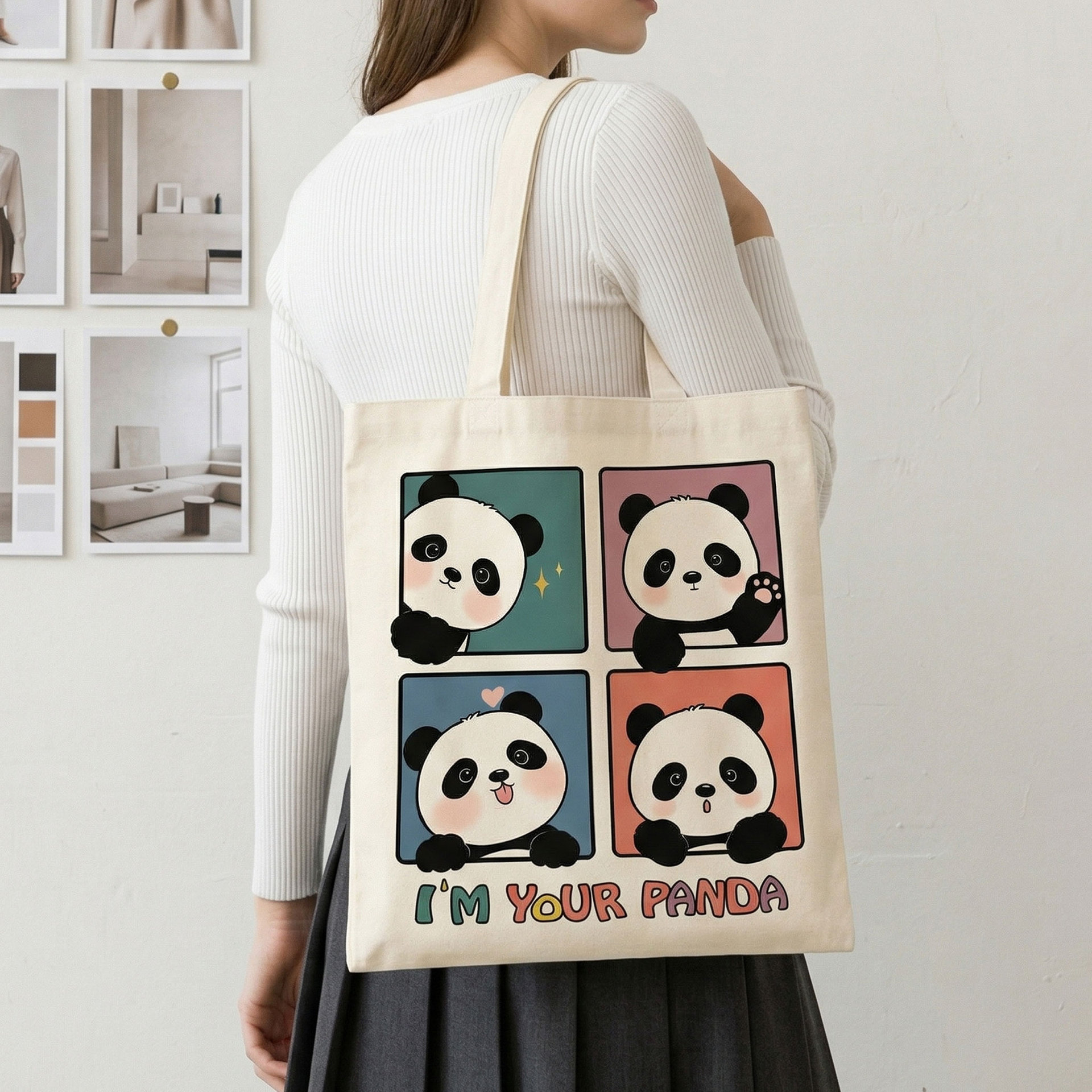 four panda design – size 34*height 38 – 10 oz polyester-cotton [pattern in stock]