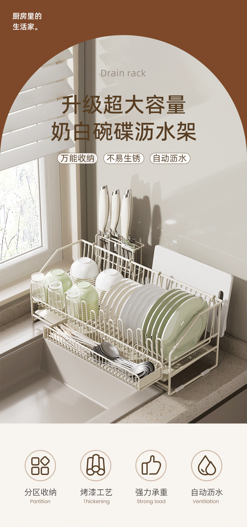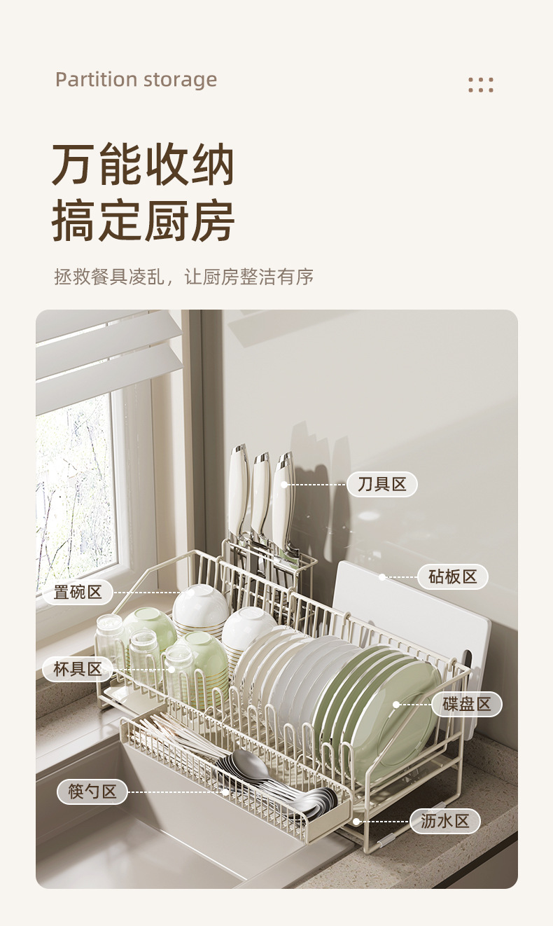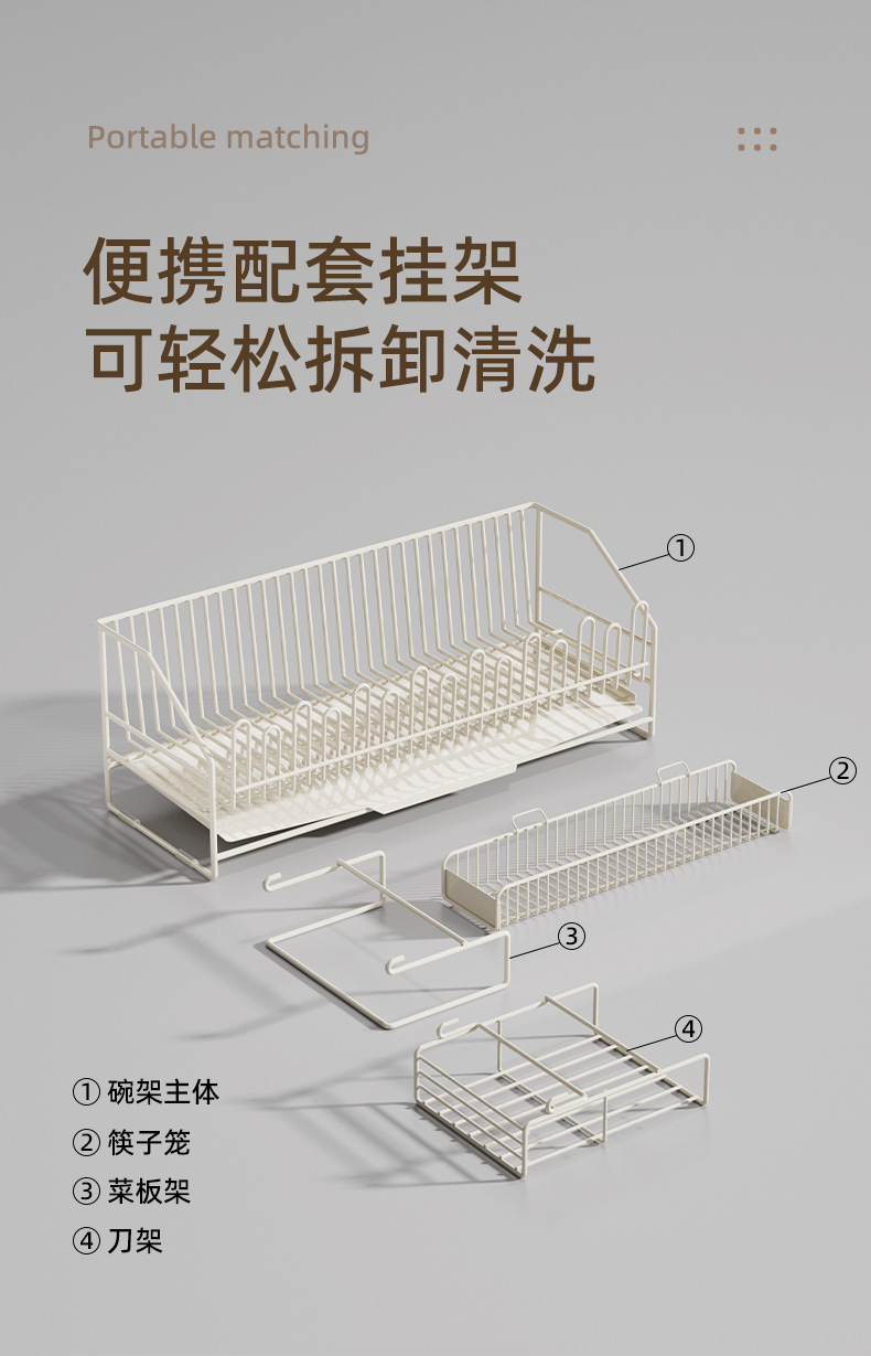 milky white yl-1011 carbon steel main frame + chopsticks basket + knife holder + chopping board rack