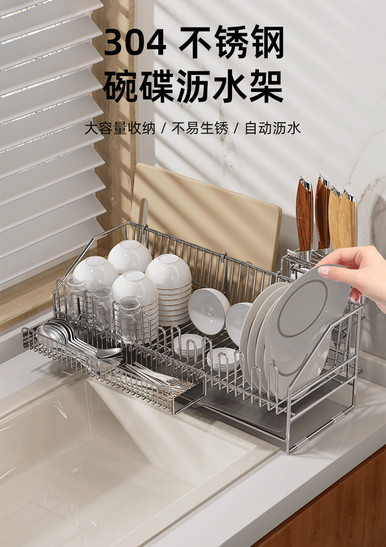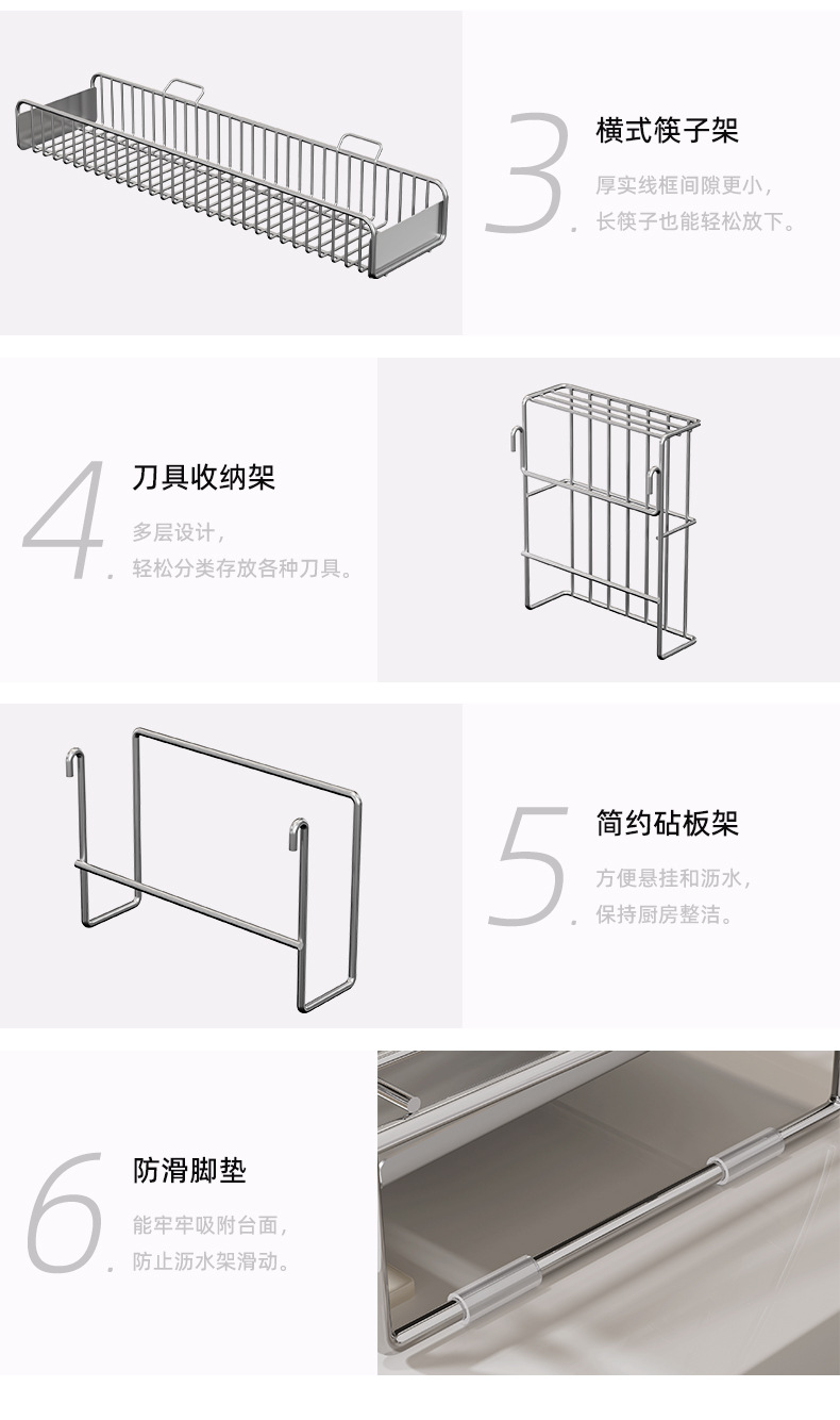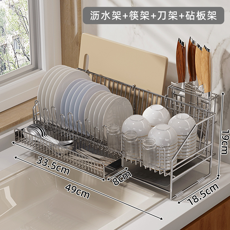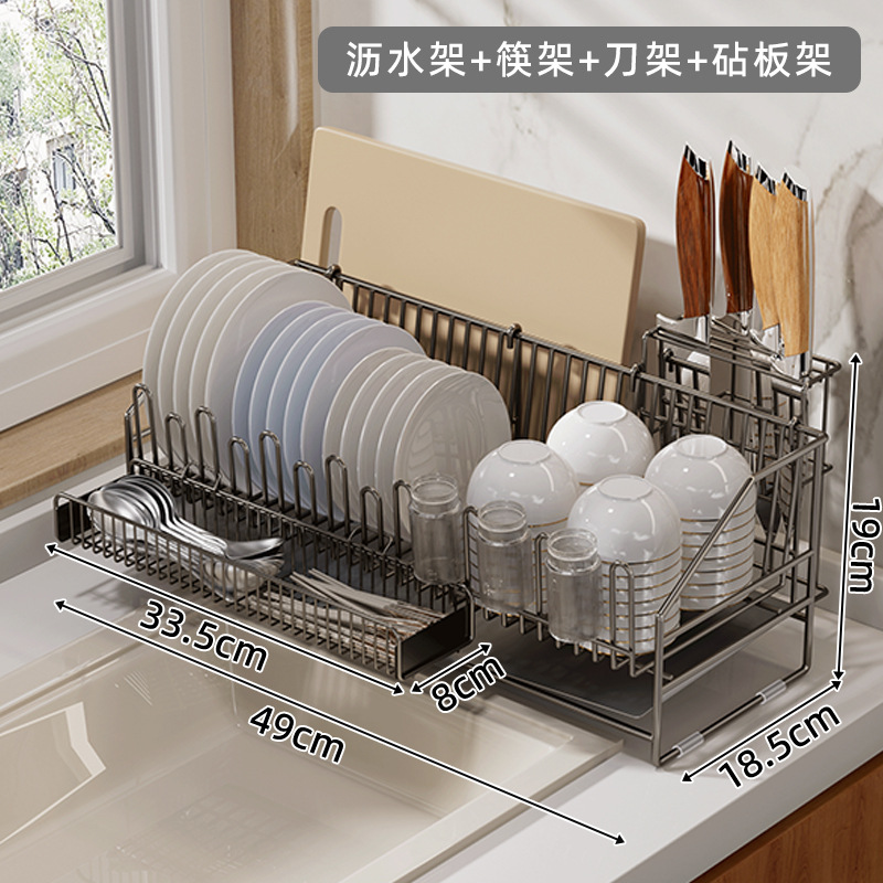 sus304 gun-gray draining rack + chopstick holder + knife holder + chopping board rack