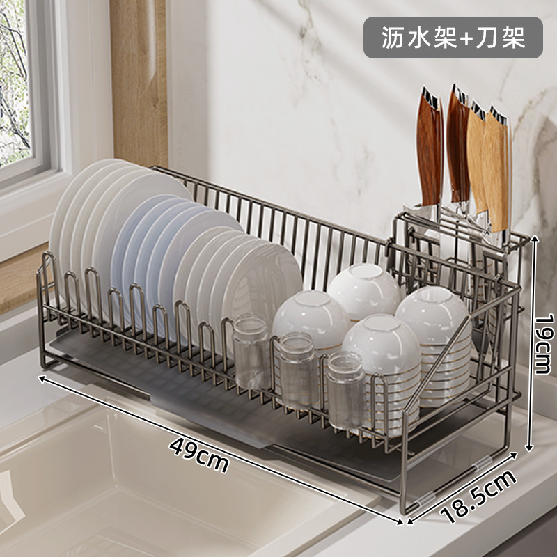 sus304 gun-gray draining rack + chopstick holder + knife holder