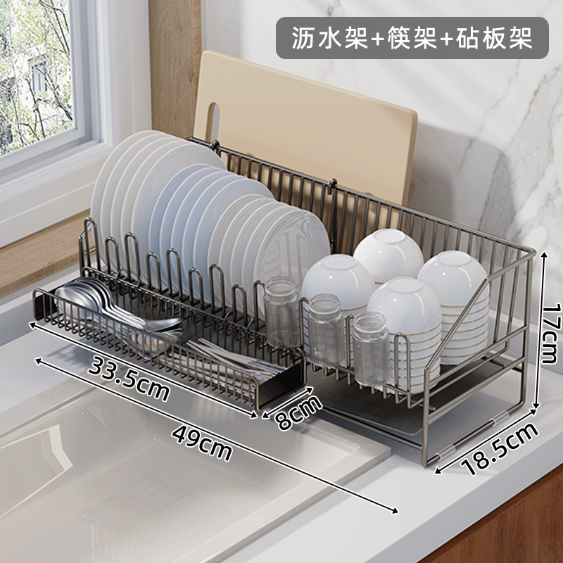 sus304 gun gray draining rack + chopstick holder + chopping board rack