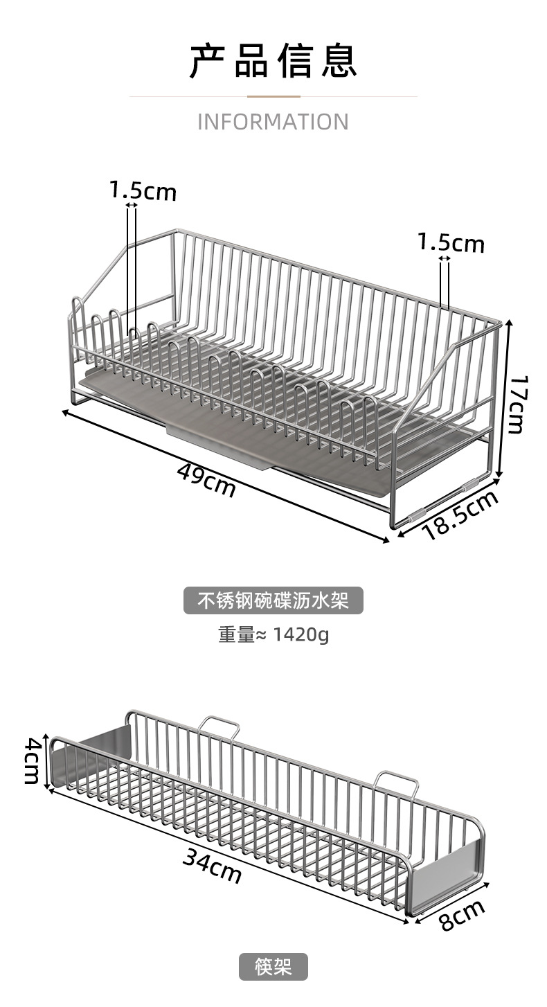 sus304 gun-gray draining rack + chopstick canister rack