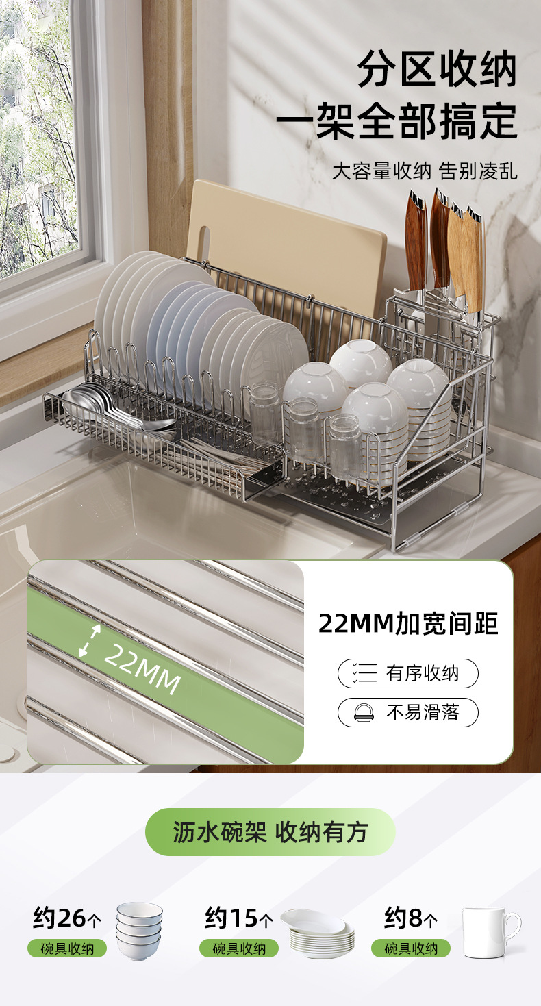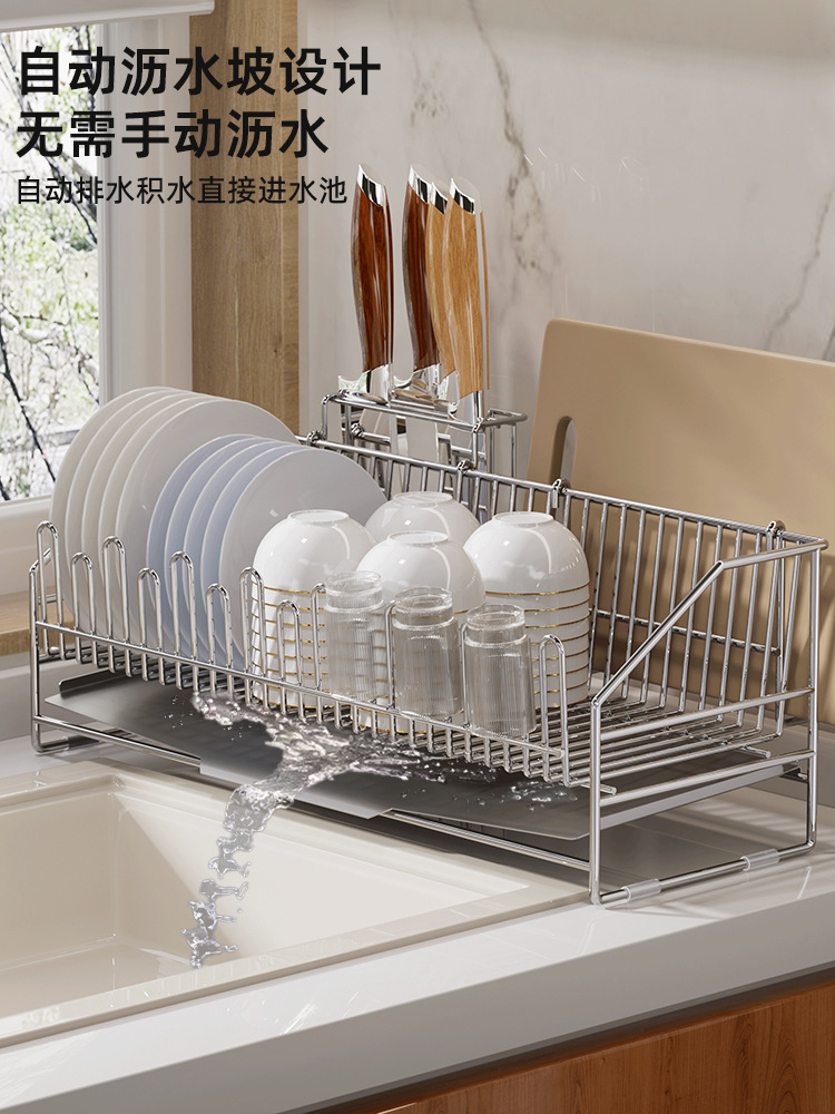 yl-1011 stainless steel 304 draining rack + chopstick holder + knife holder + chopping board rack (with cup holder function)