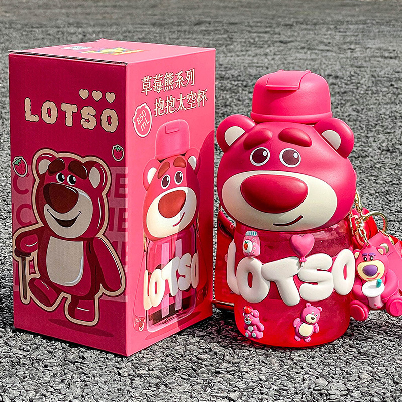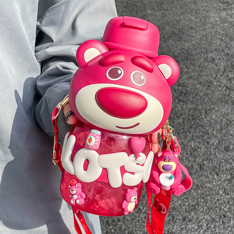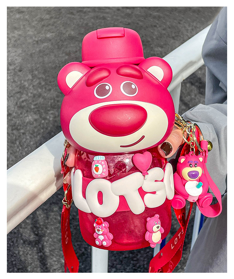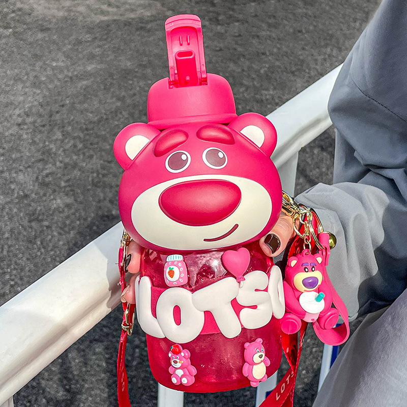 strawberry bear hug sports bottle good-looking children's cups female sanrio boys straw large capacity kettle drop-resistant