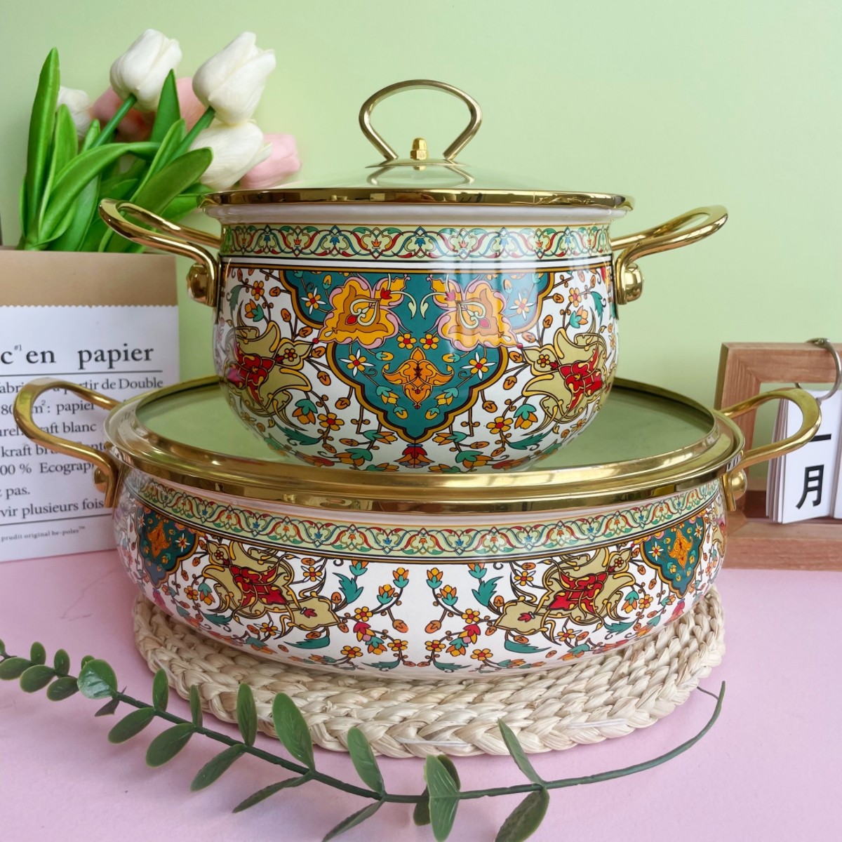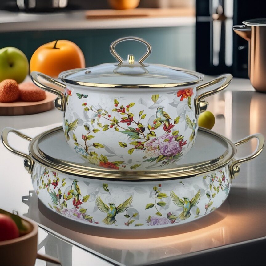 20cm soup pot + 30cm seafood pot (floral and bird set)