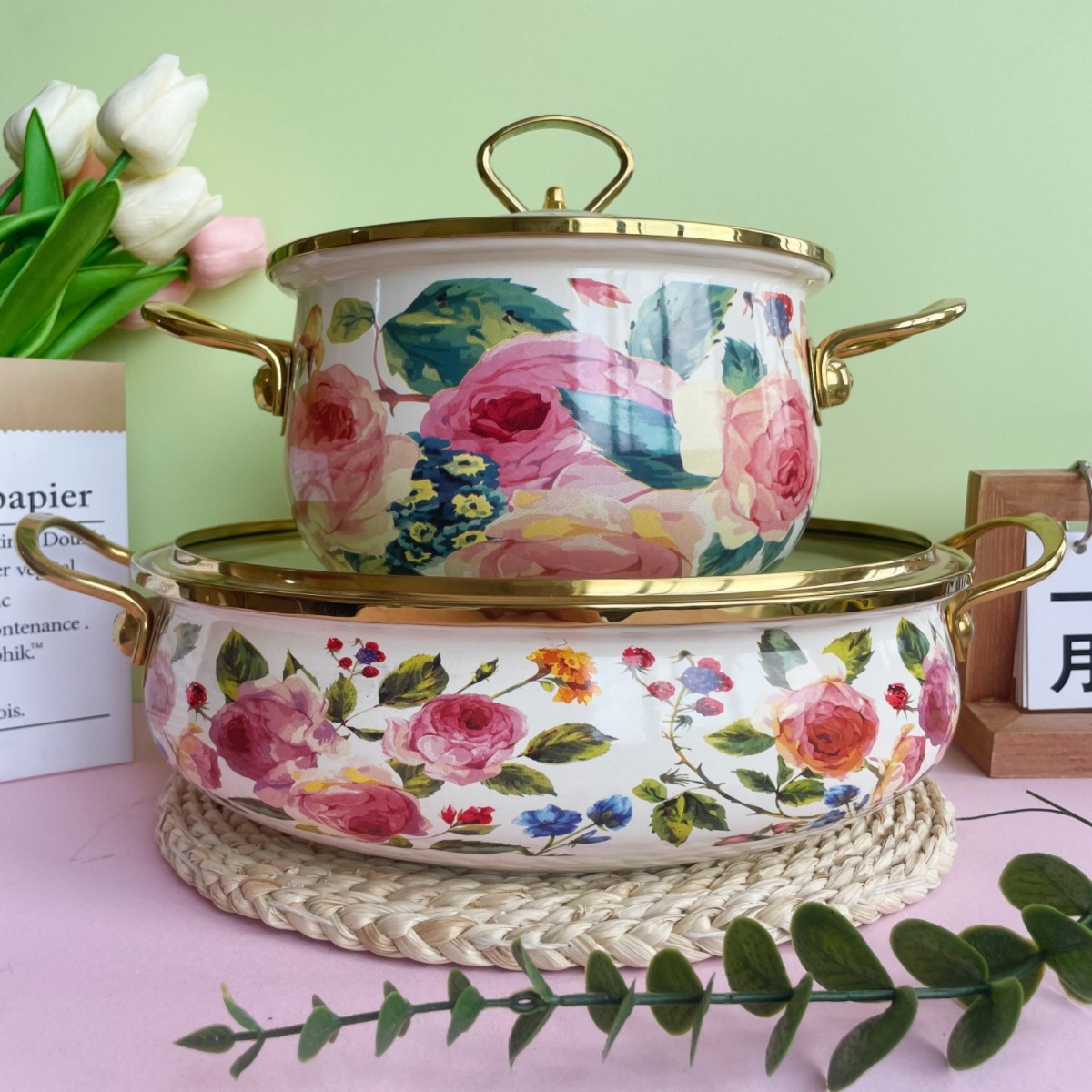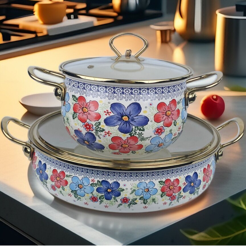 20cm soup pot + 30cm seafood pot (russian flower set)