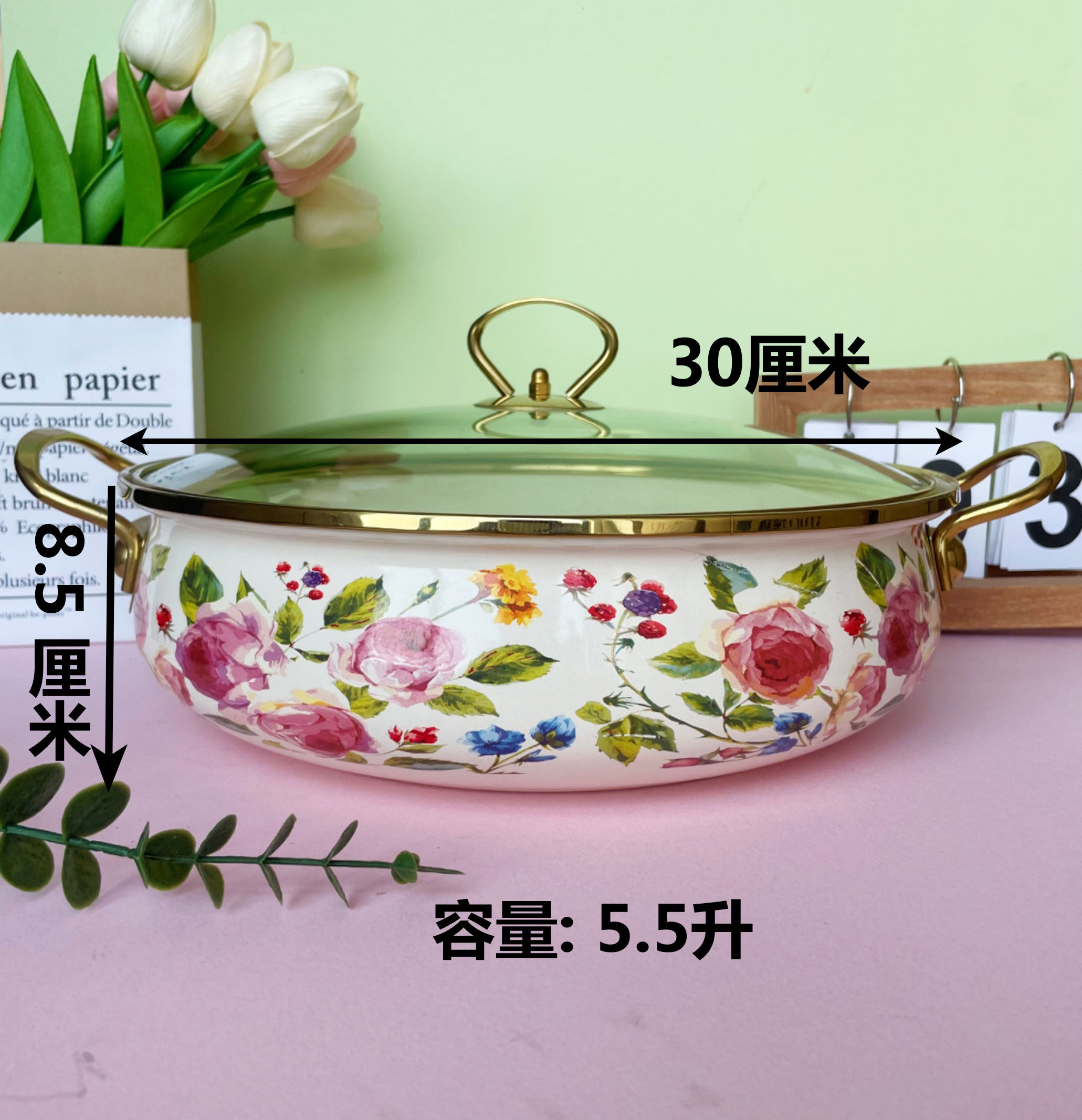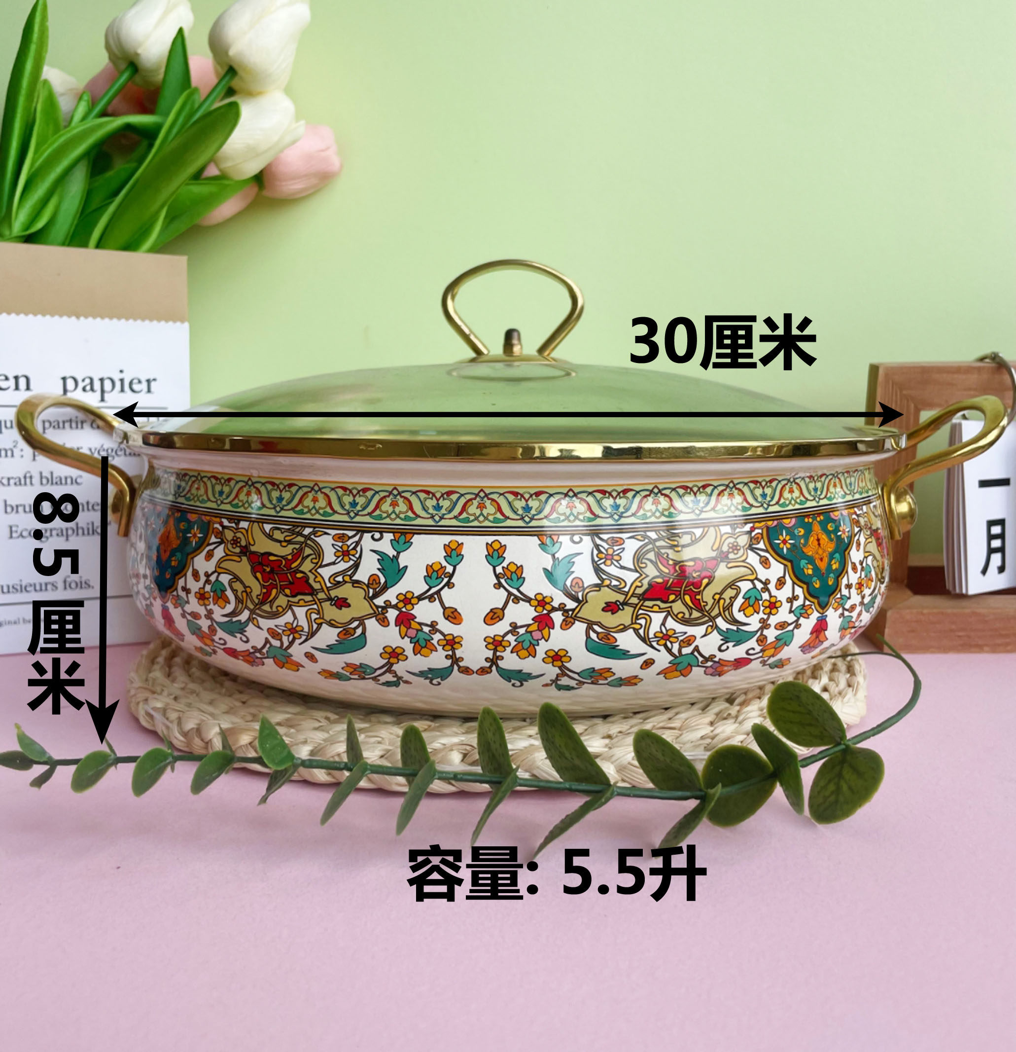 30cm flower-and-bird-themed seafood pot (5.5l capacity)