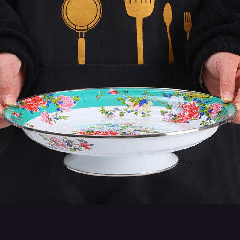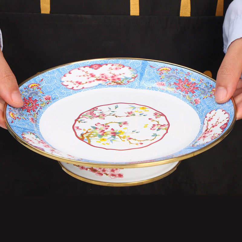 18cm high-foot tea tray [gold trim-blue]