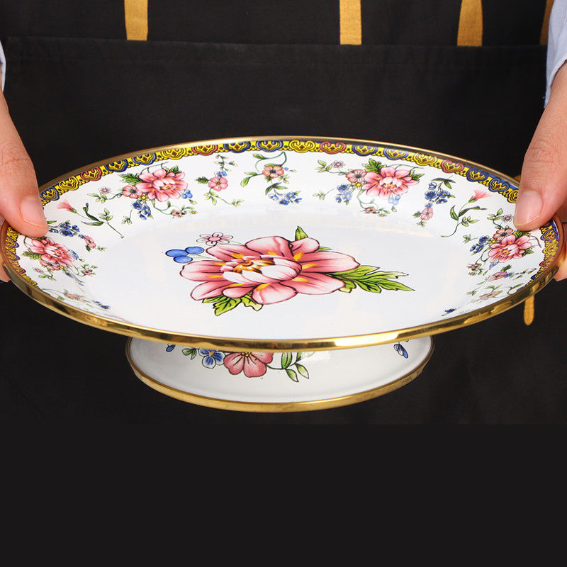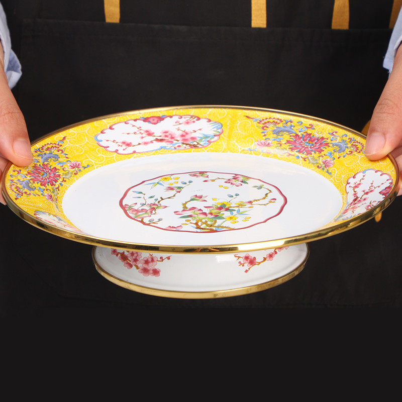 18cm high-footed tea tray [gold trim-yellow]