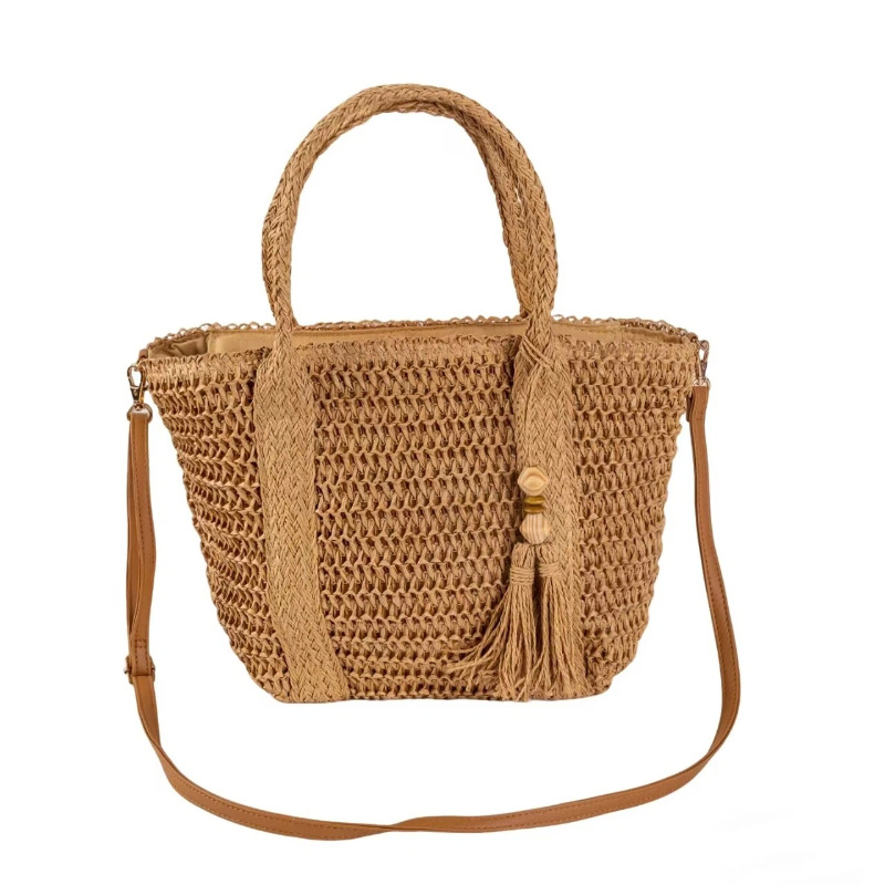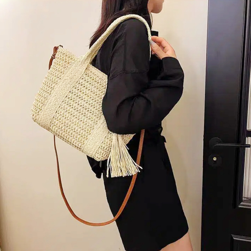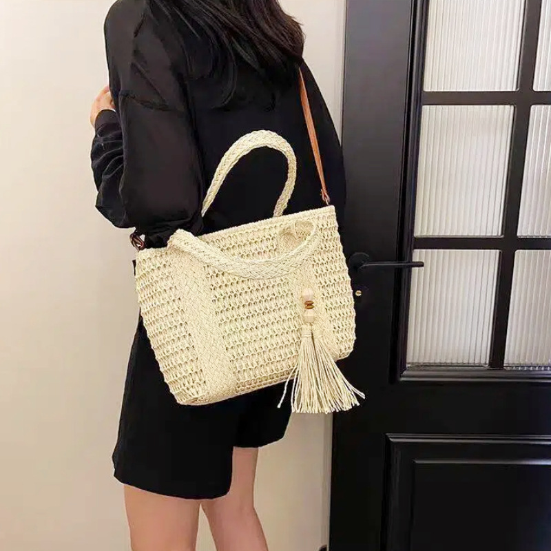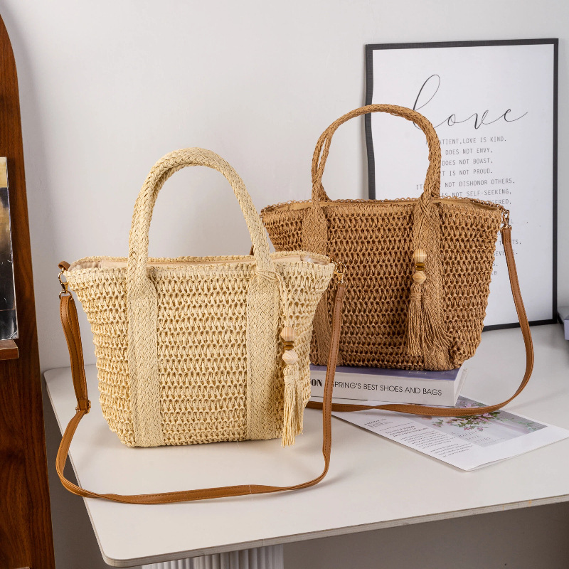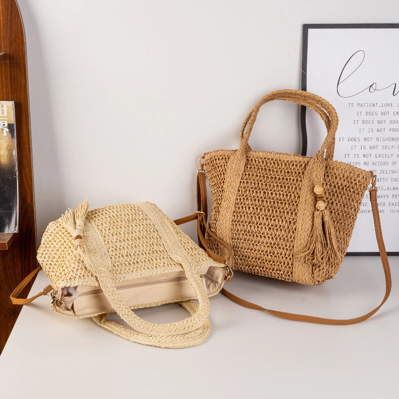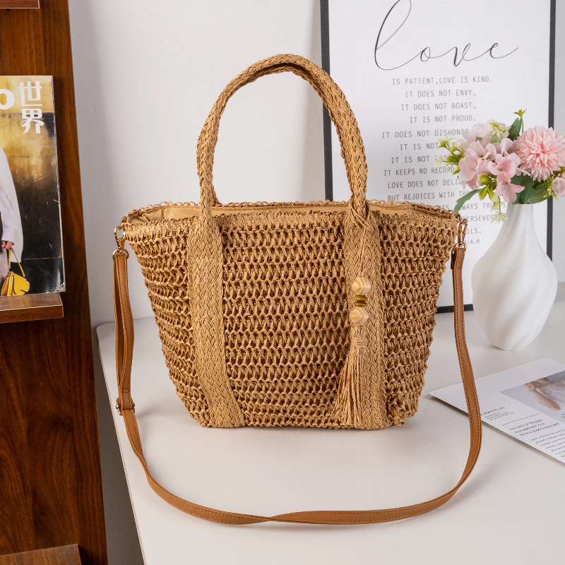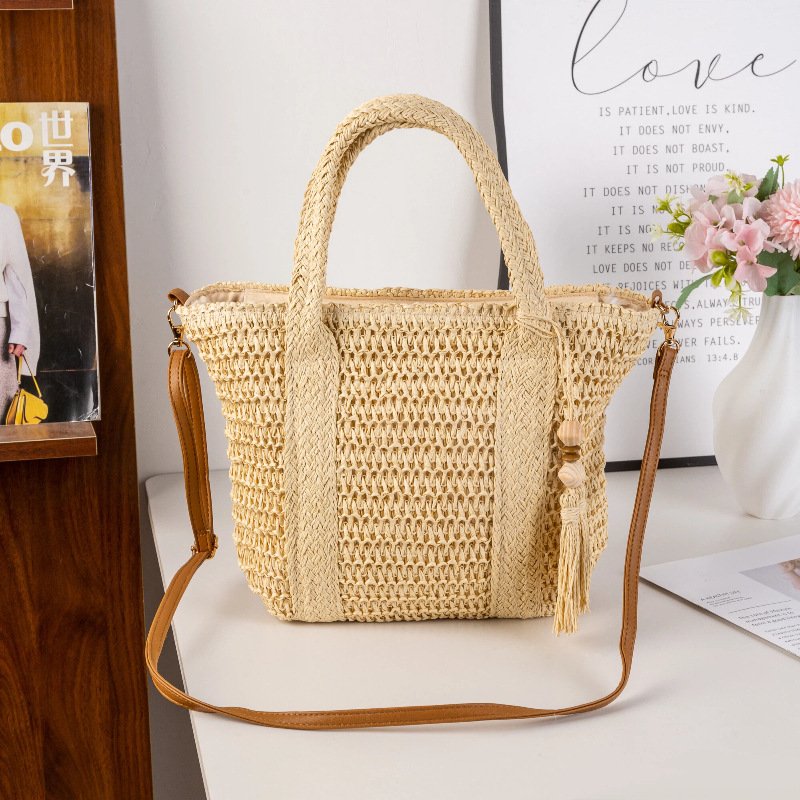 hot-selling simple moro style straw bag woven hollowed women's handheld tote bag mori style seaside vacation crossbody bag
